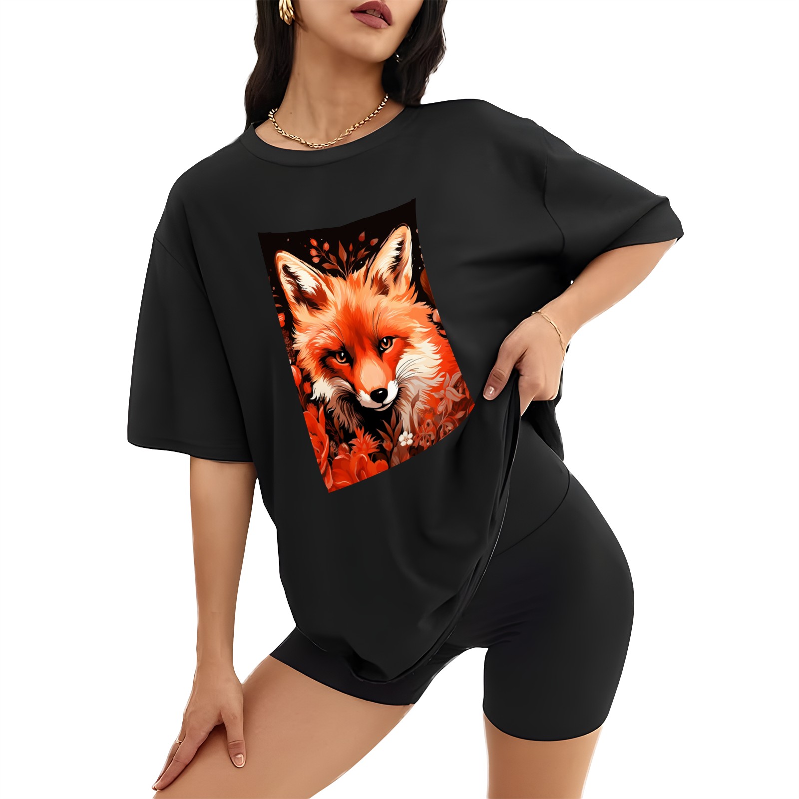 Plus Size Shirt for Women Black Tops for Women Short Sleeves Shirt for Women Fox 26 T Shirt Crewneck Shirt for Women XS