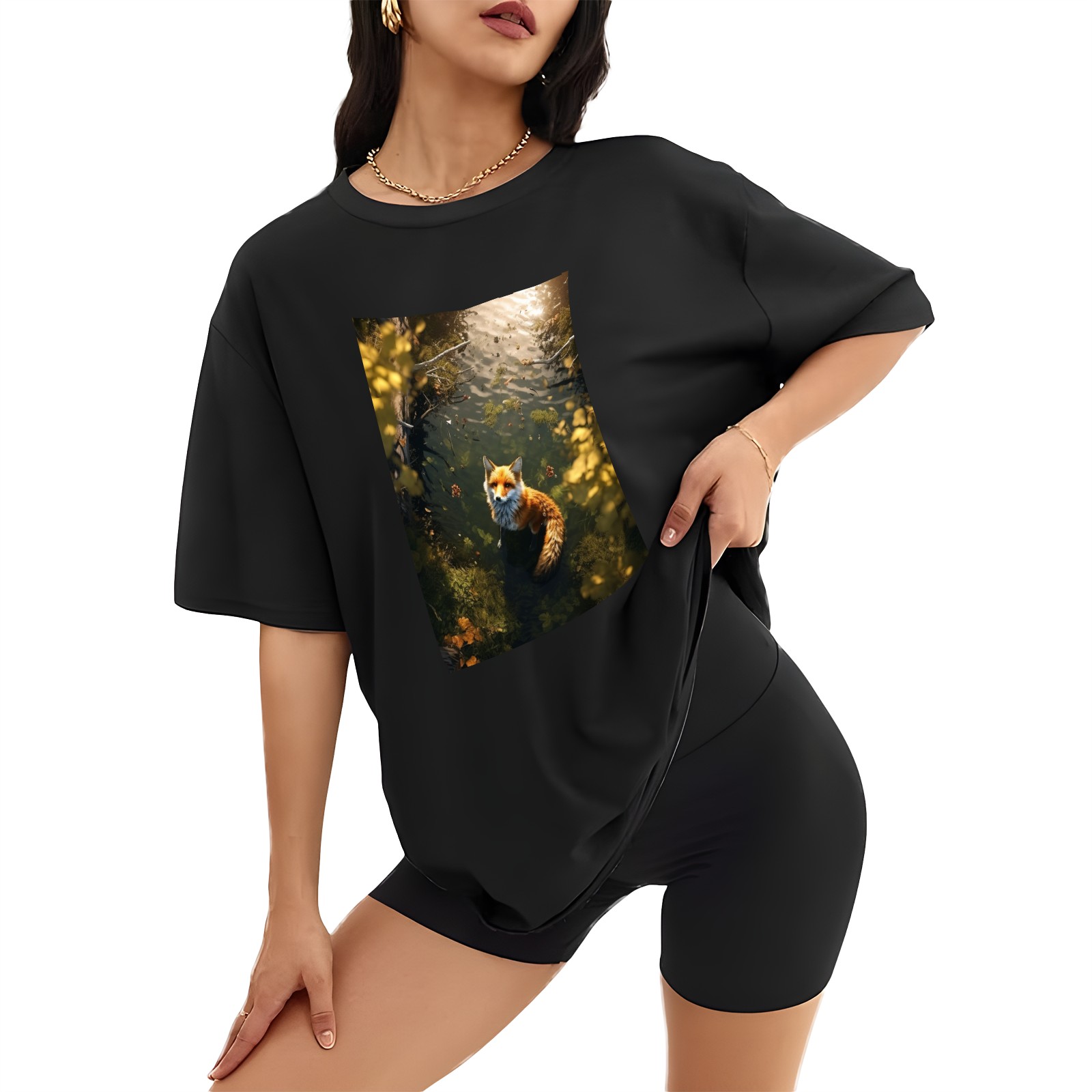 Plus Size Shirt for Women Black Tops for Women Short Sleeves Shirt for Women Fox 16 T Shirt Crewneck Shirt for Women XS
