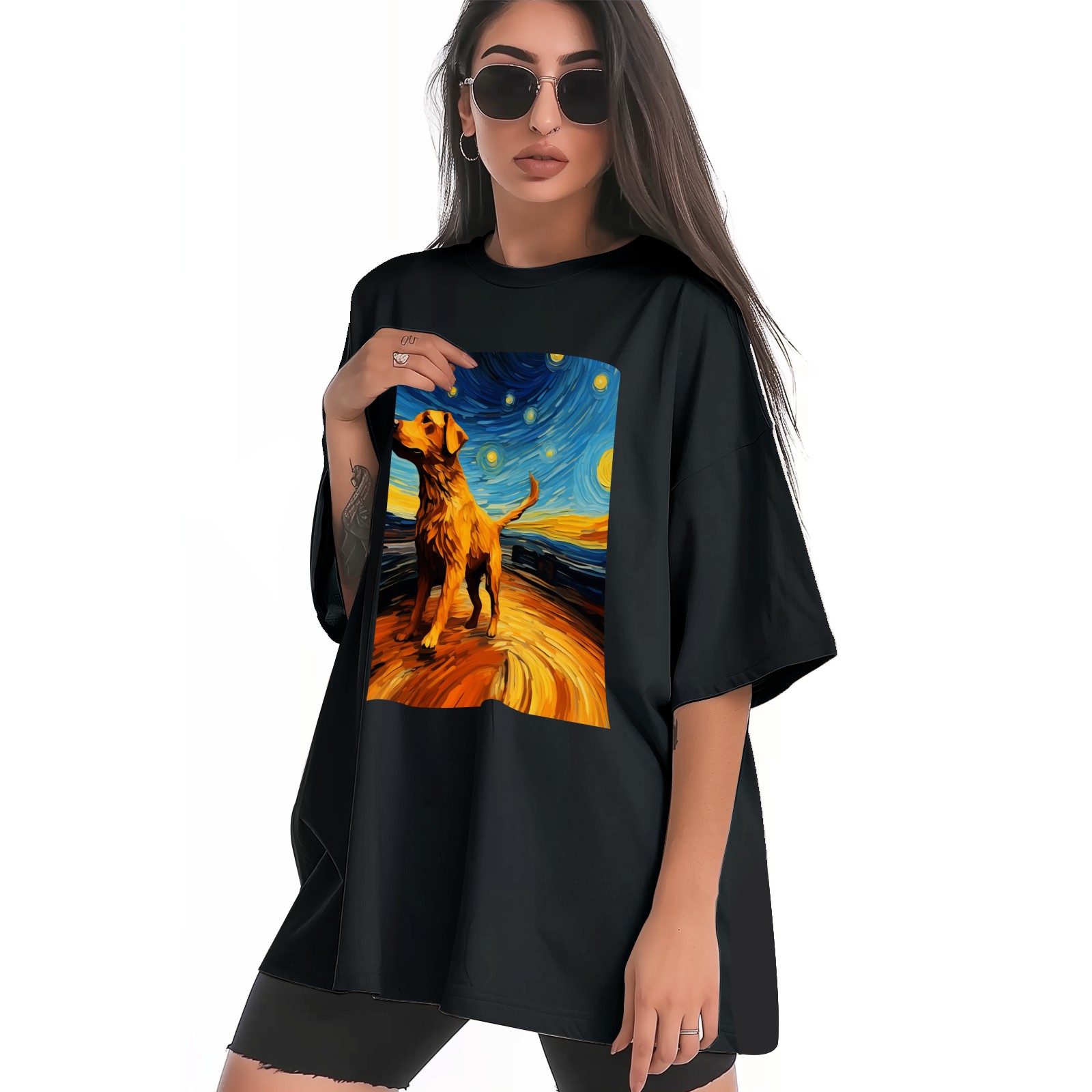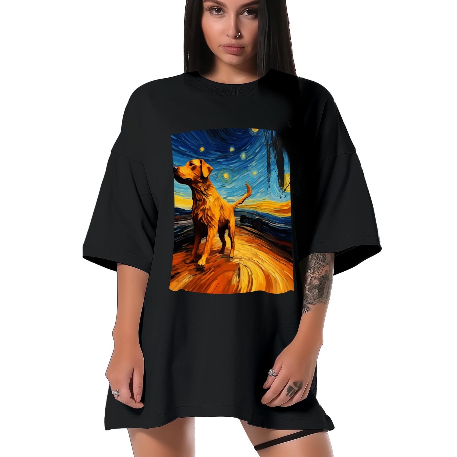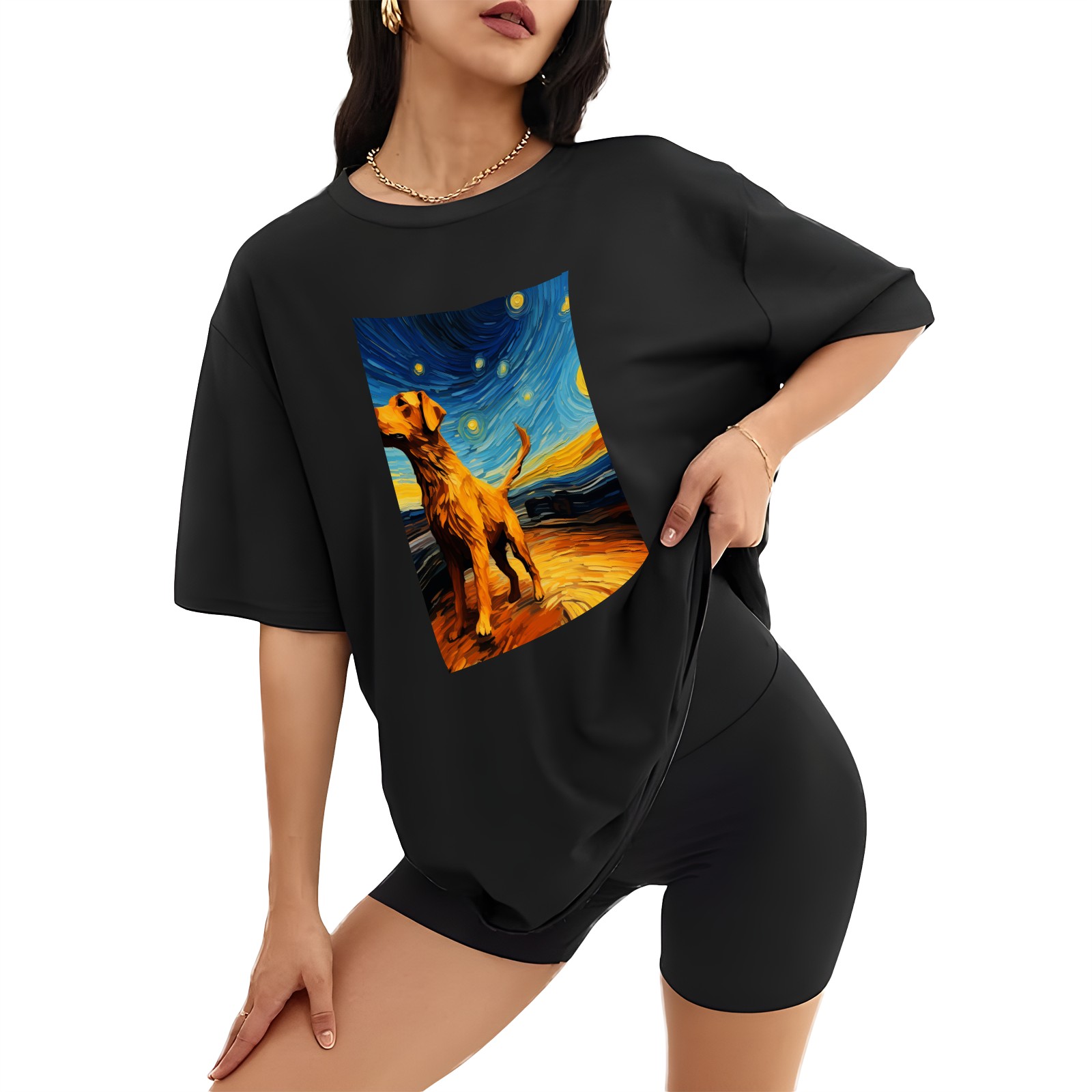 Plus Size Shirt for Women Black Tops for Women Short Sleeves Shirt for Women Dogs In The Night (13) T Shirt Crewneck Shirt for Women XS