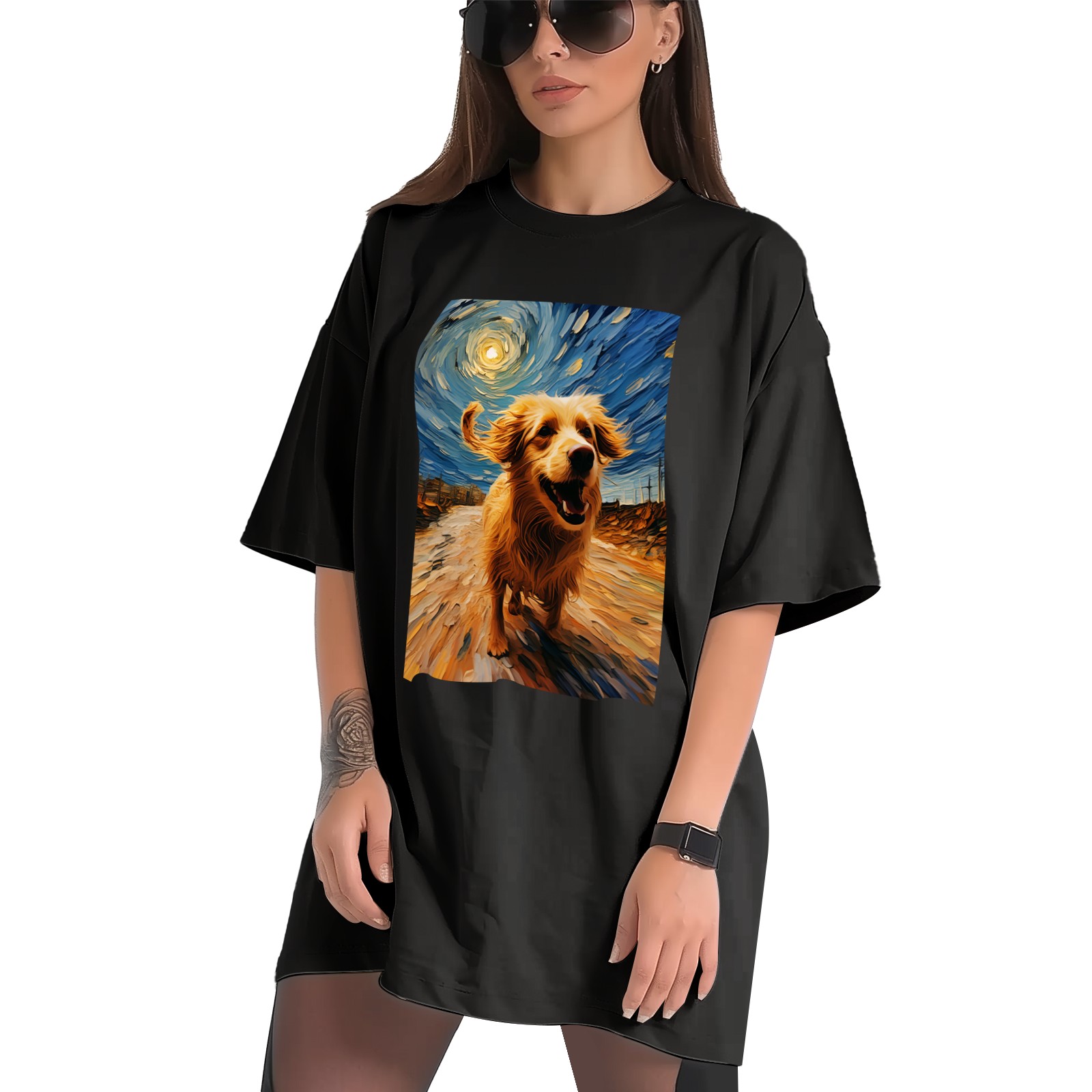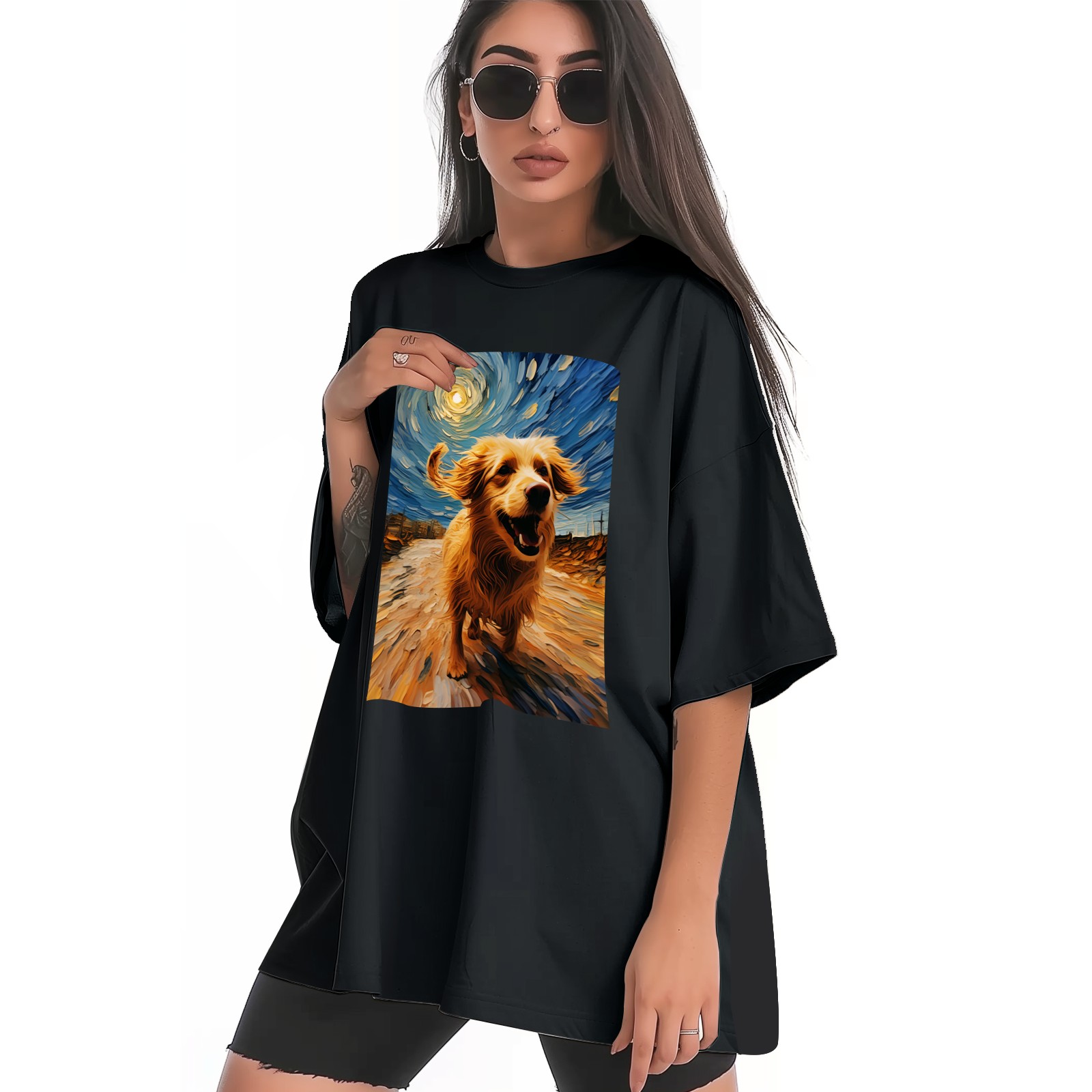 Plus Size Shirt for Women Black Tops for Women Short Sleeves Shirt for Women Dogs In The Night (9) T Shirt Crewneck Shirt for Women XS