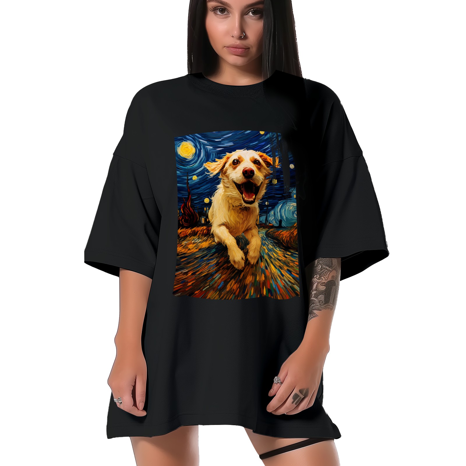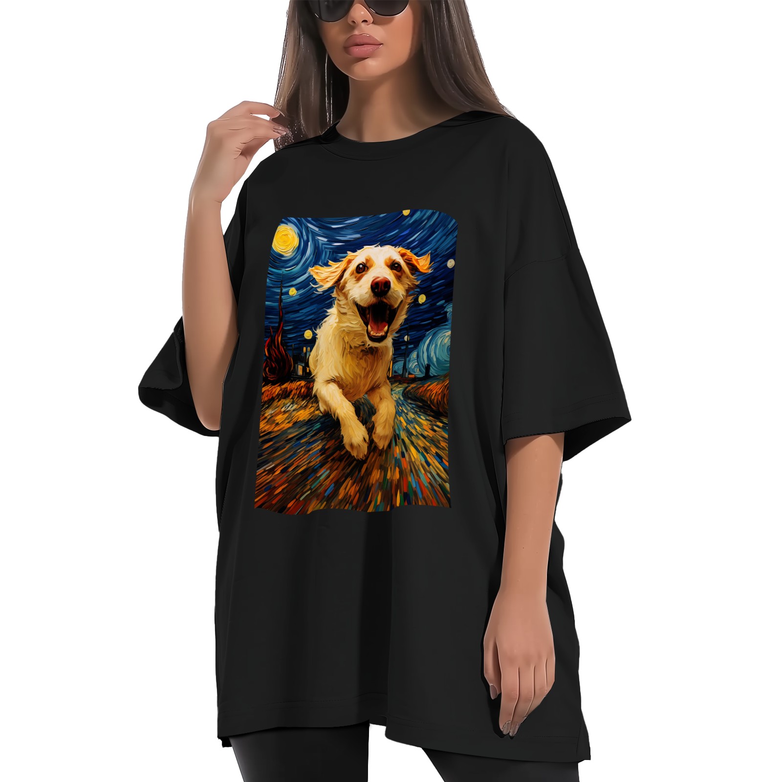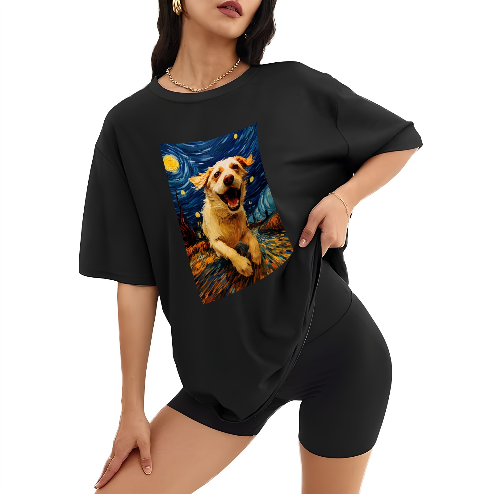 Plus Size Shirt for Women Black Tops for Women Short Sleeves Shirt for Women Dogs In The Night (8) T Shirt Crewneck Shirt for Women XS