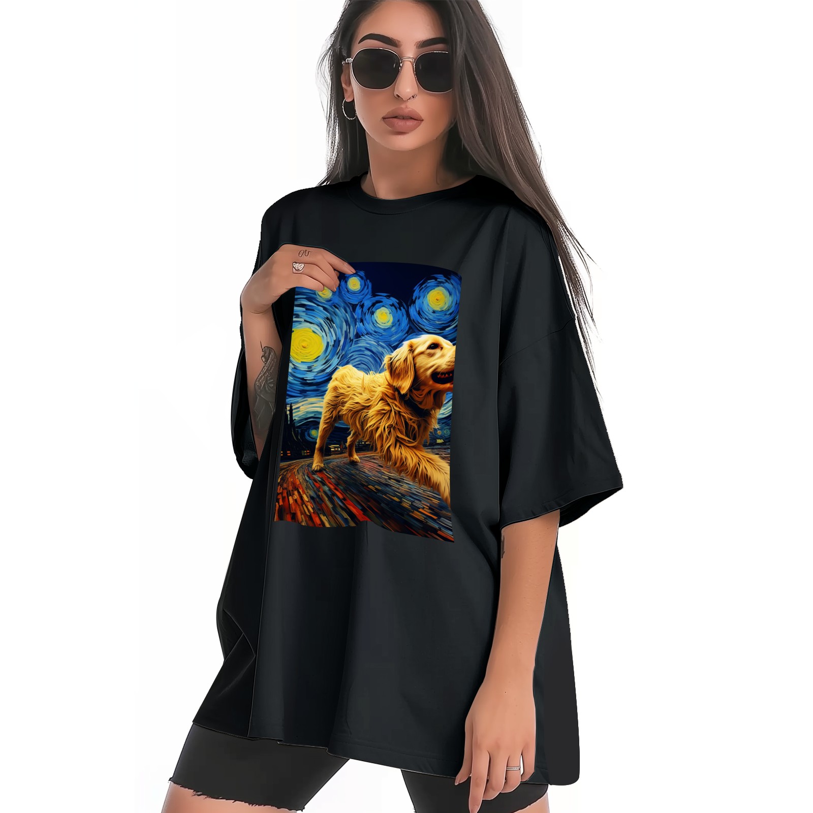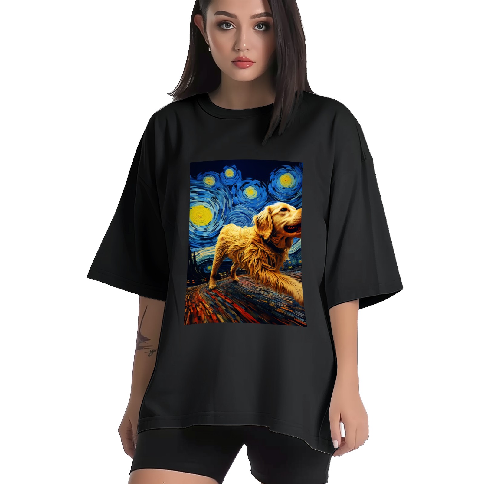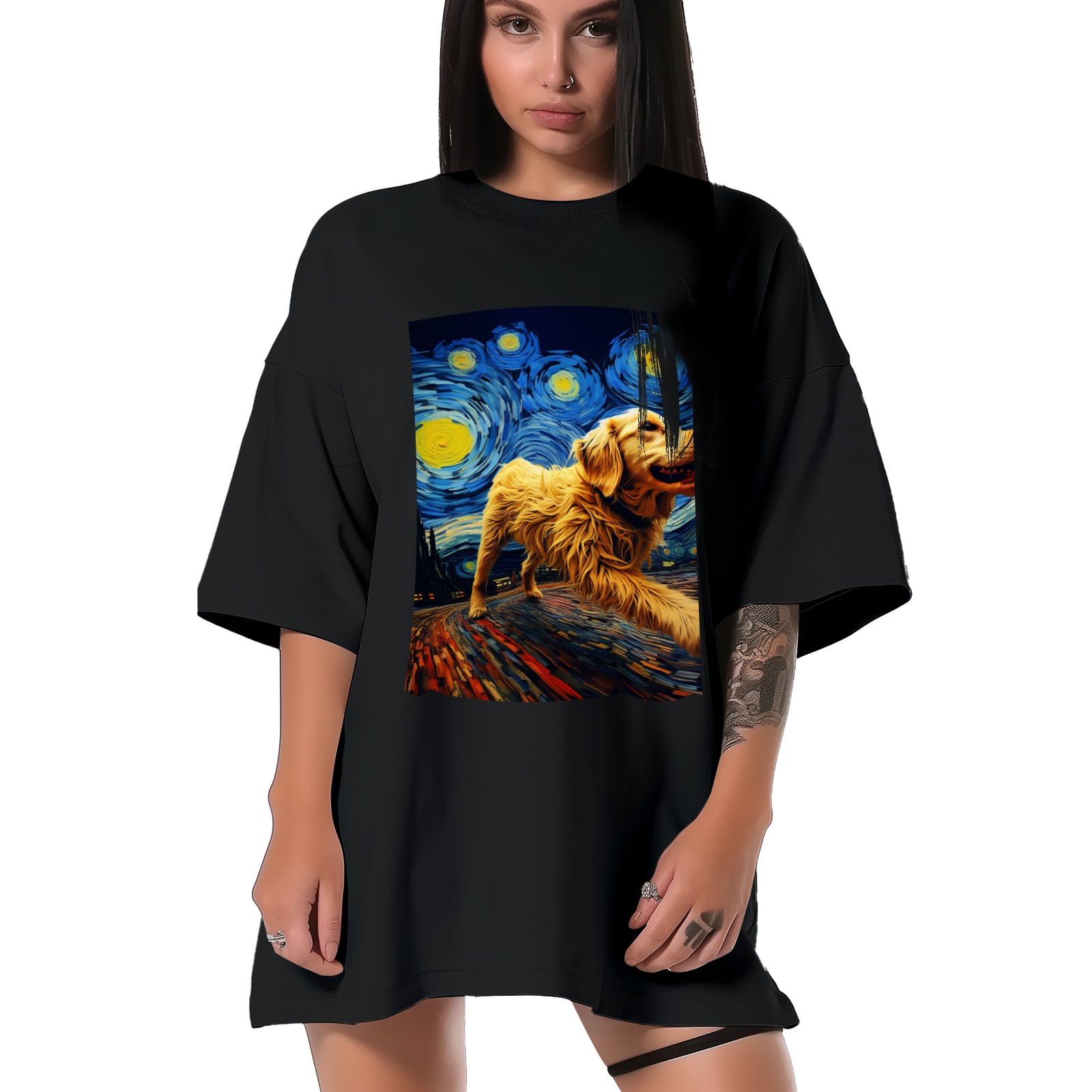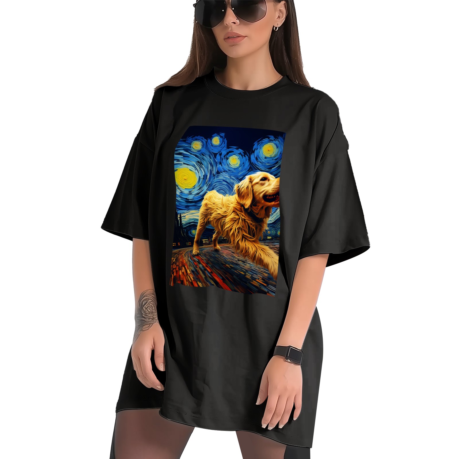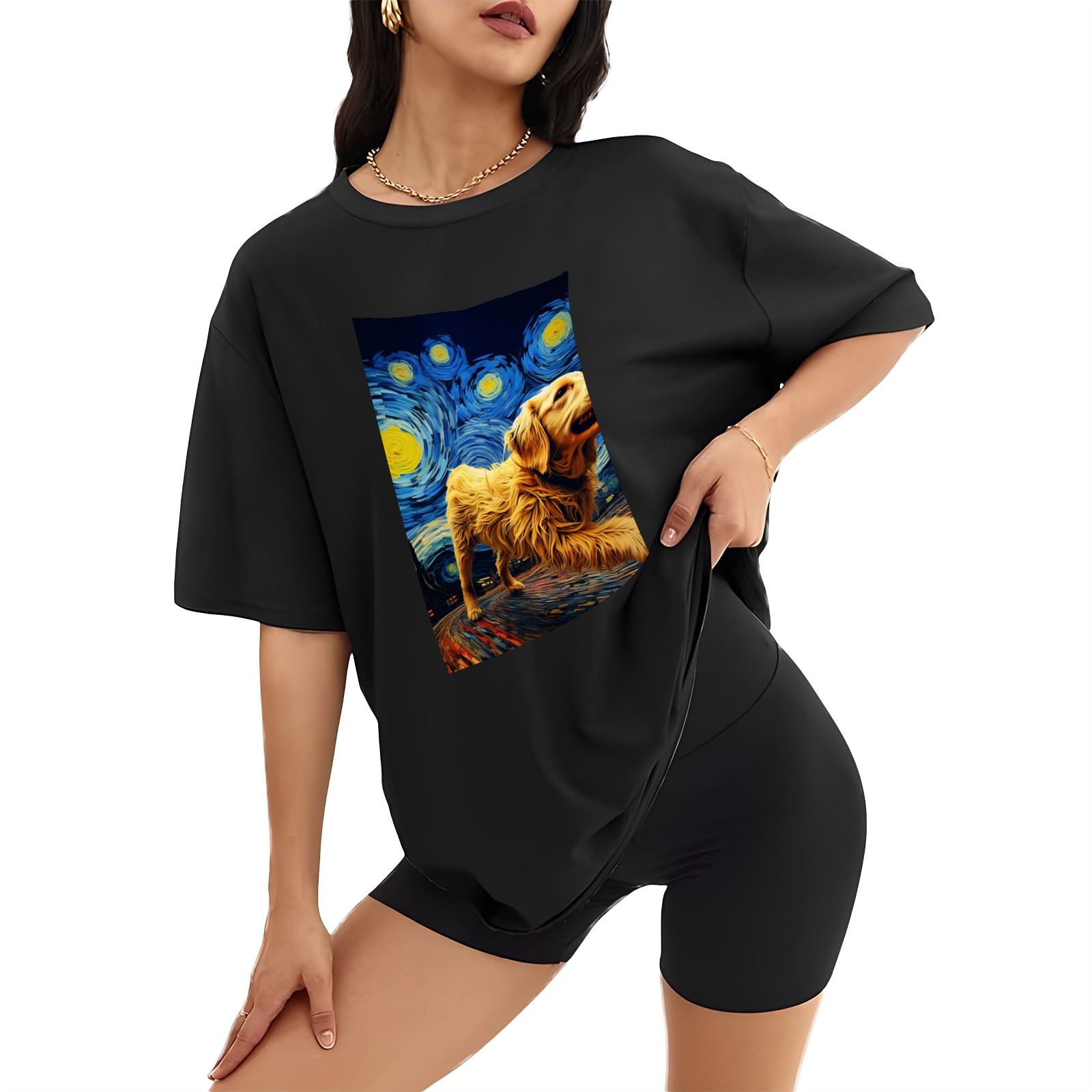 Plus Size Shirt for Women Black Tops for Women Short Sleeves Shirt for Women Dogs In The Night (7) T Shirt Crewneck Shirt for Women XS