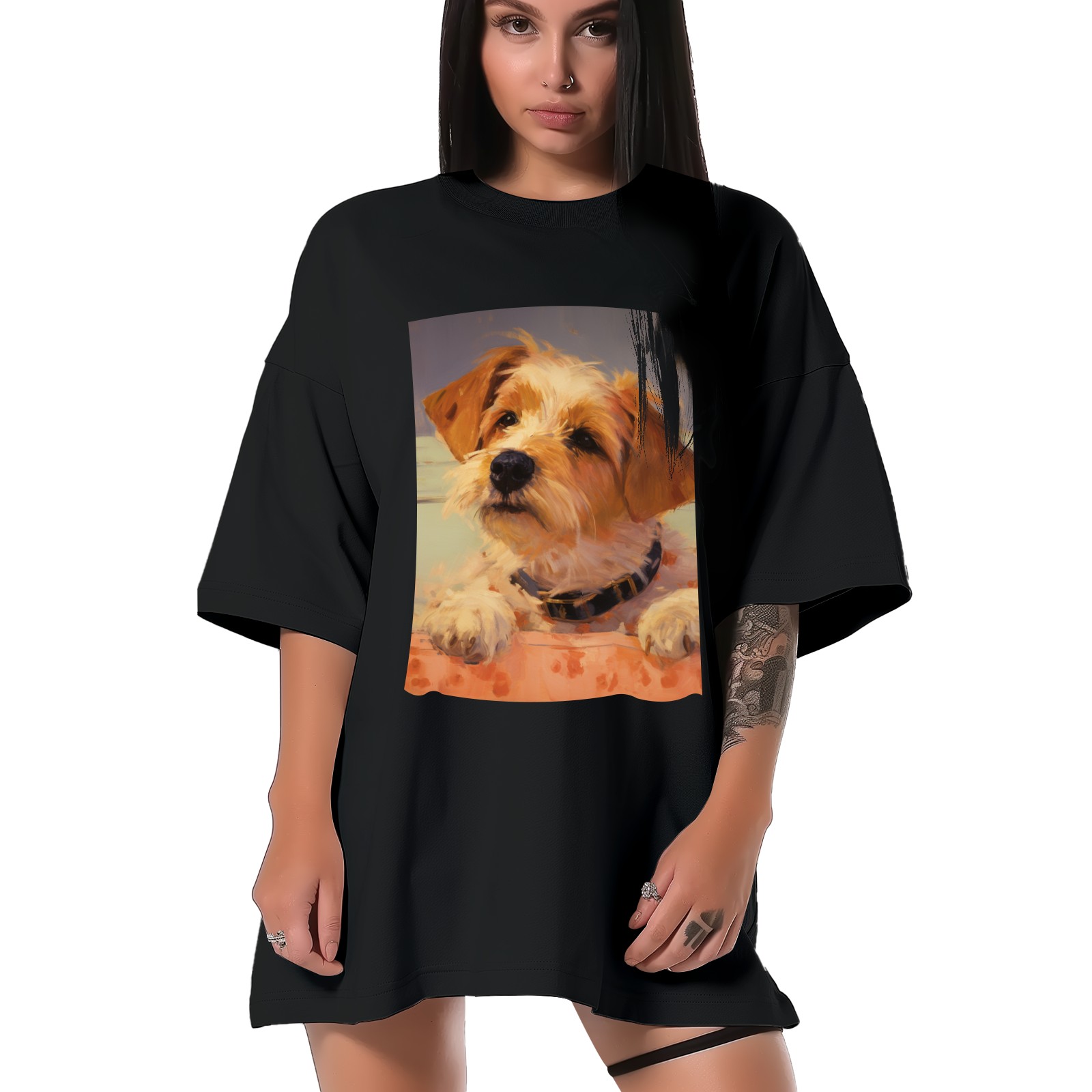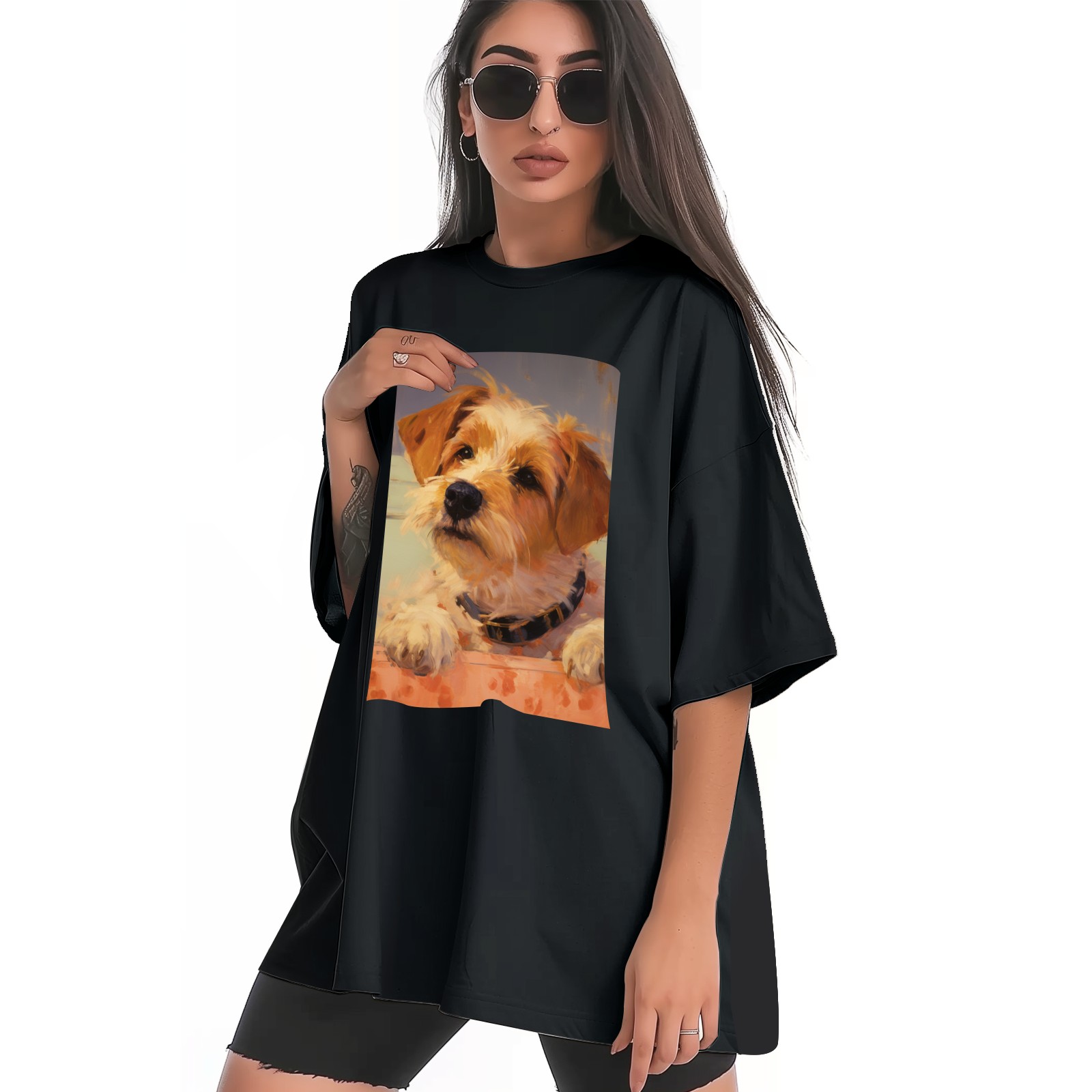 Plus Size Shirt for Women Black Tops for Women Short Sleeves Shirt for Women Dogs In The Night (3) T Shirt Crewneck Shirt for Women XS