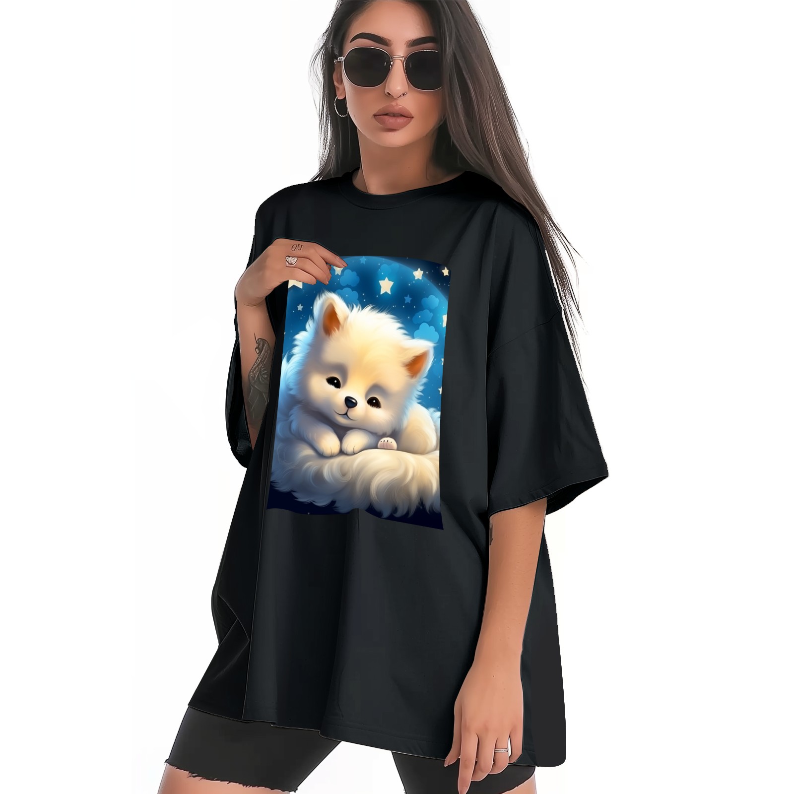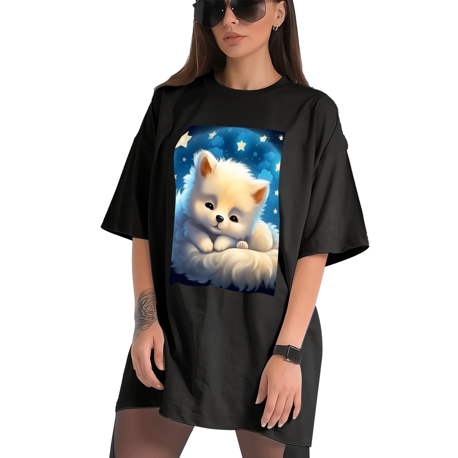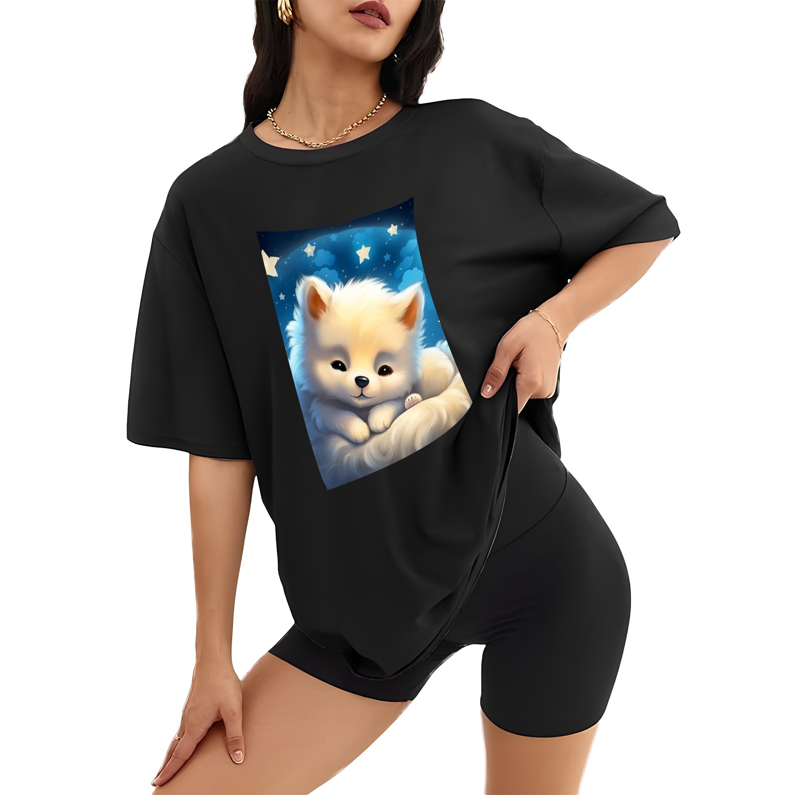 Plus Size Shirt for Women Black Tops for Women Short Sleeves Shirt for Women Cute Puppy 10 T Shirt Crewneck Shirt for Women XS