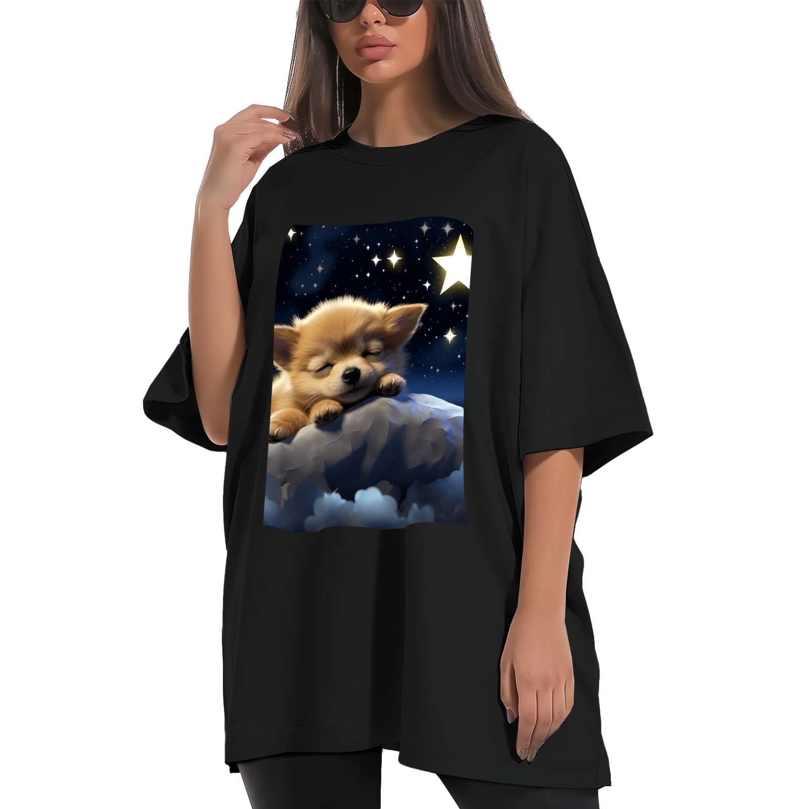 Plus Size Shirt for Women Black Tops for Women Short Sleeves Shirt for Women Cute Puppy 2 T Shirt Crewneck Shirt for Women XS