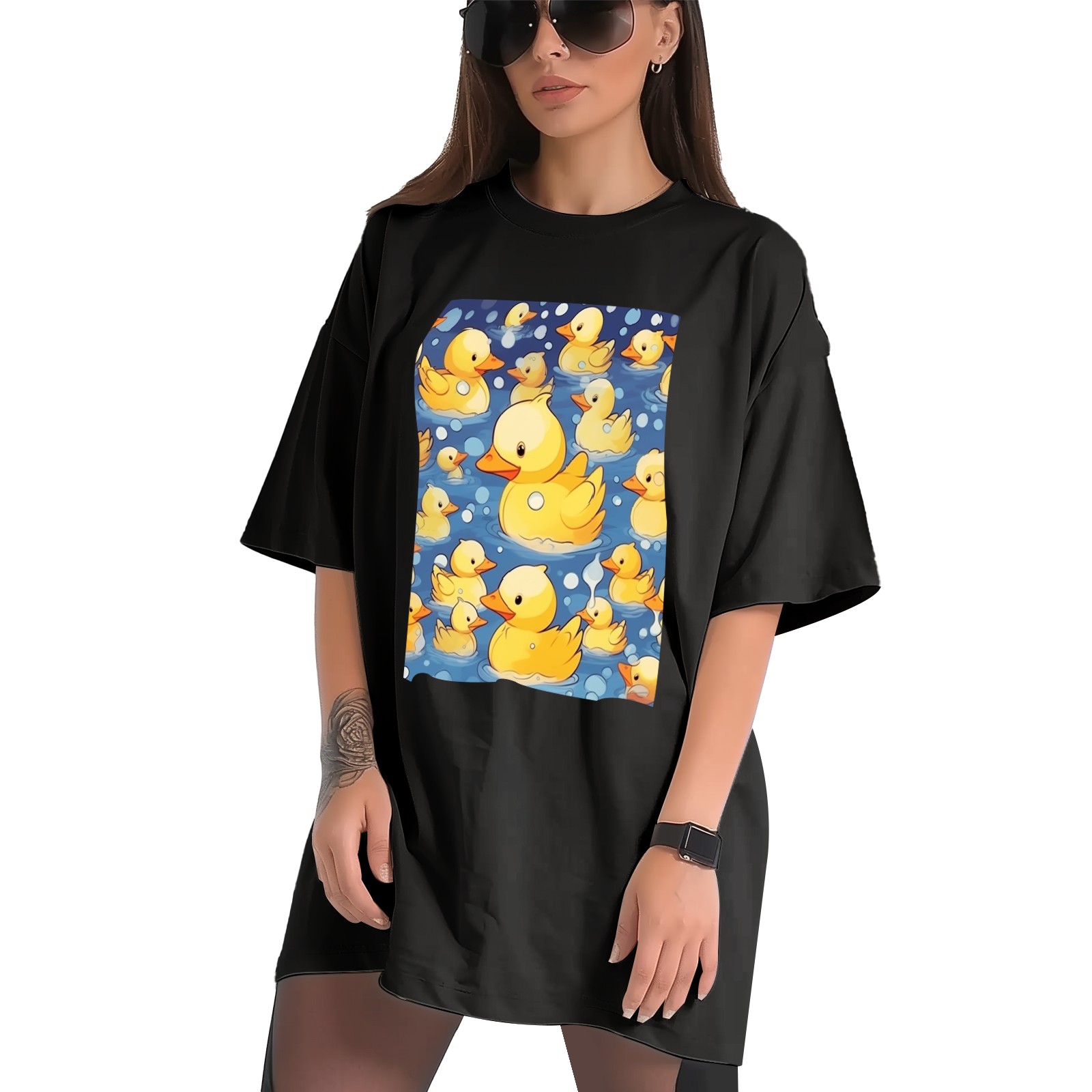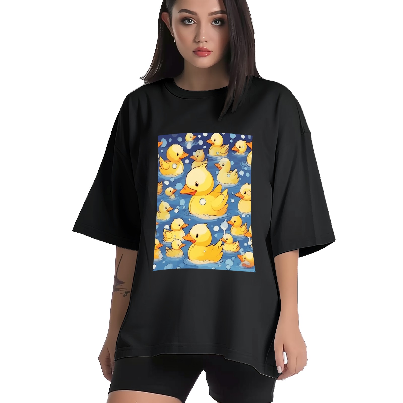 Plus Size Shirt for Women Black Tops for Women Short Sleeves Shirt for Women Cute Ducks T Shirt Crewneck Shirt for Women XS
