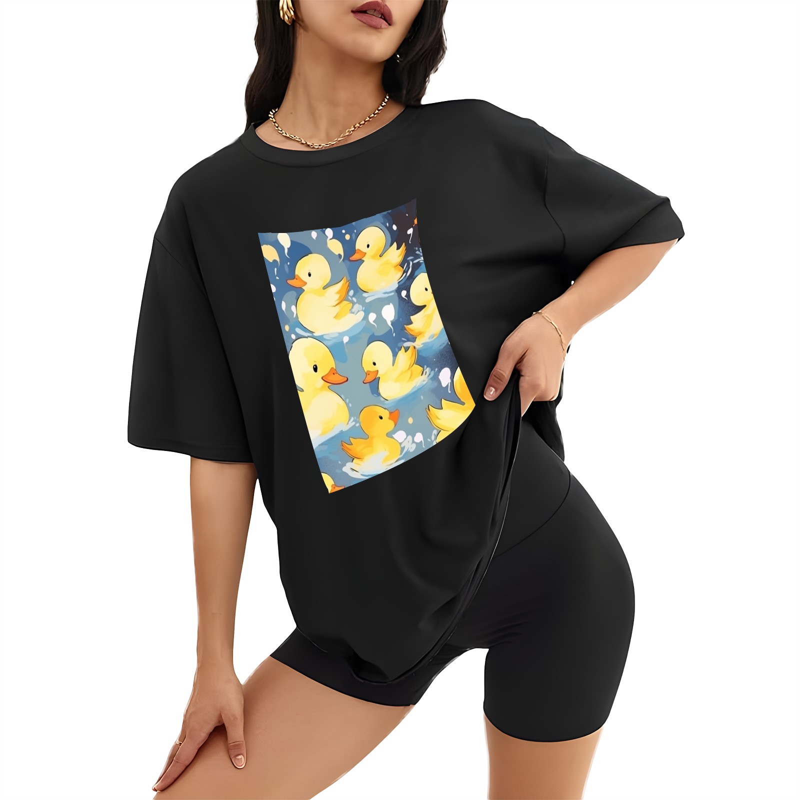 Plus Size Shirt for Women Black Tops for Women Short Sleeves Shirt for Women Cute Ducks 17 T Shirt Crewneck Shirt for Women XS