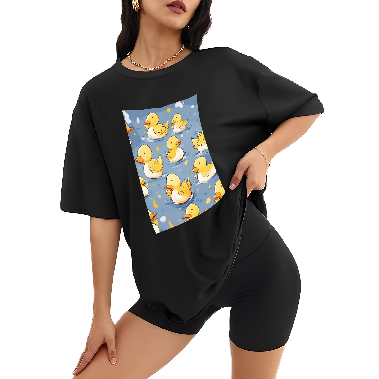 Plus Size Shirt for Women Black Tops for Women Short Sleeves Shirt for Women Cute Ducks 14 T Shirt Crewneck Shirt for Women XS