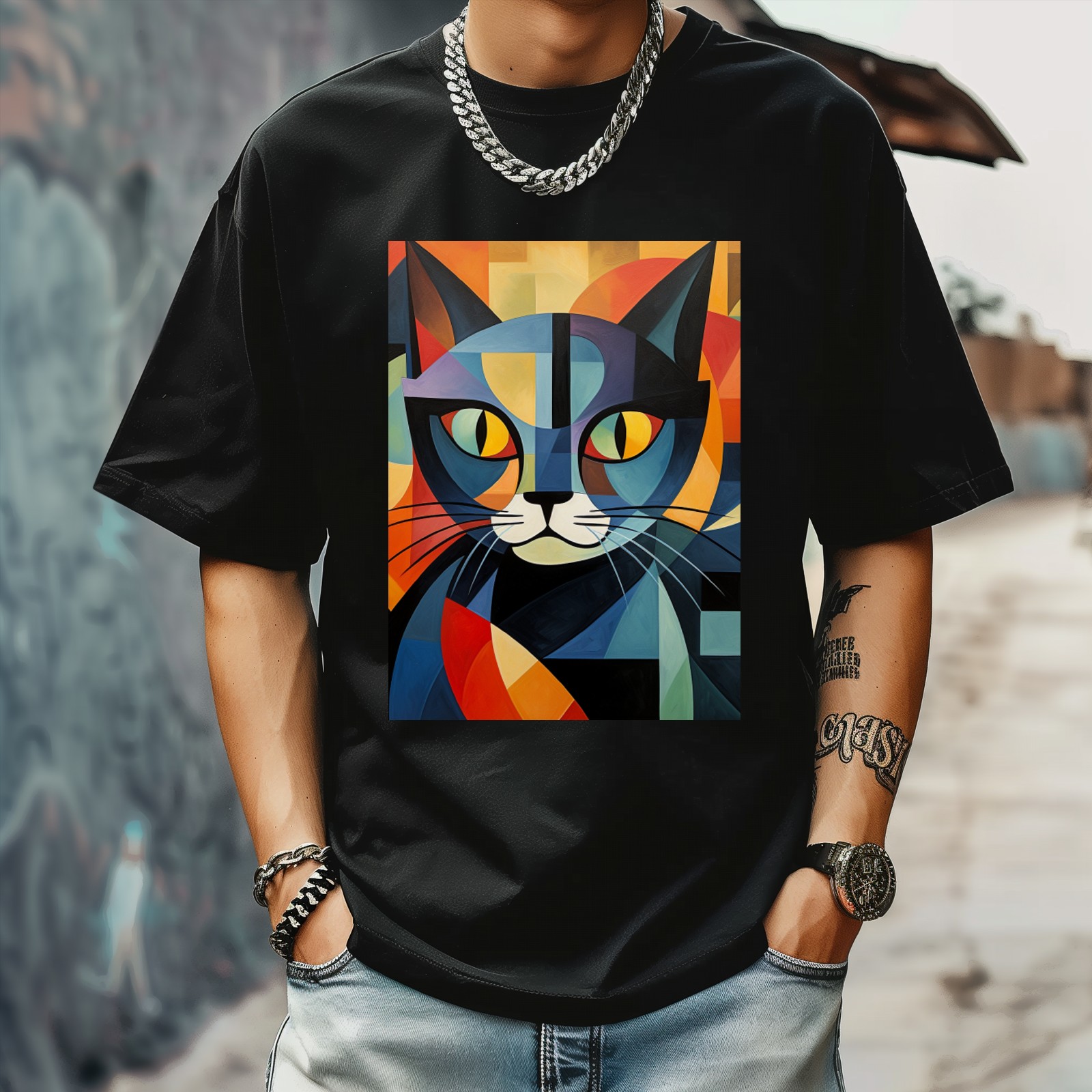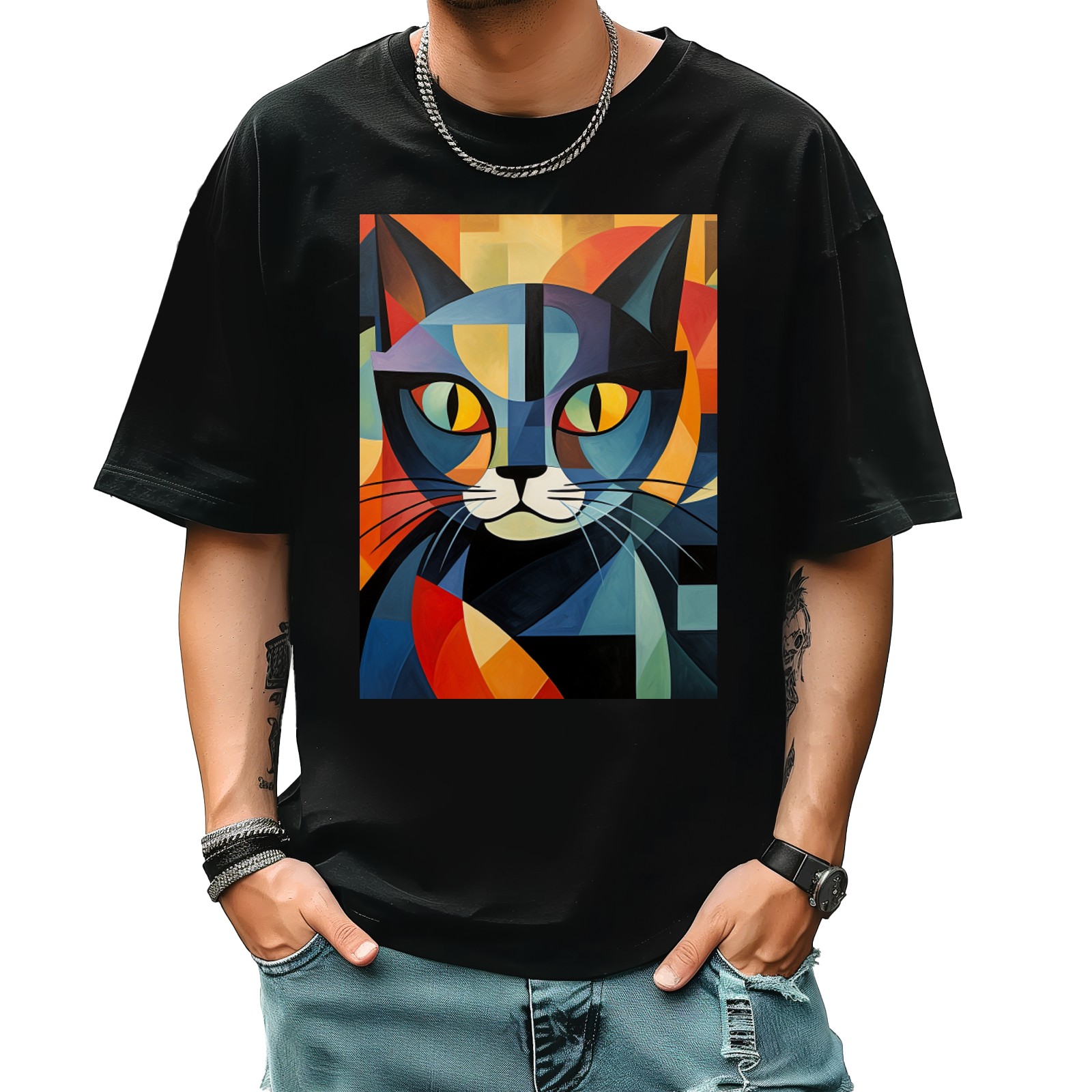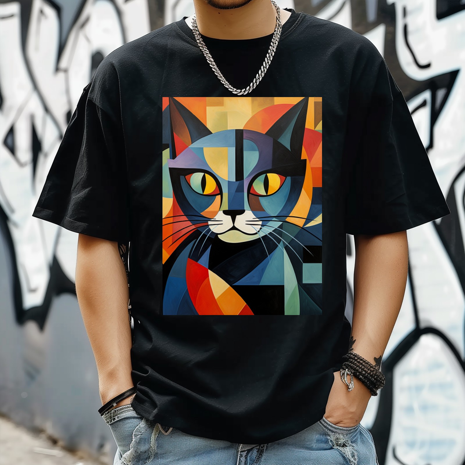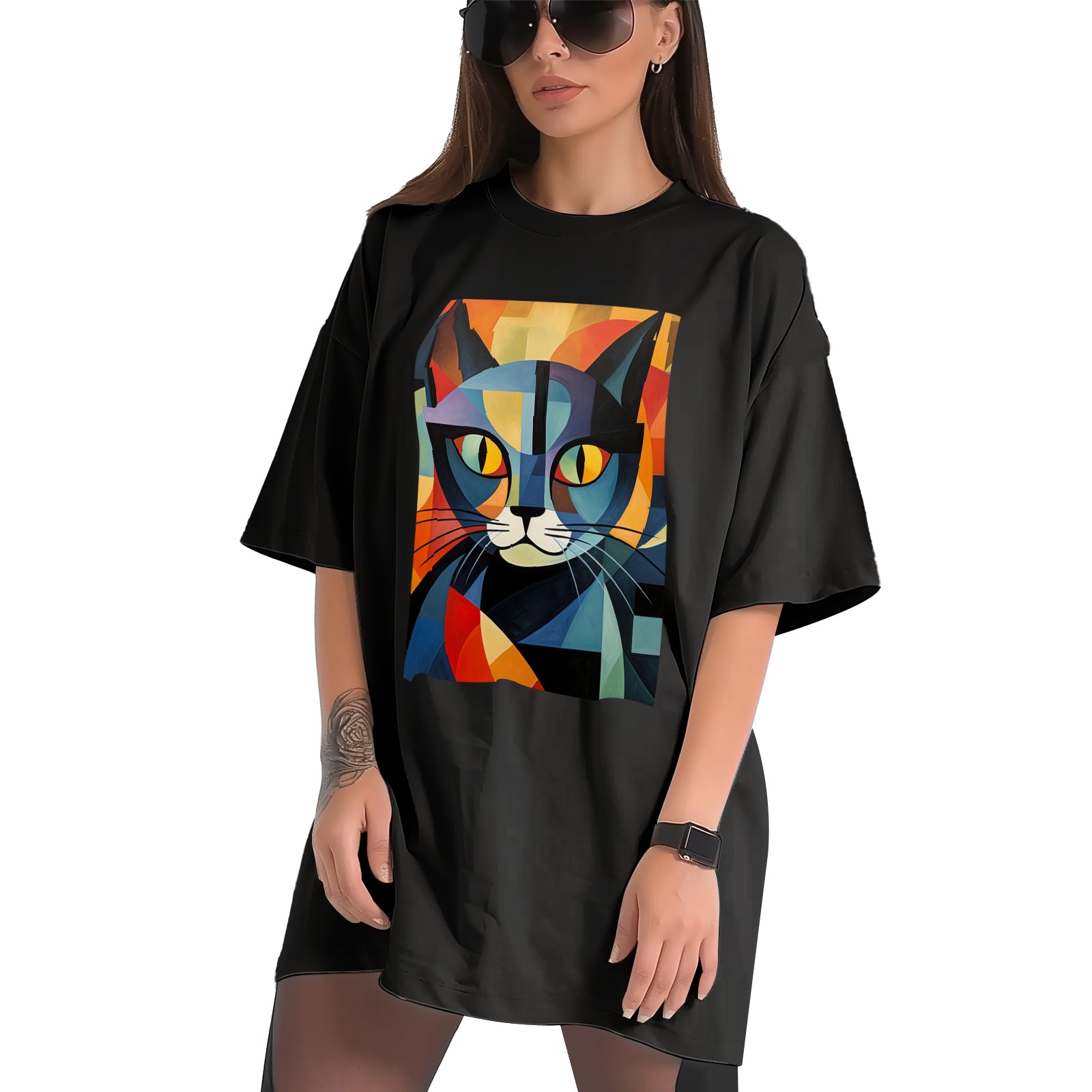 Plus Size Shirt for Women Black Tops for Women Short Sleeves Shirt for Women Cubist Style Cat (16) T Shirt Crewneck Shirt for Women XS