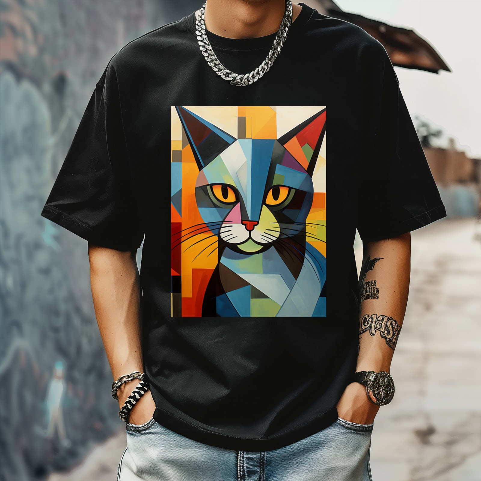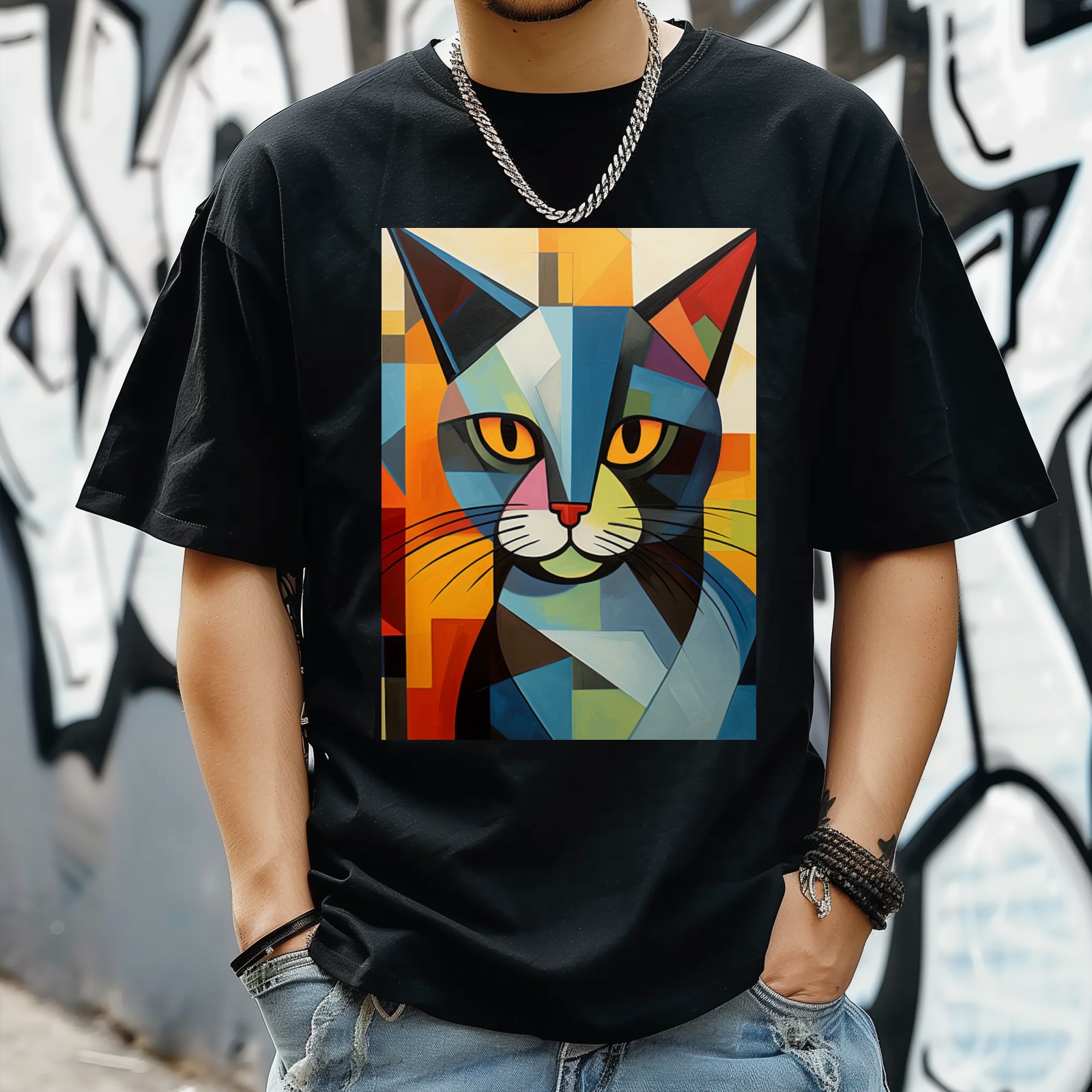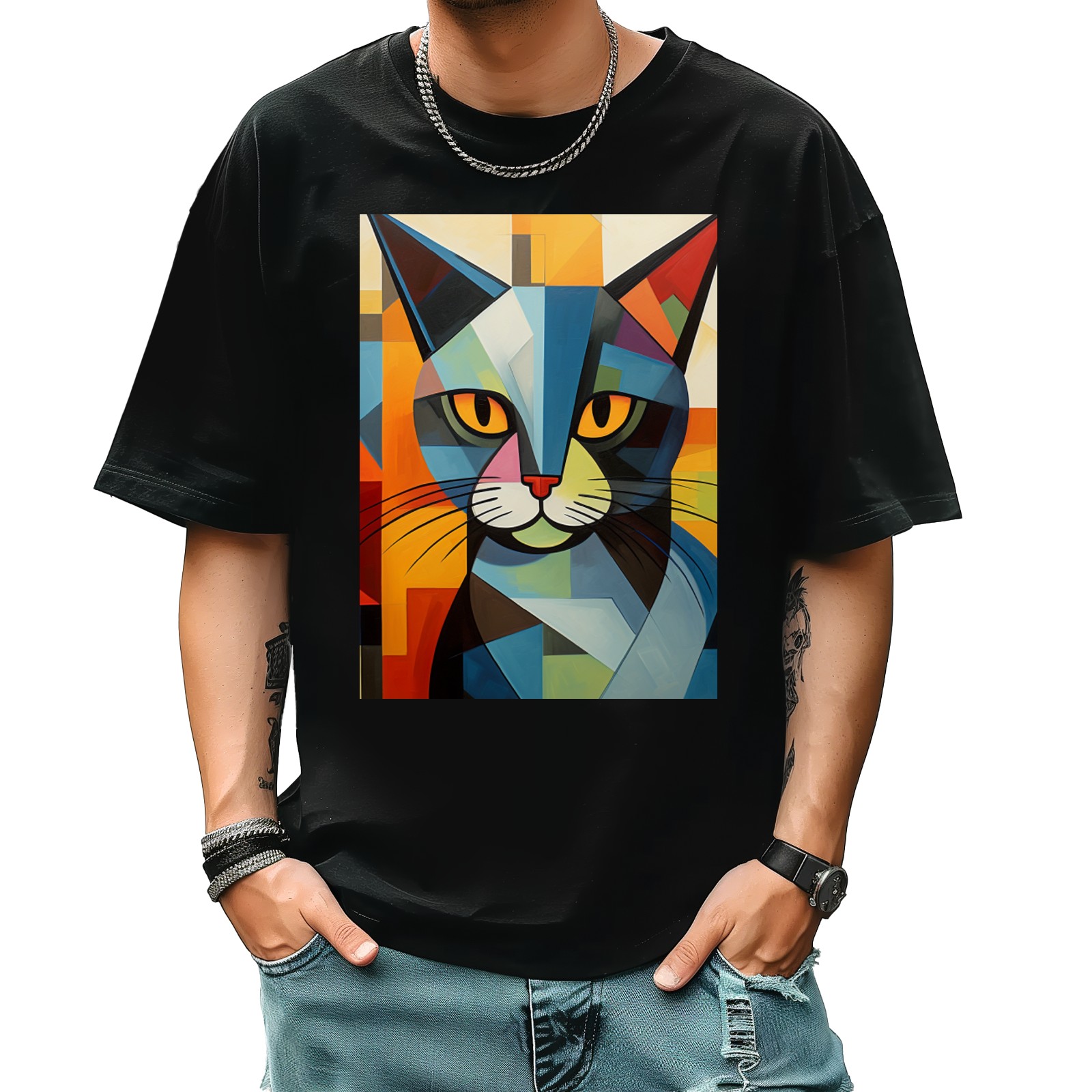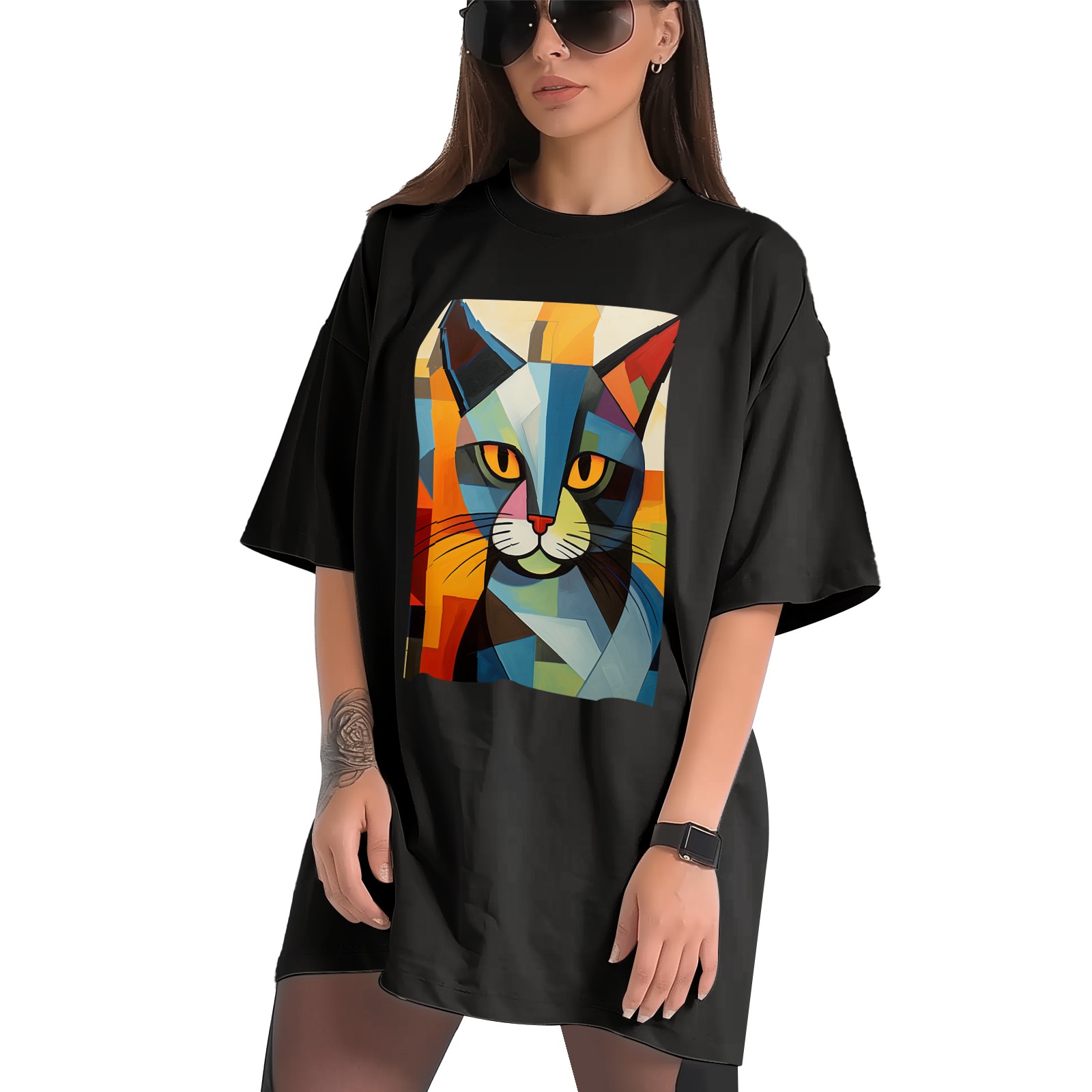 Plus Size Shirt for Women Black Tops for Women Short Sleeves Shirt for Women Cubist Style Cat (14) T Shirt Crewneck Shirt for Women XS