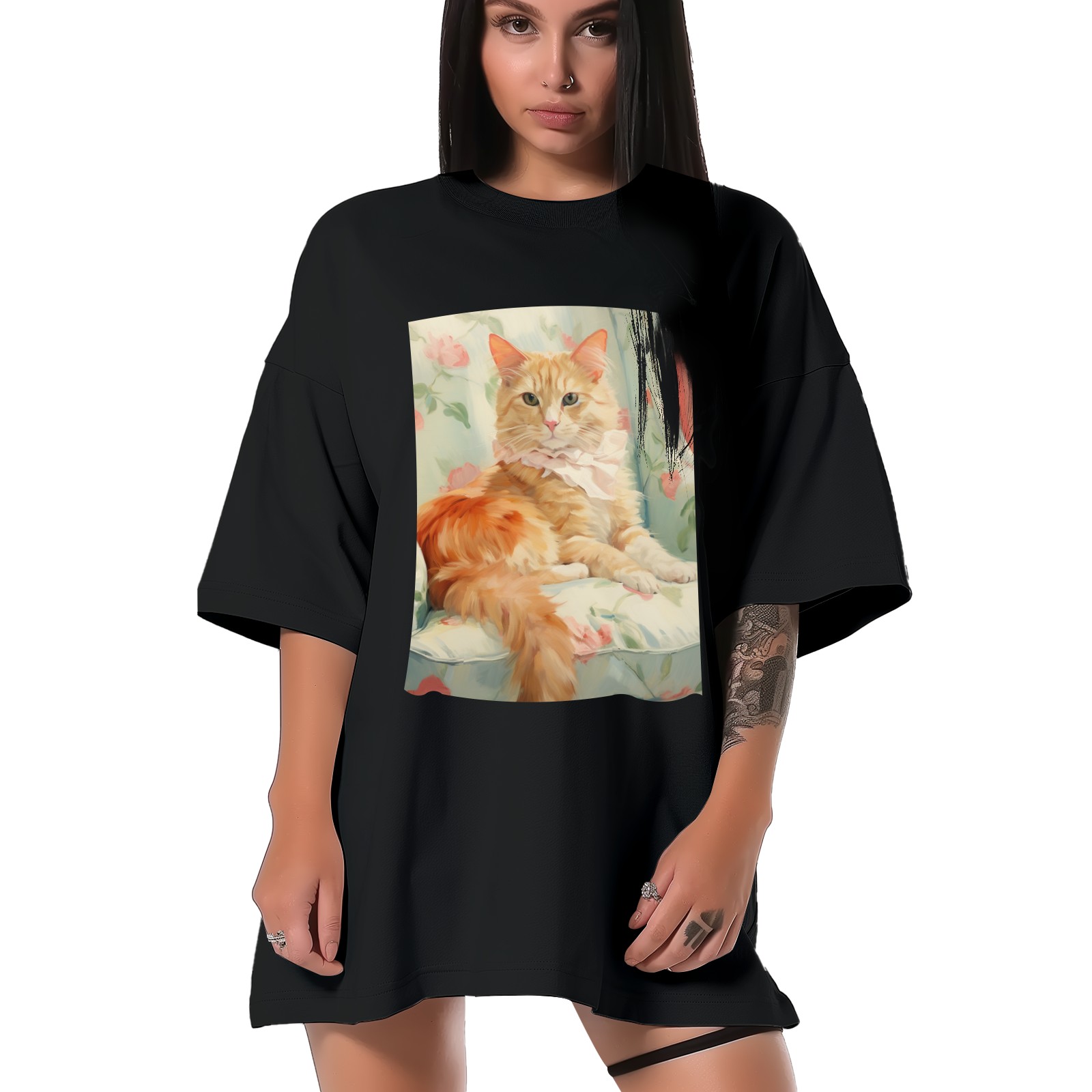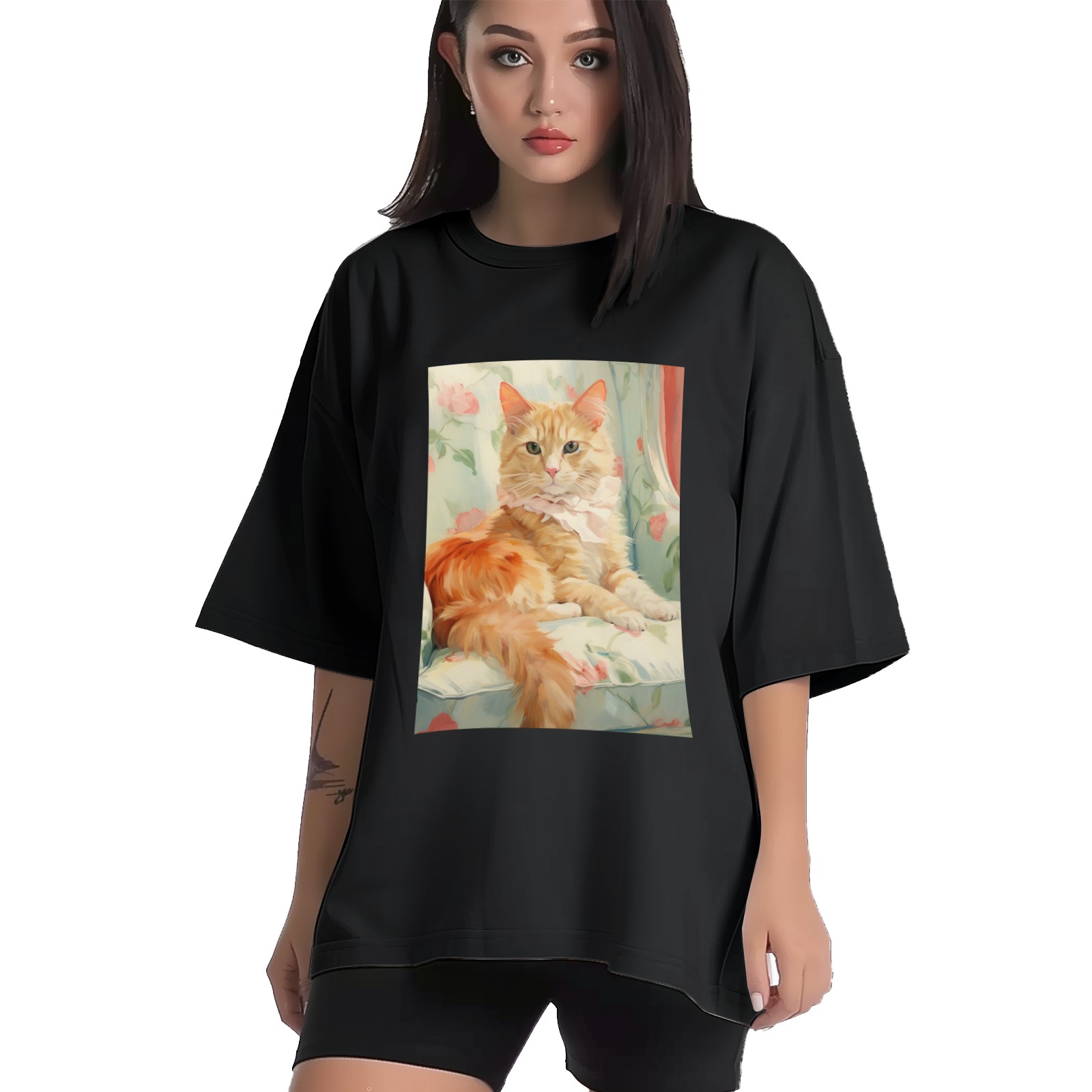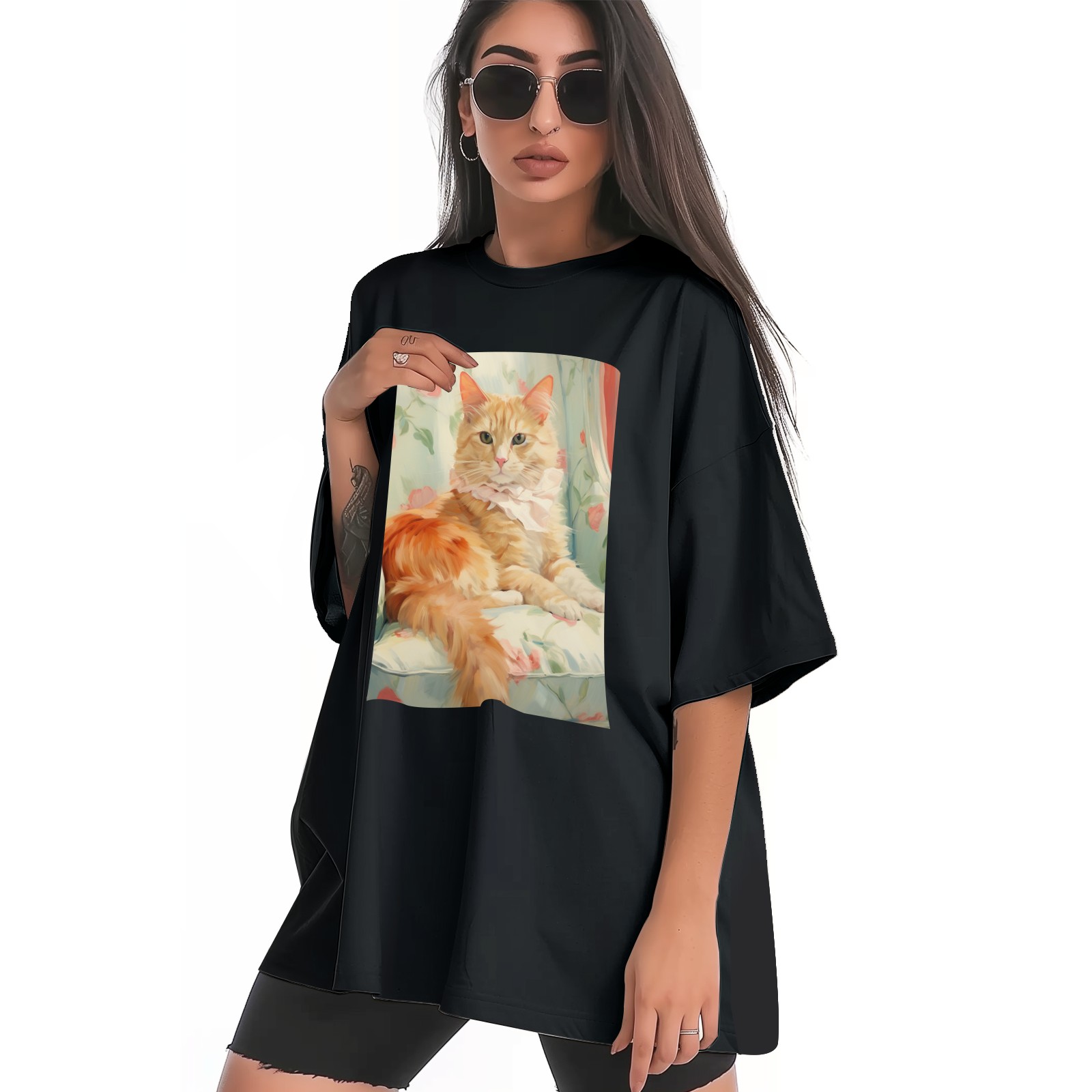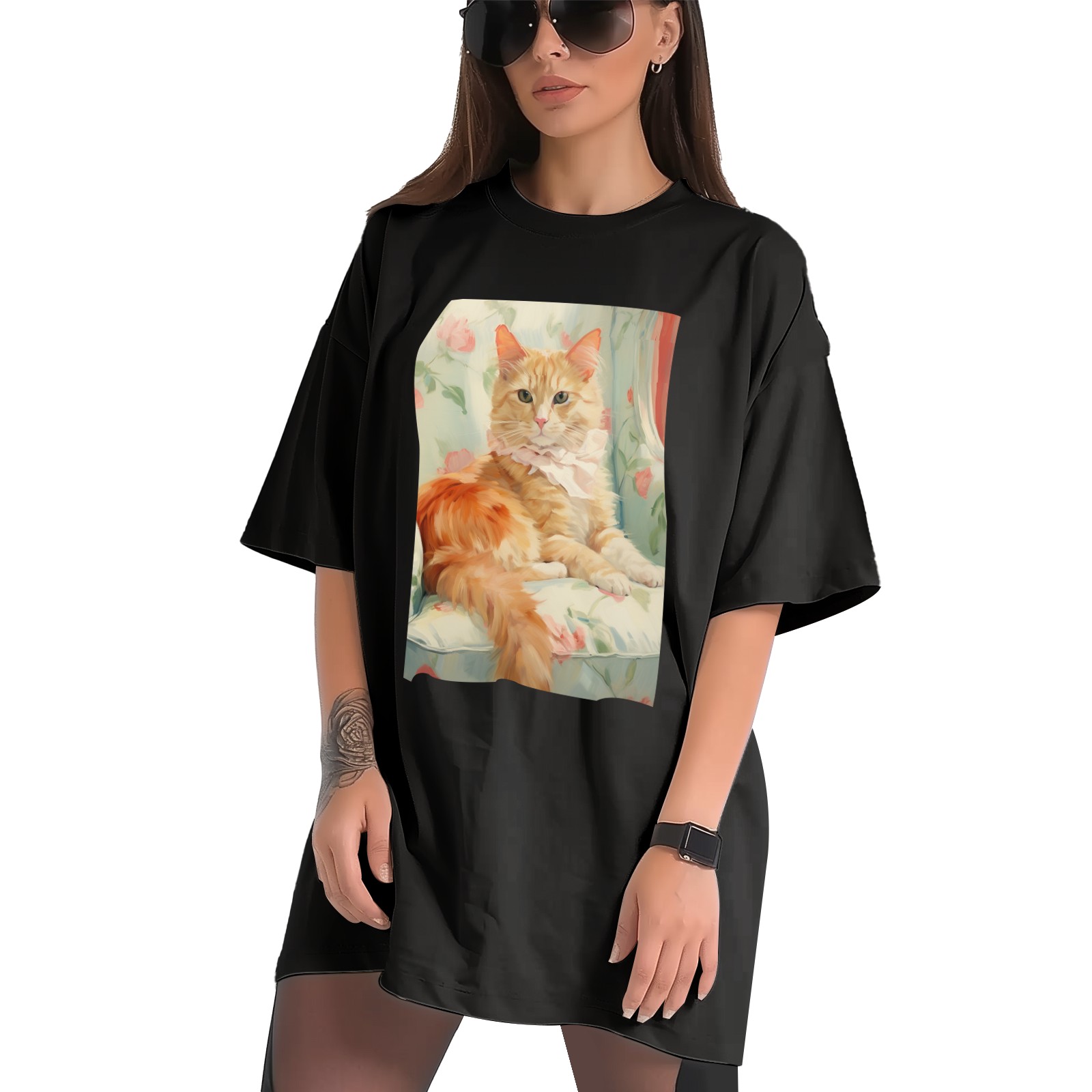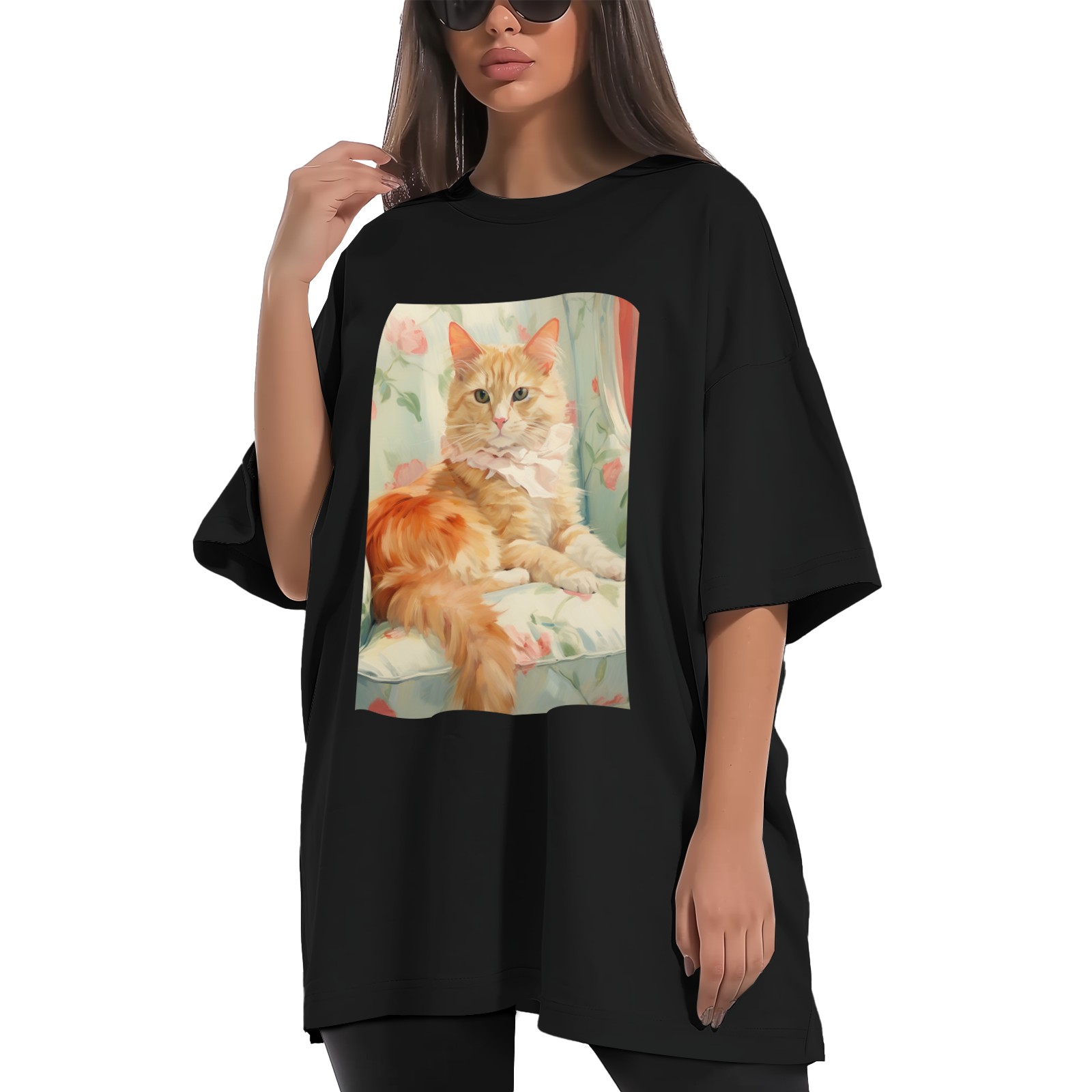 Plus Size Shirt for Women Black Tops for Women Short Sleeves Shirt for Women Cubist Style Cat (12) T Shirt Crewneck Shirt for Women XS