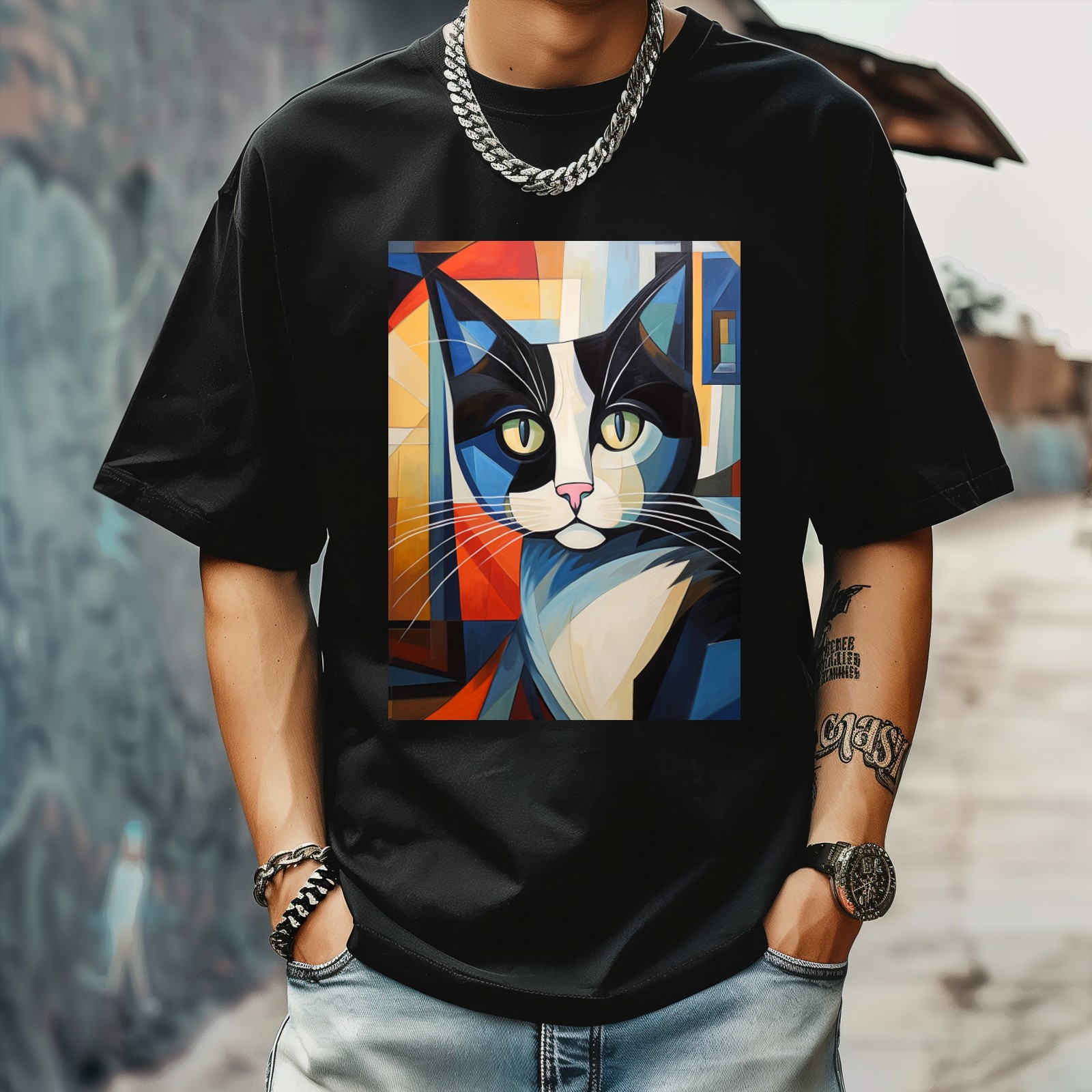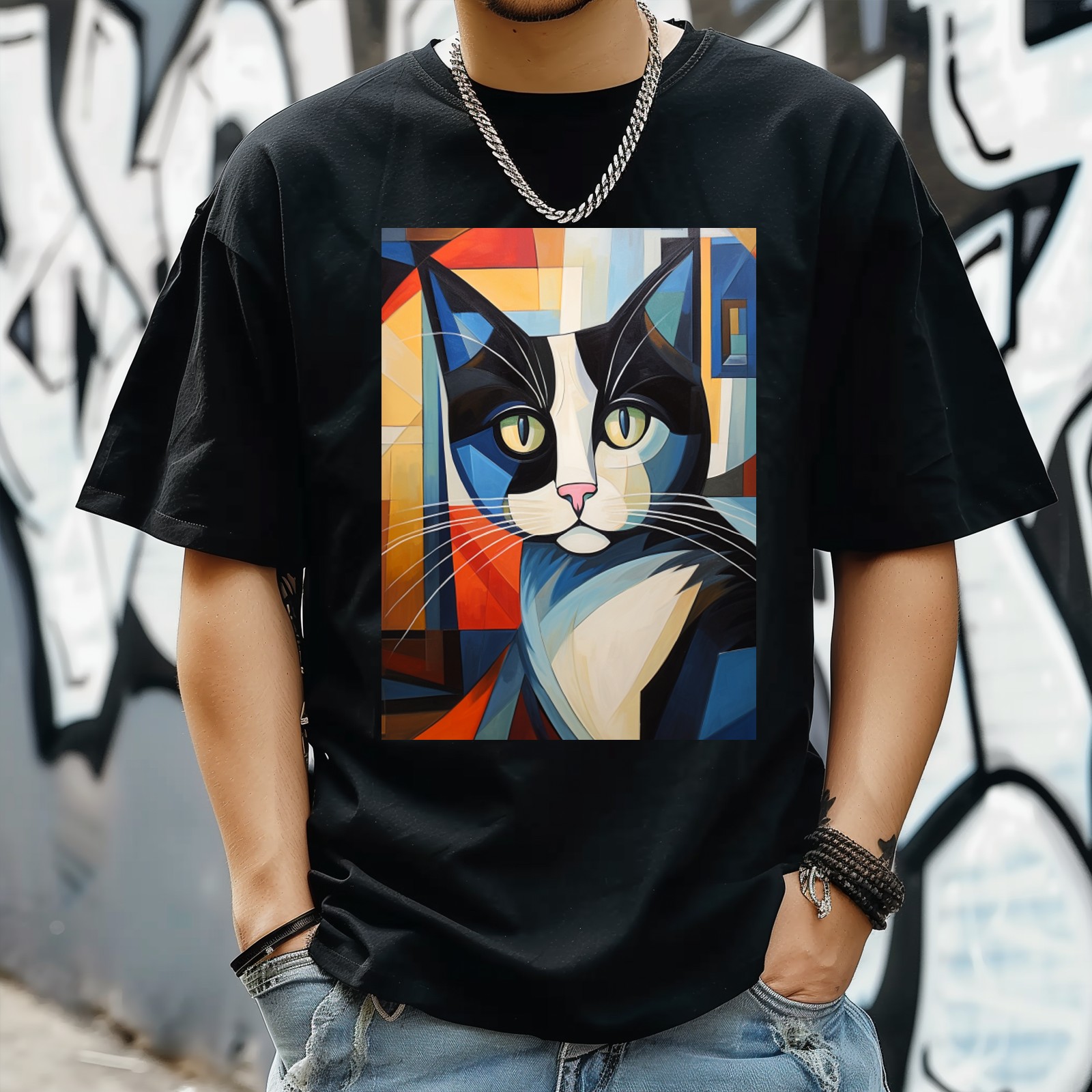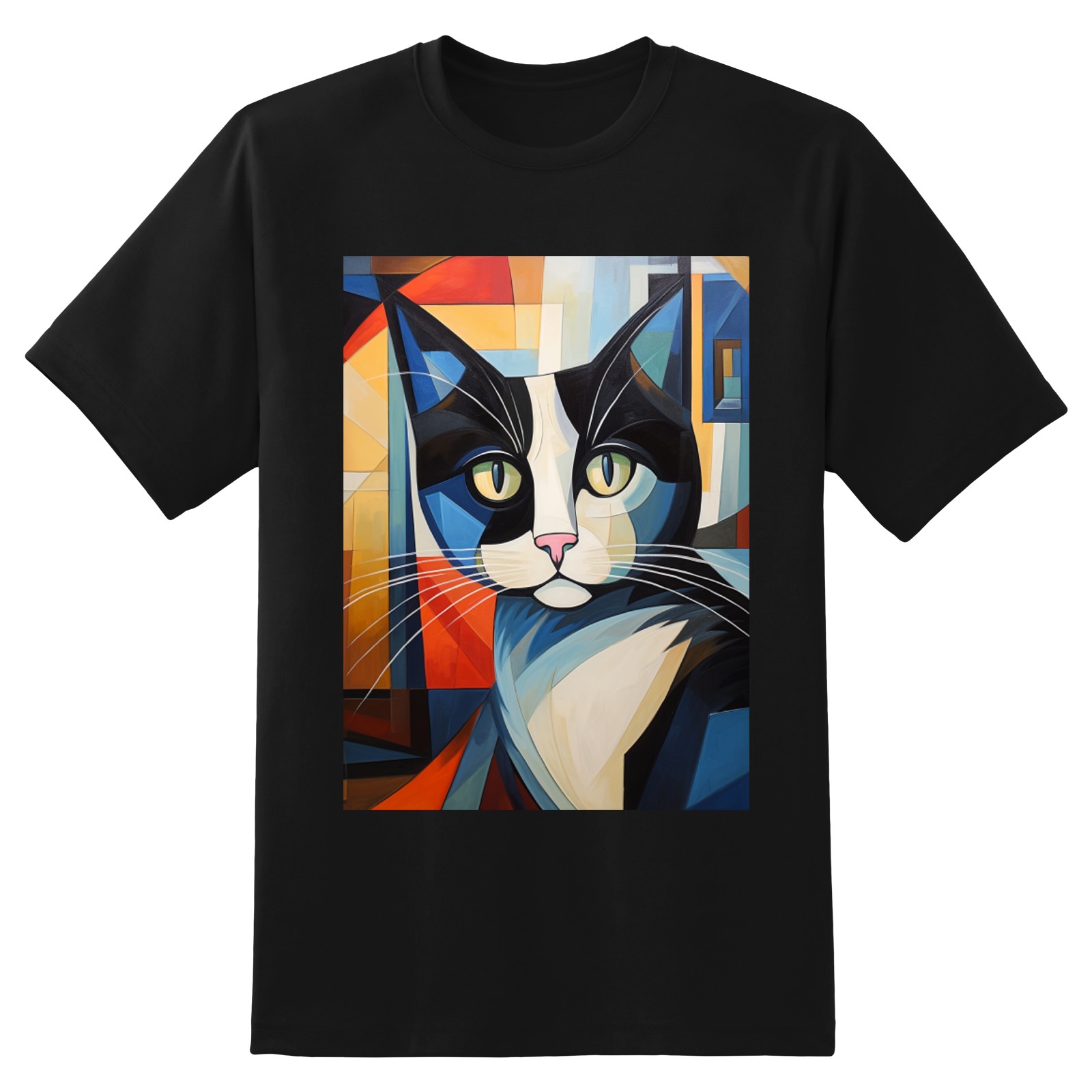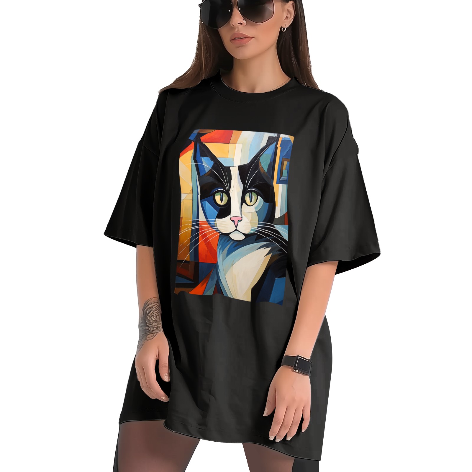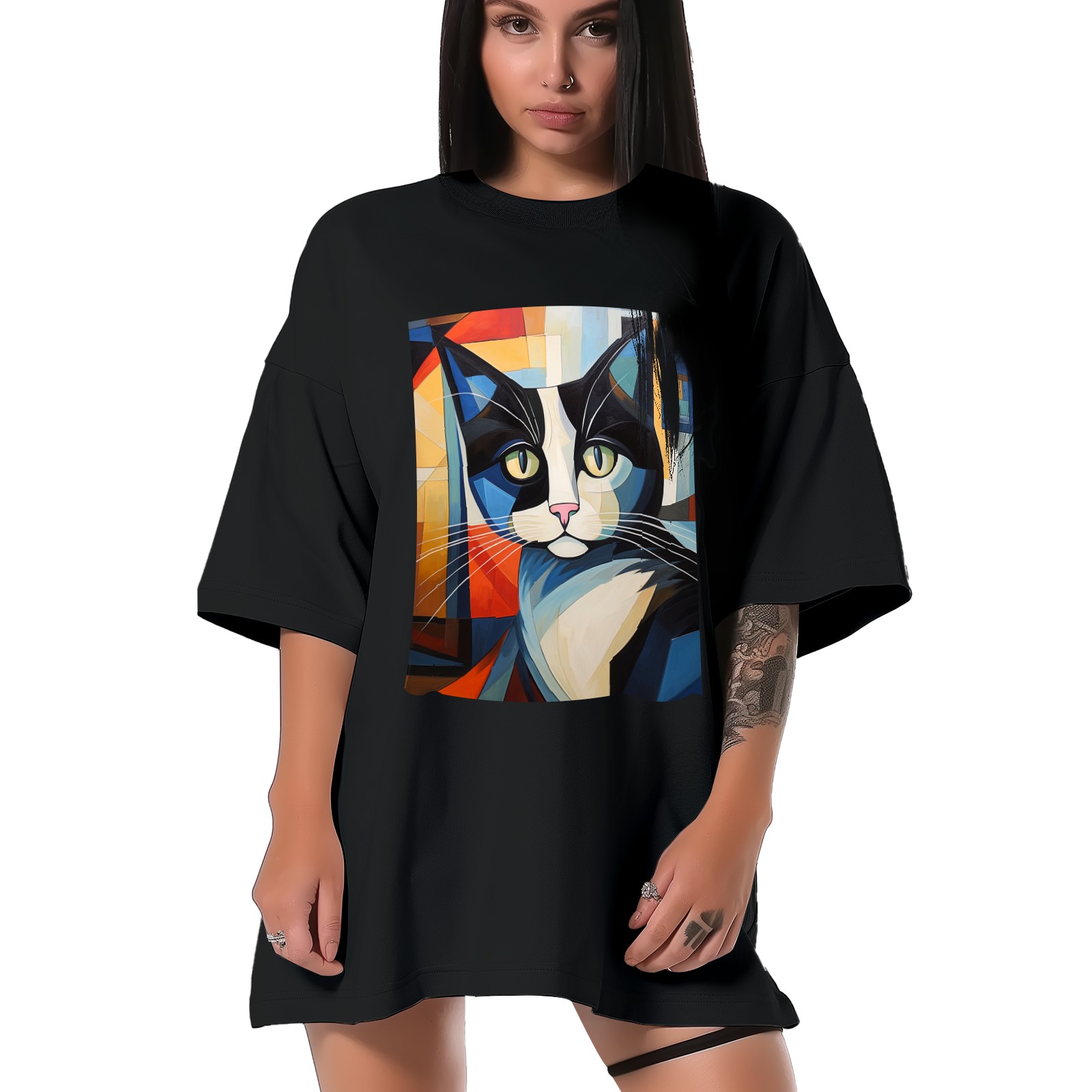 Plus Size Shirt for Women Black Tops for Women Short Sleeves Shirt for Women Cubist Style Cat (1) T Shirt Crewneck Shirt for Women XS