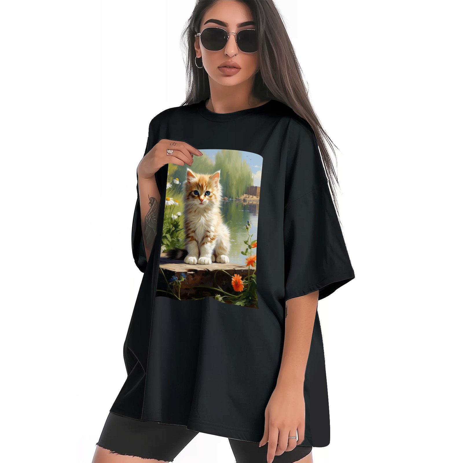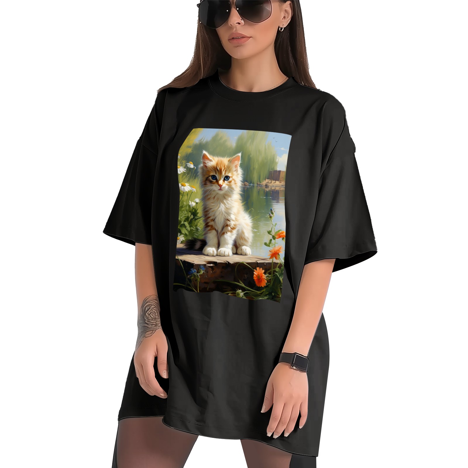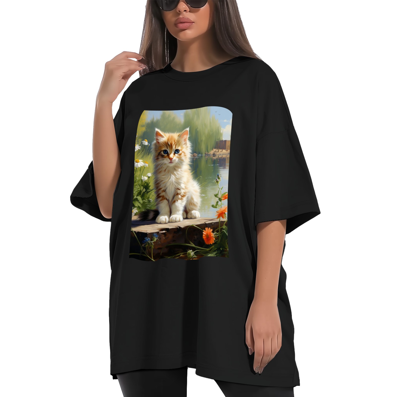 Plus Size Shirt for Women Black Tops for Women Short Sleeves Shirt for Women Cats 47 T Shirt Crewneck Shirt for Women XS