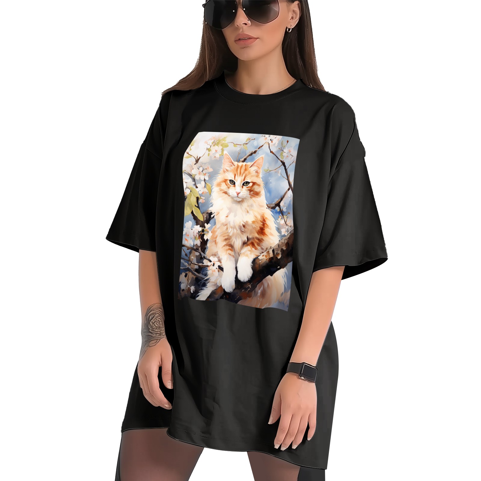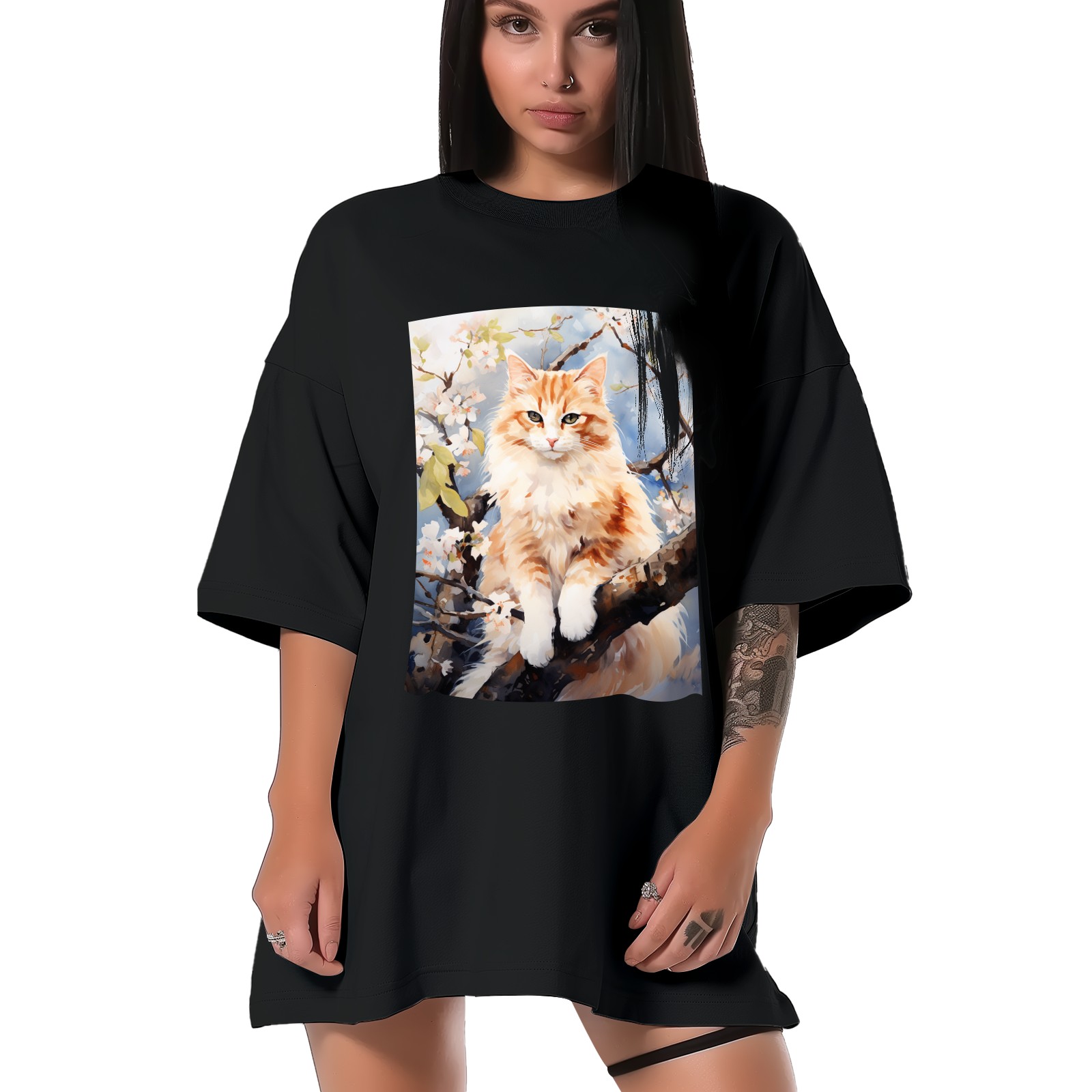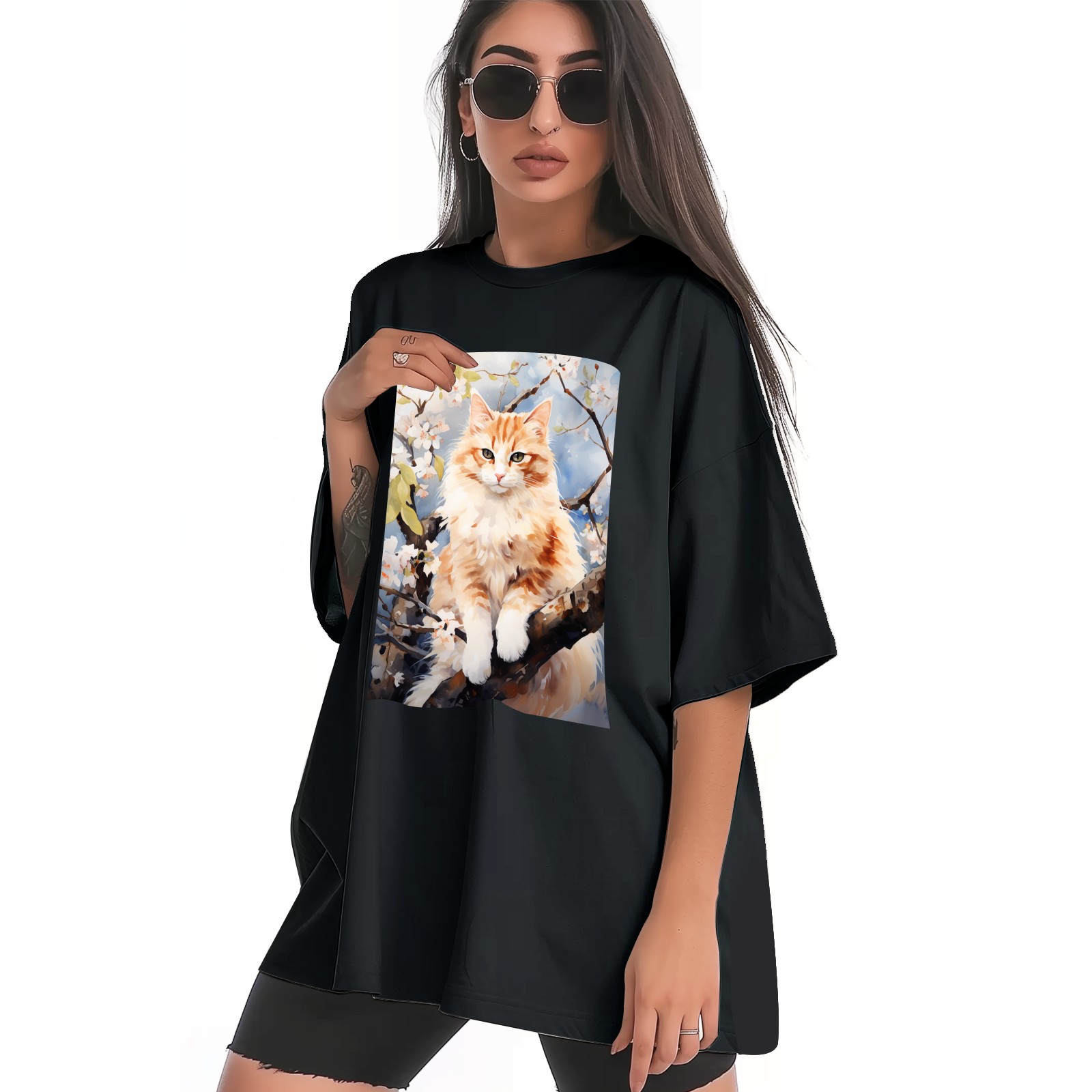 Plus Size Shirt for Women Black Tops for Women Short Sleeves Shirt for Women Cats 45 T Shirt Crewneck Shirt for Women XS