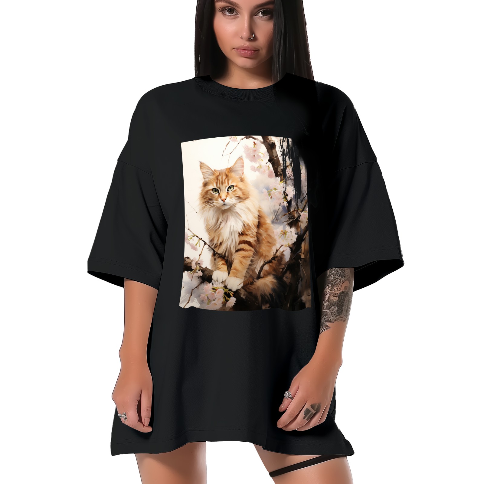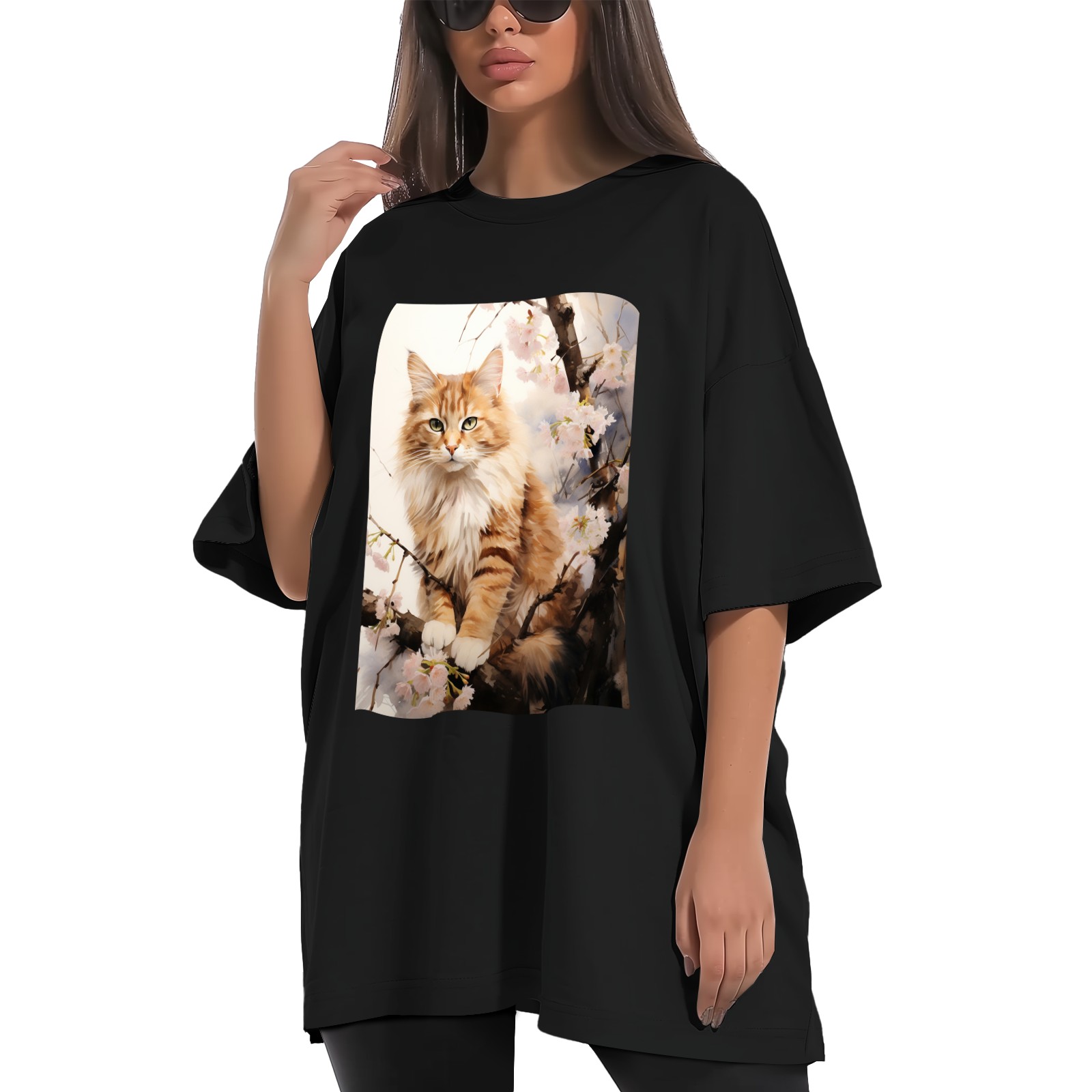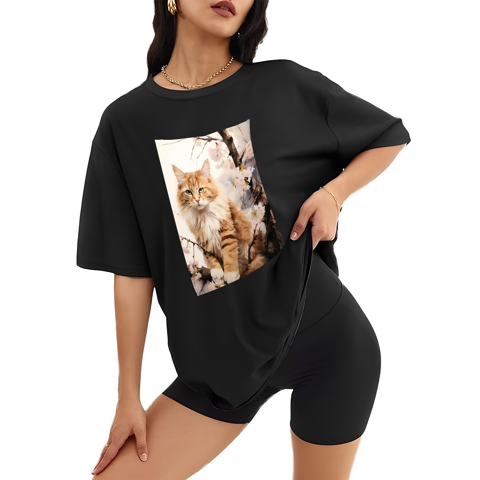 Plus Size Shirt for Women Black Tops for Women Short Sleeves Shirt for Women Cats 46 T Shirt Crewneck Shirt for Women XS