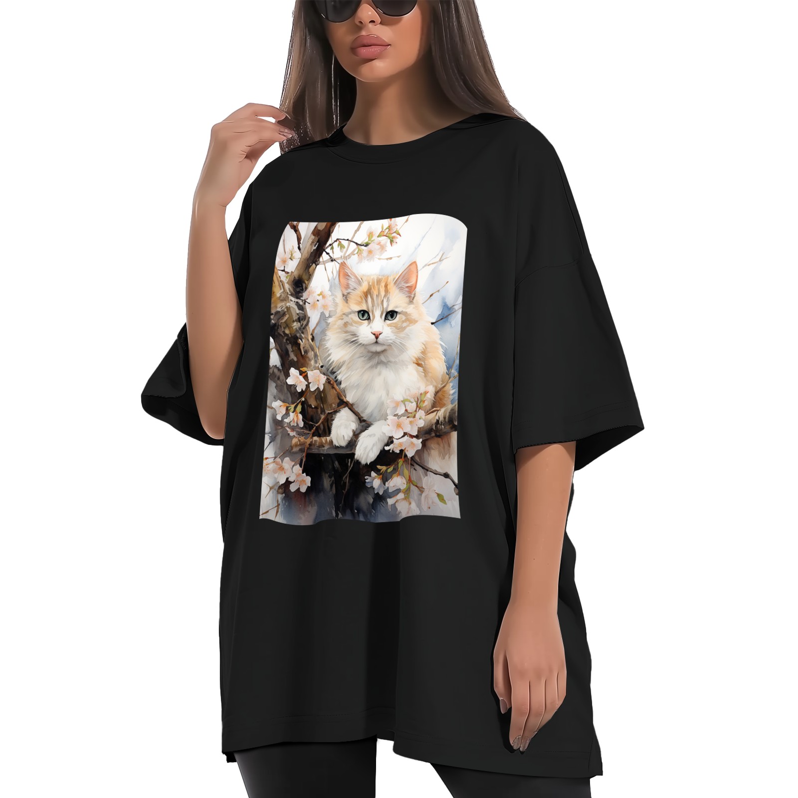 Plus Size Shirt for Women Black Tops for Women Short Sleeves Shirt for Women Cats 44 T Shirt Crewneck Shirt for Women XS