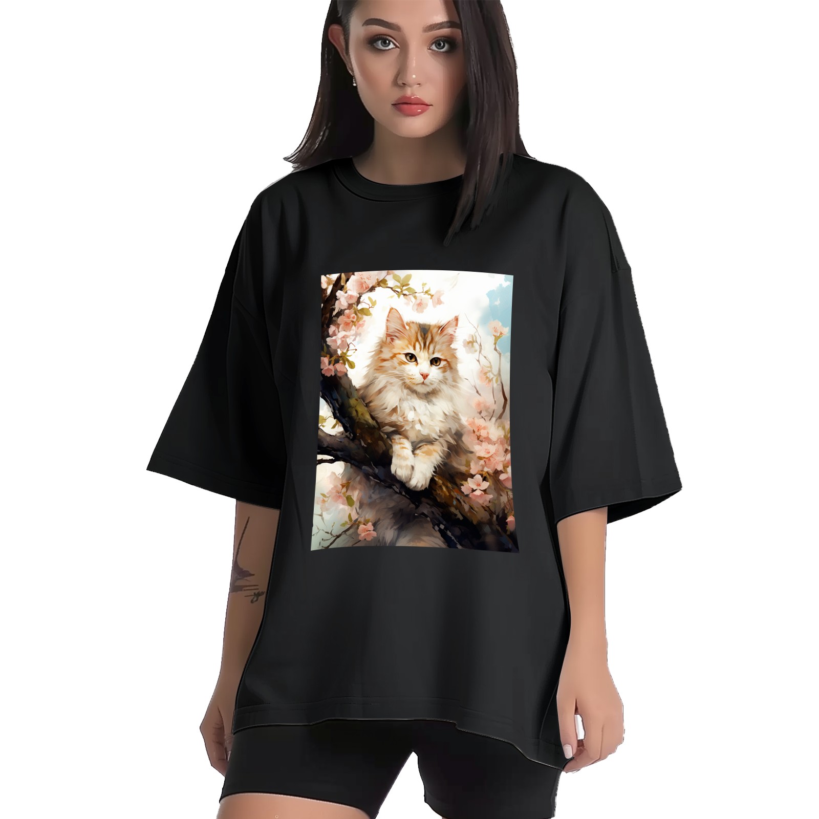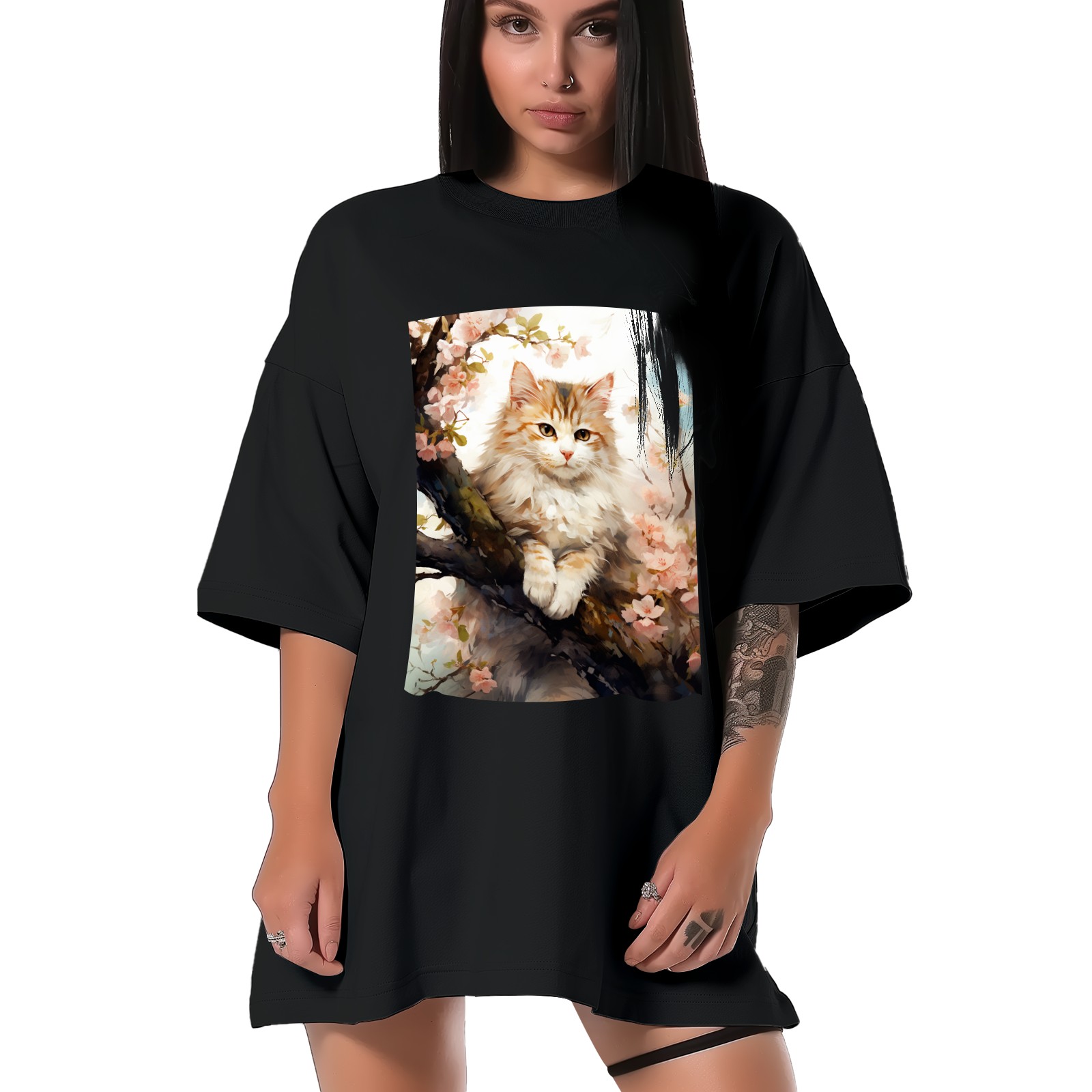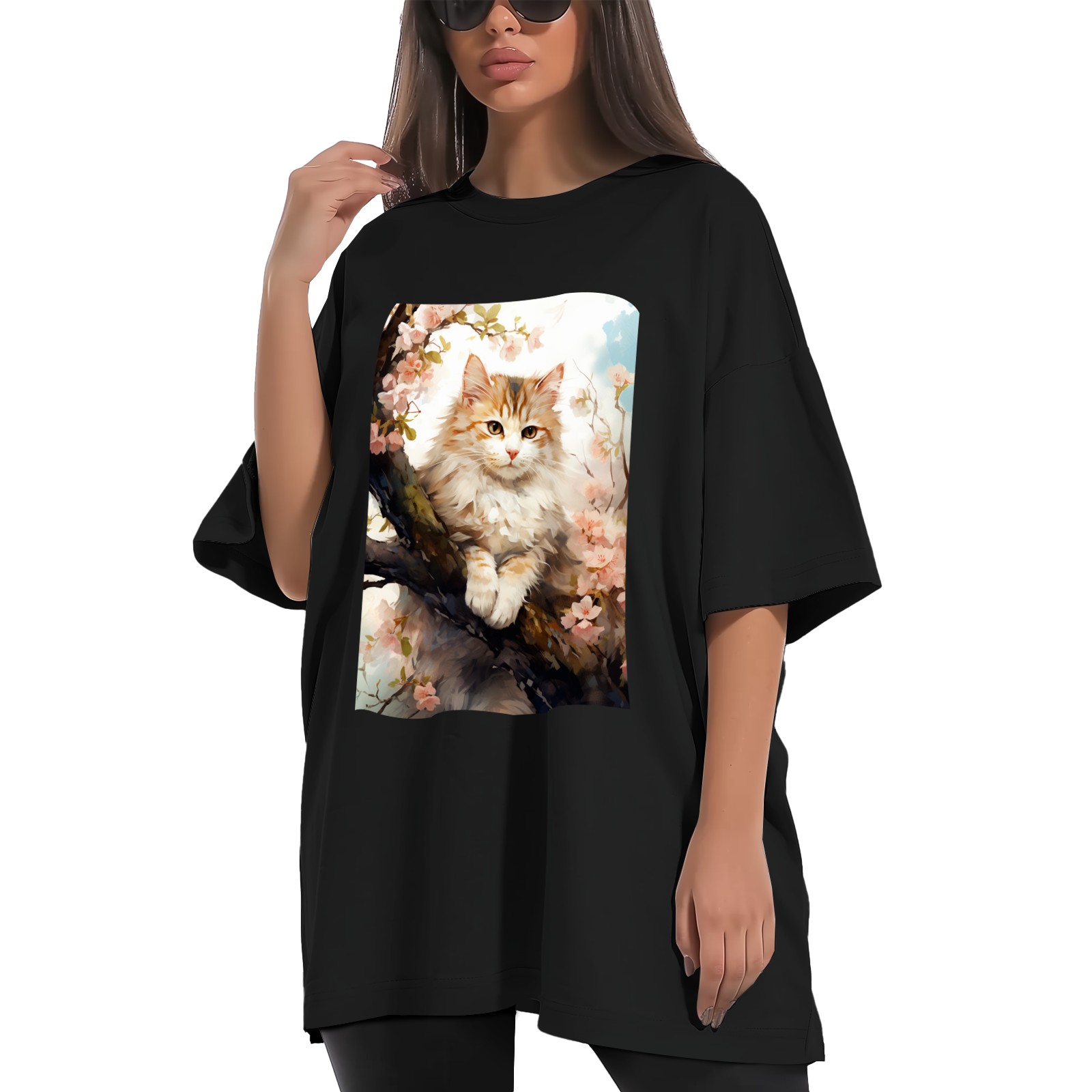 Plus Size Shirt for Women Black Tops for Women Short Sleeves Shirt for Women Cats 43 T Shirt Crewneck Shirt for Women XS