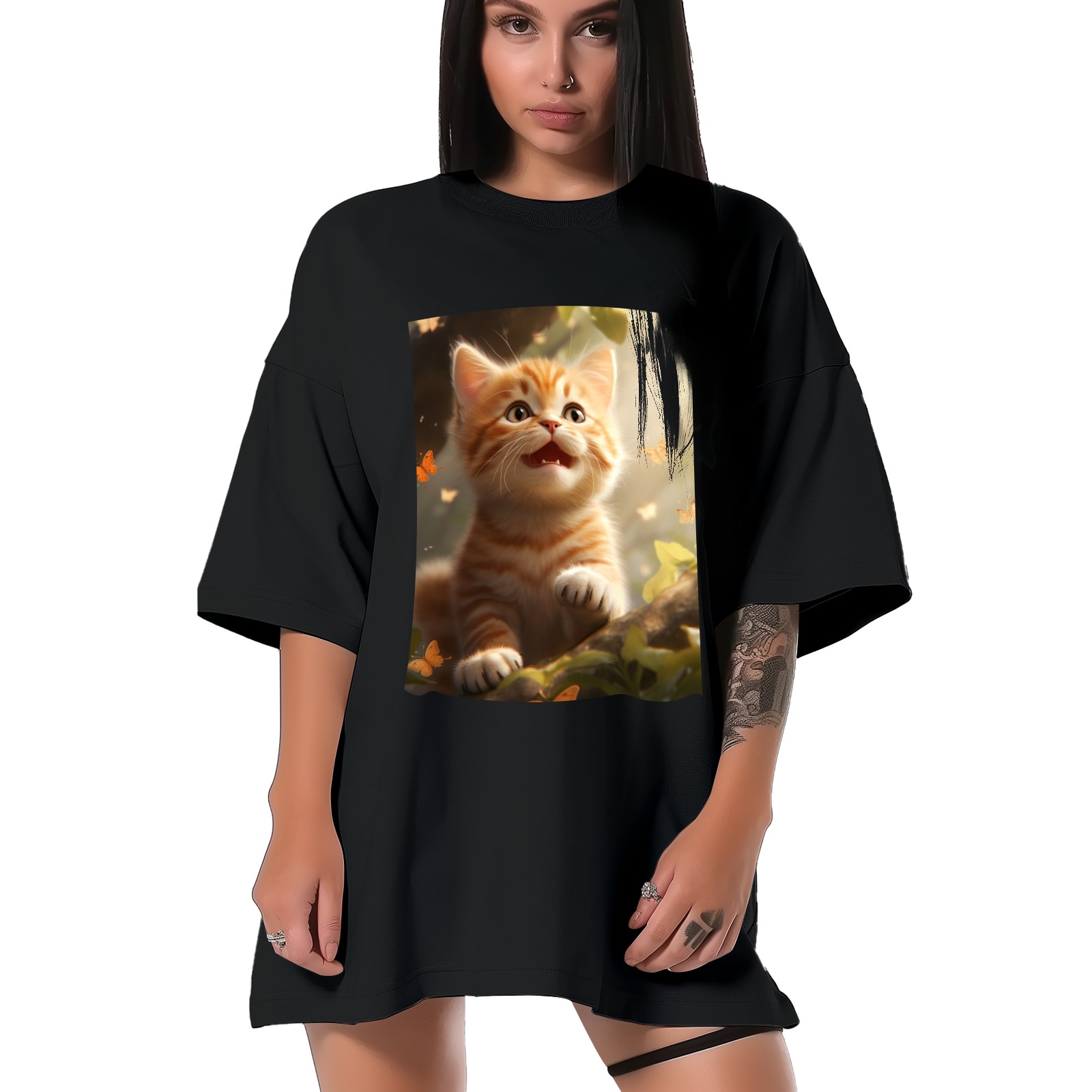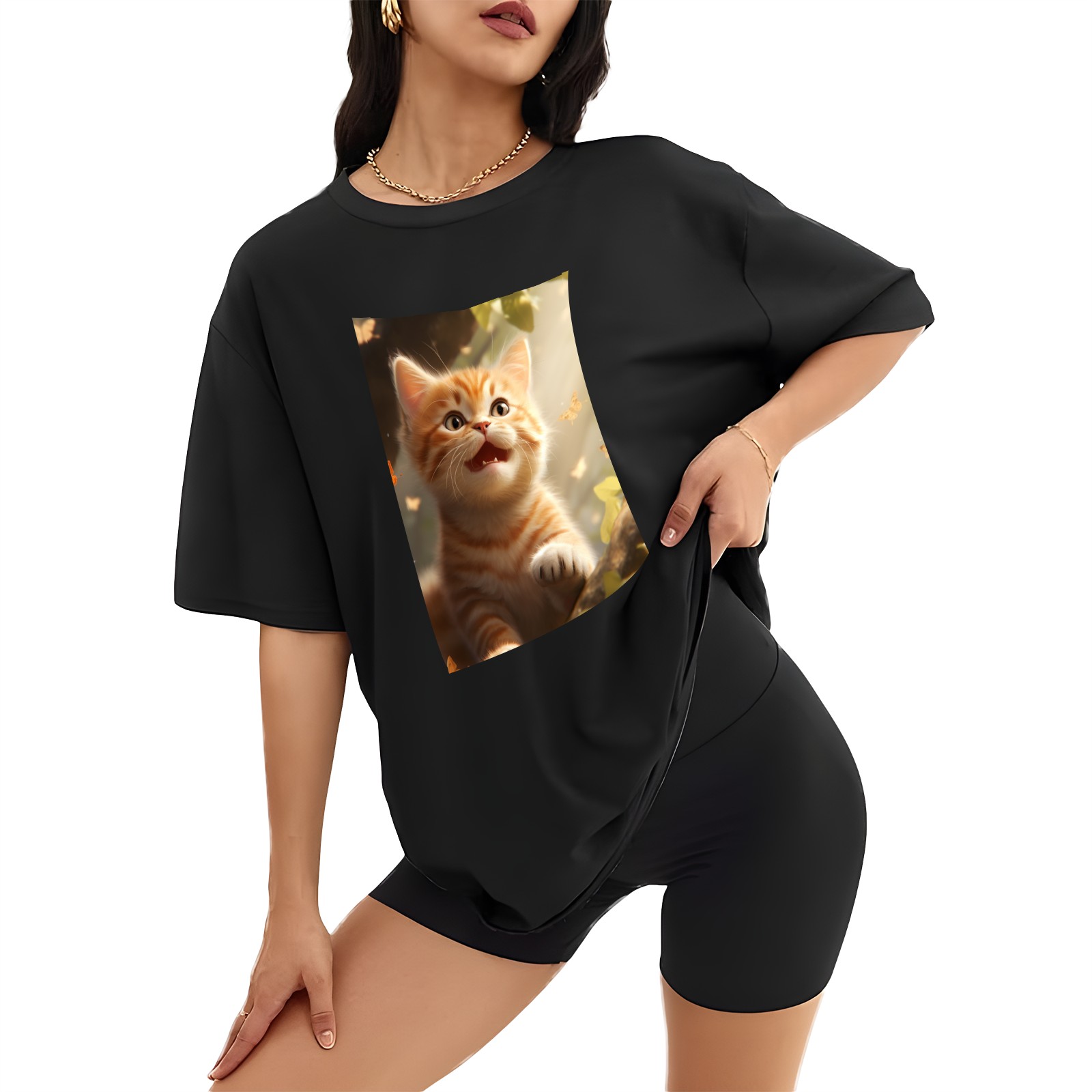 Plus Size Shirt for Women Black Tops for Women Short Sleeves Shirt for Women Cats 42 T Shirt Crewneck Shirt for Women XS