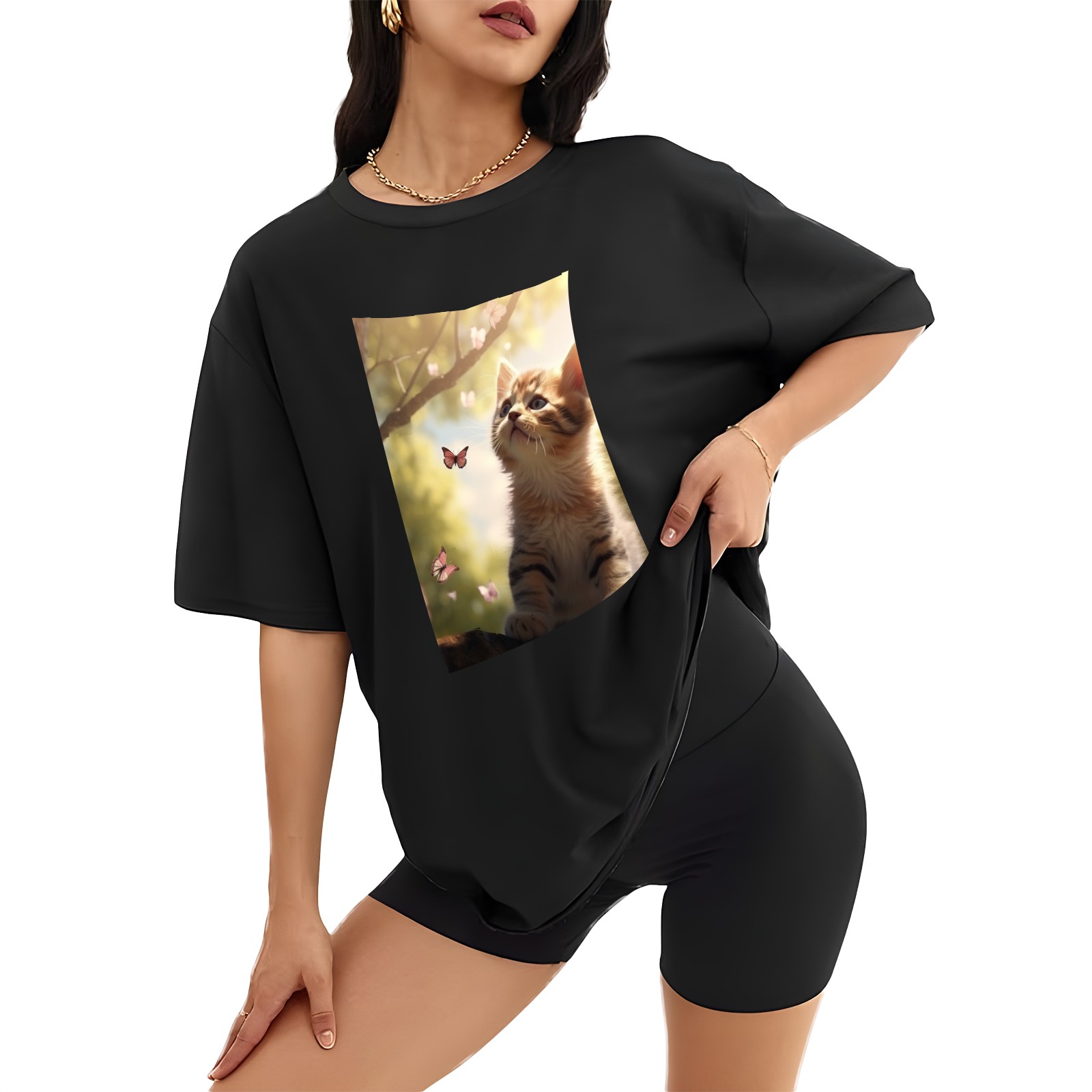 Plus Size Shirt for Women Black Tops for Women Short Sleeves Shirt for Women Cats 40 T Shirt Crewneck Shirt for Women XS