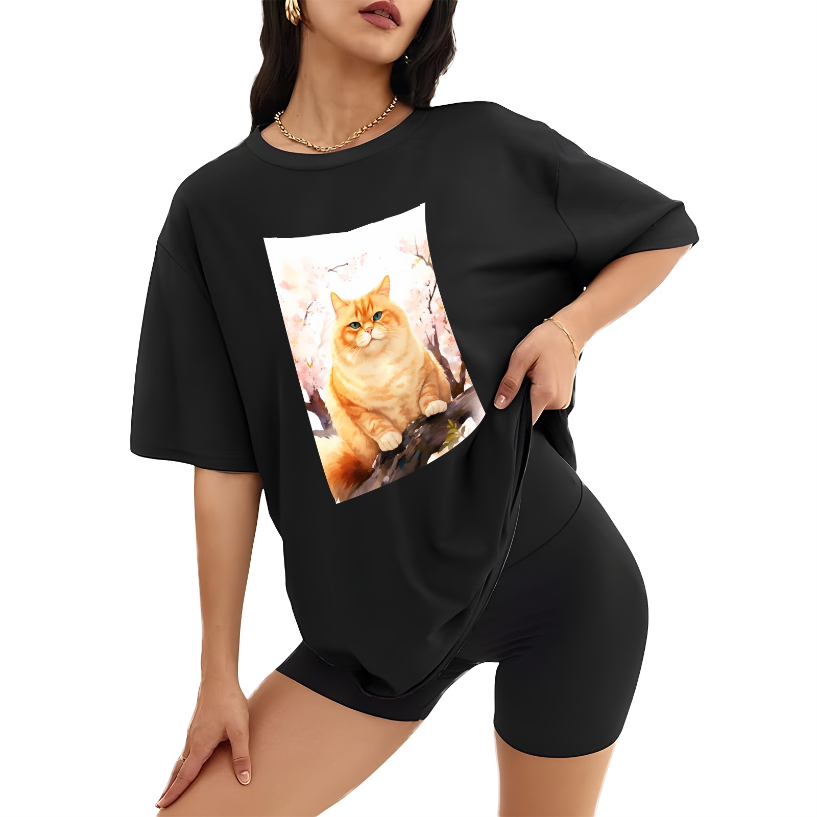 Plus Size Shirt for Women Black Tops for Women Short Sleeves Shirt for Women Cats 38 T Shirt Crewneck Shirt for Women XS