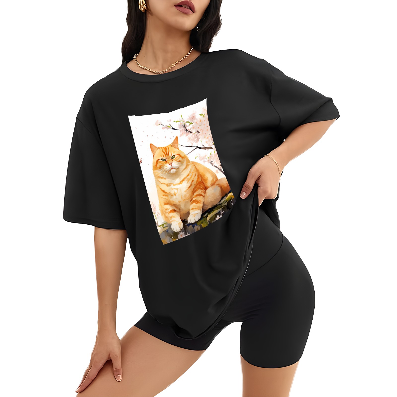 Plus Size Shirt for Women Black Tops for Women Short Sleeves Shirt for Women Cats 35 T Shirt Crewneck Shirt for Women XS
