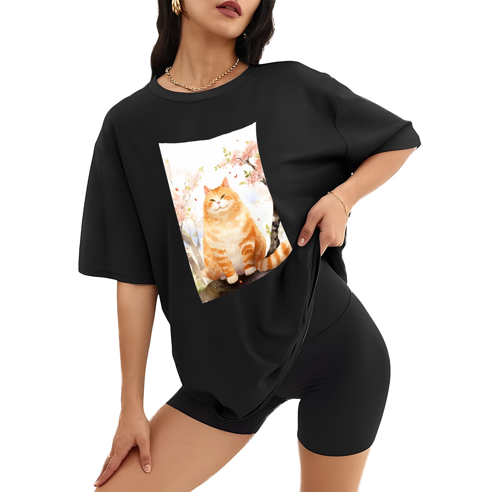 Plus Size Shirt for Women Black Tops for Women Short Sleeves Shirt for Women Cats 36 T Shirt Crewneck Shirt for Women XS