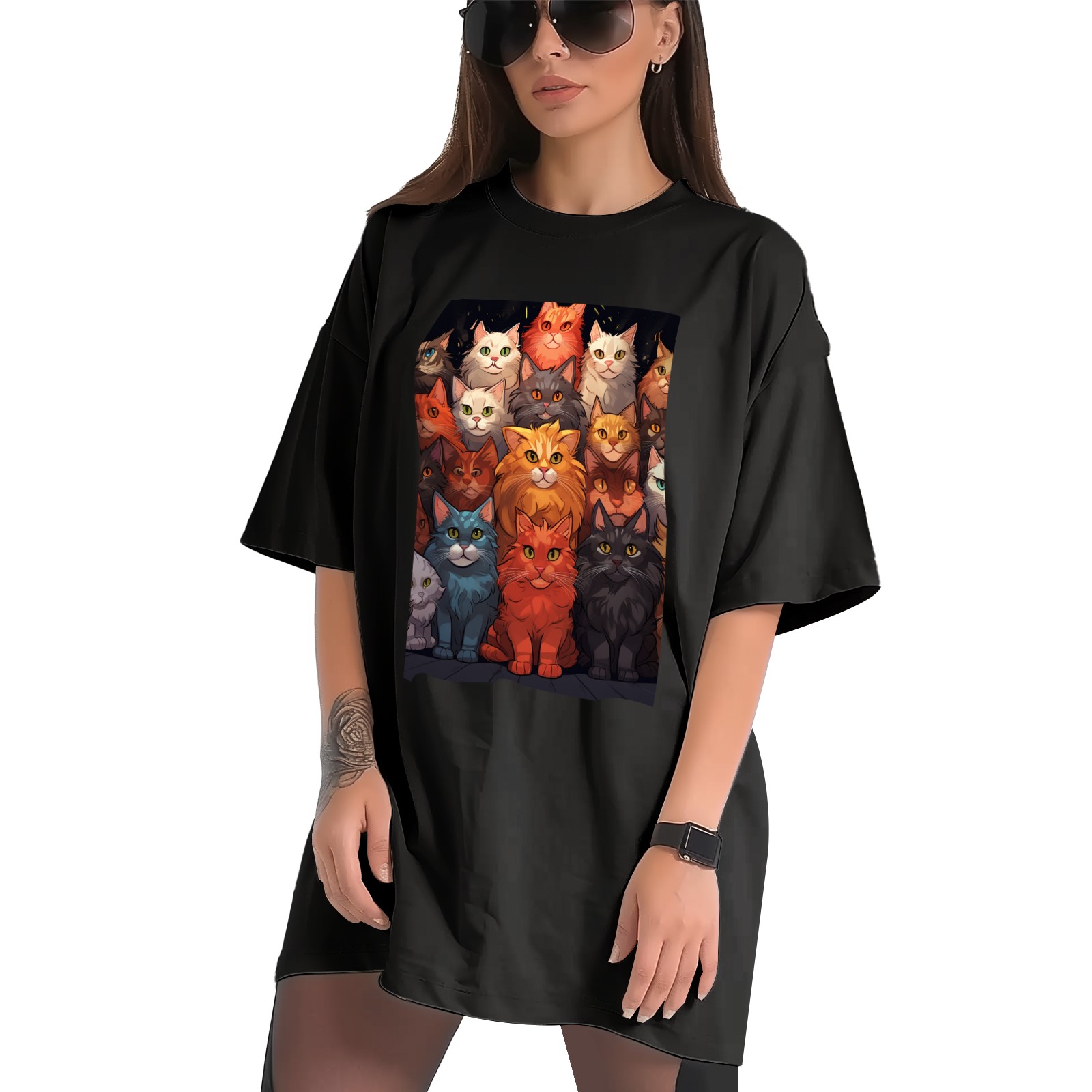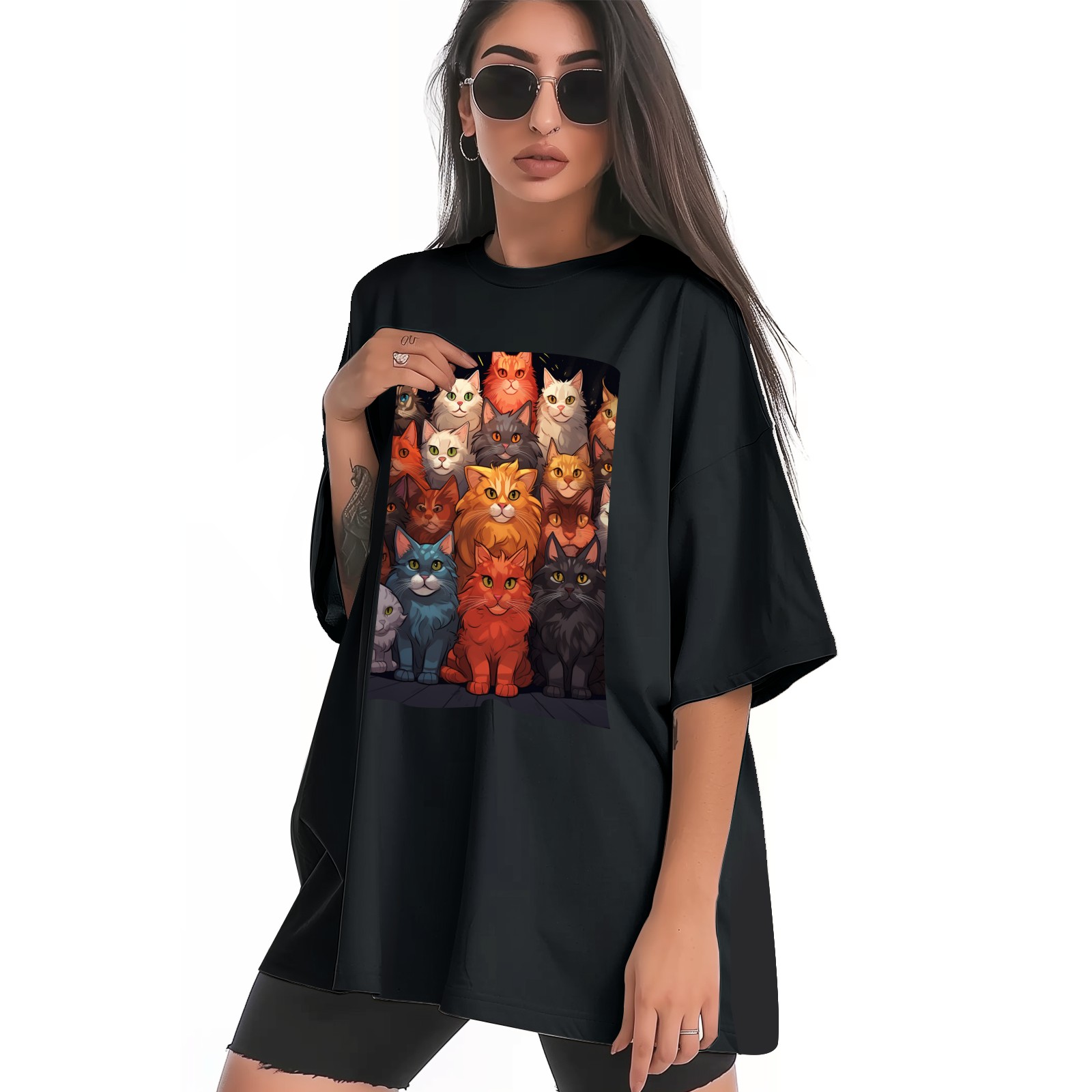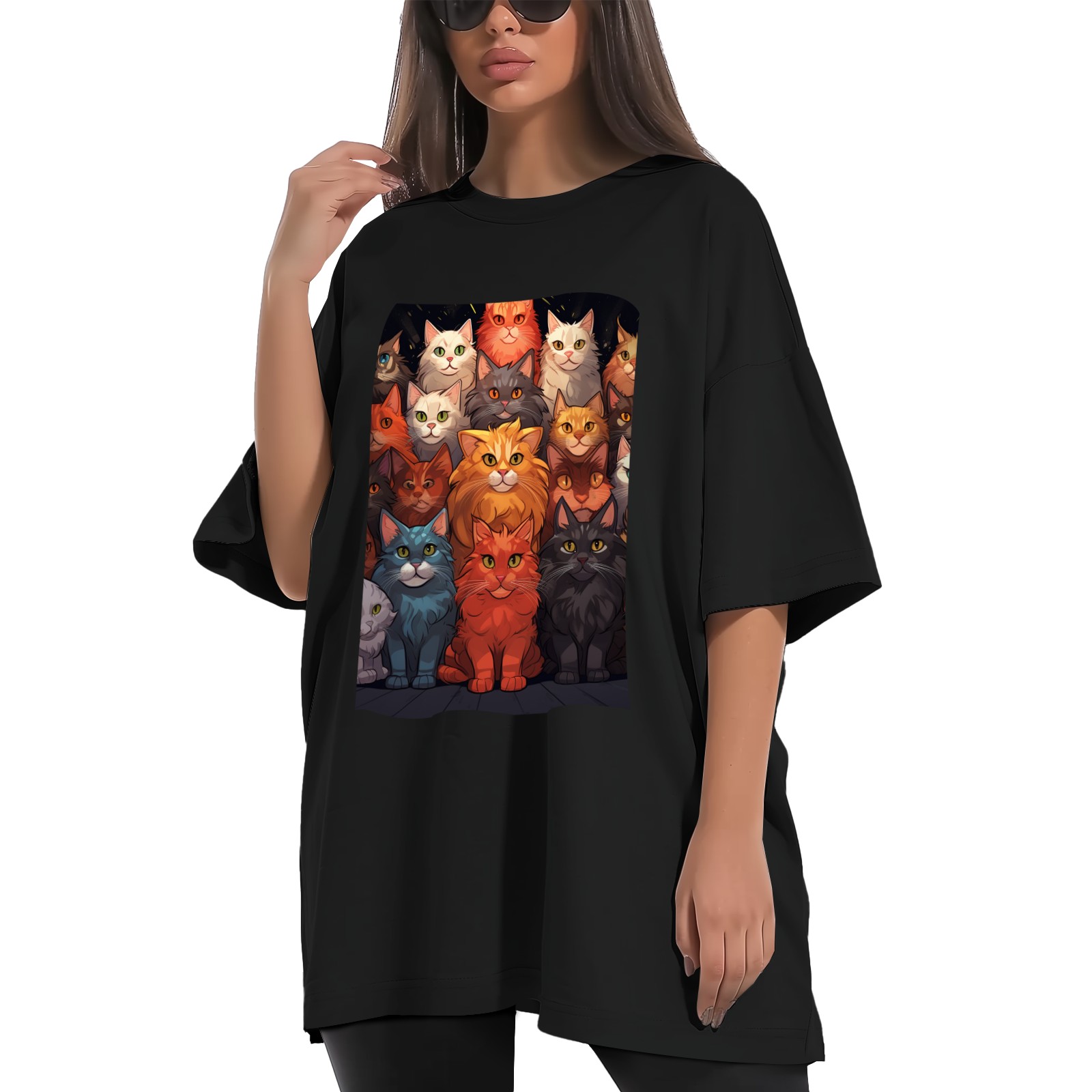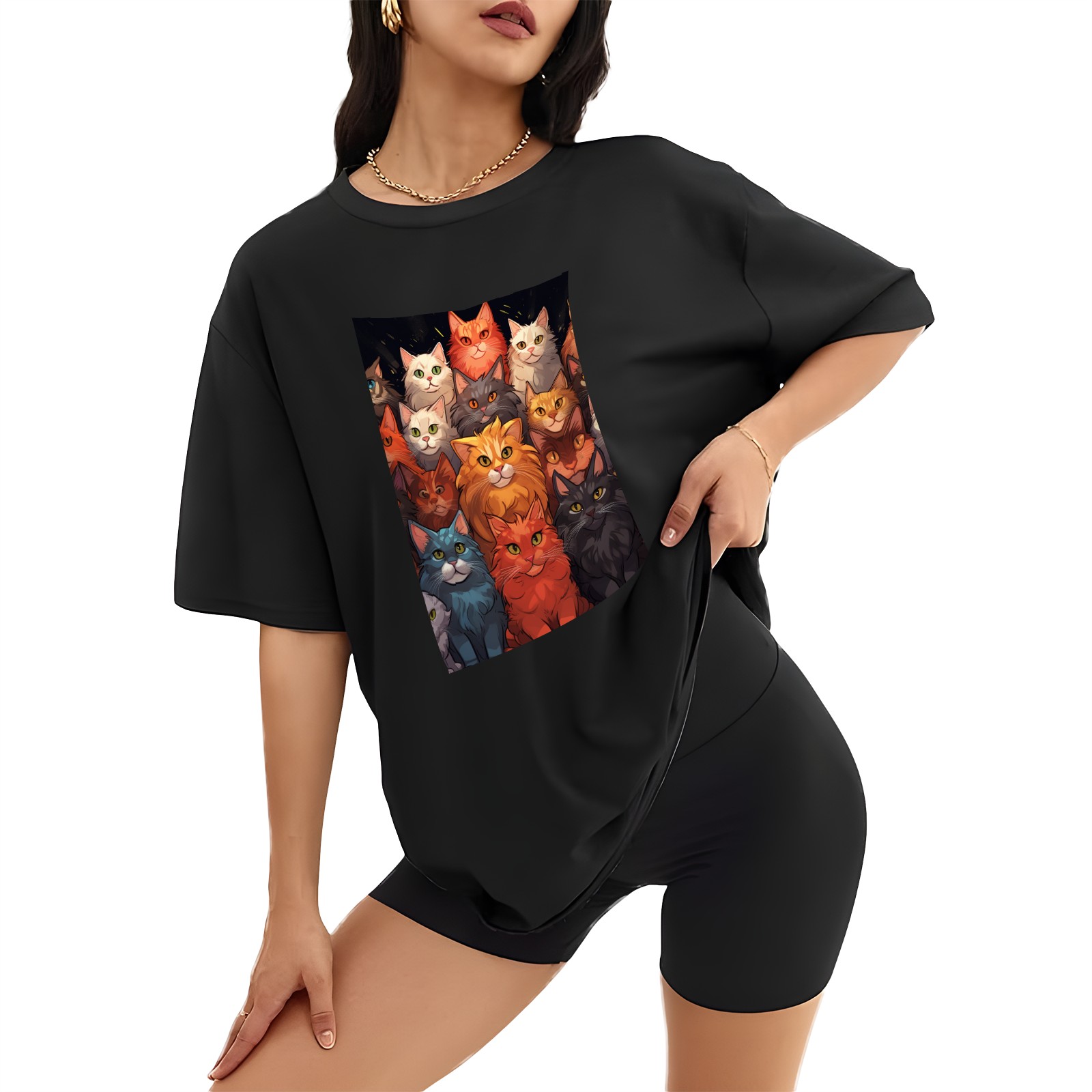 Plus Size Shirt for Women Black Tops for Women Short Sleeves Shirt for Women Cats 34 T Shirt Crewneck Shirt for Women XS