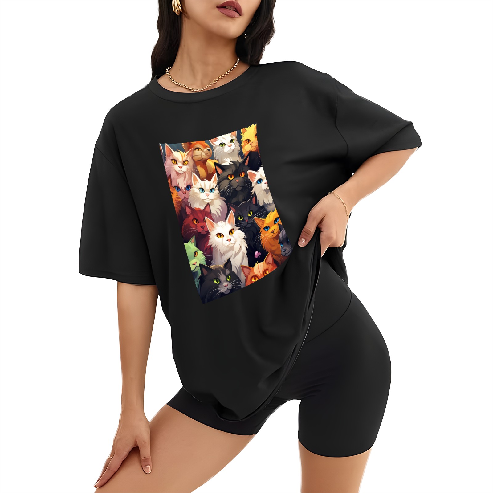 Plus Size Shirt for Women Black Tops for Women Short Sleeves Shirt for Women Cats 32 T Shirt Crewneck Shirt for Women XS