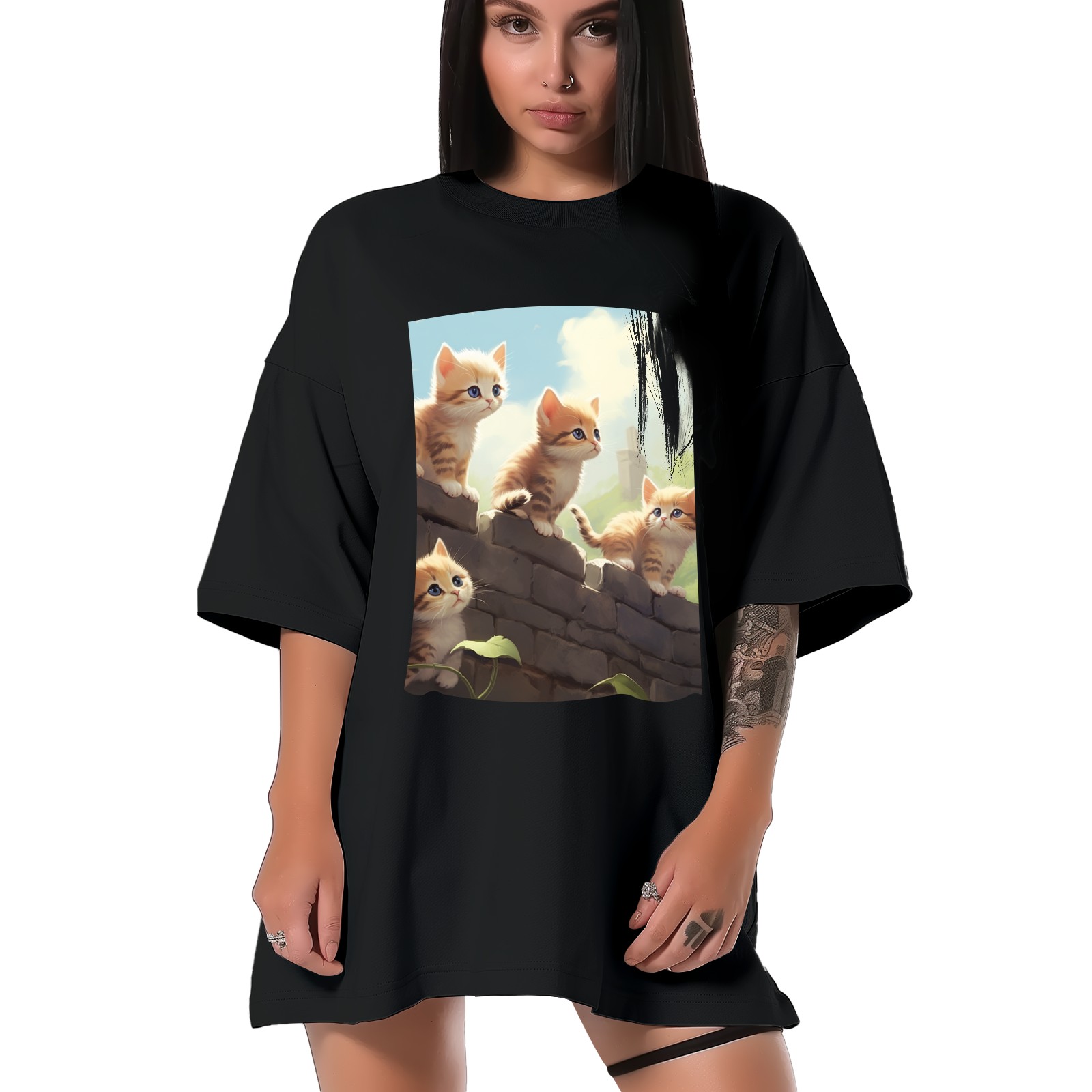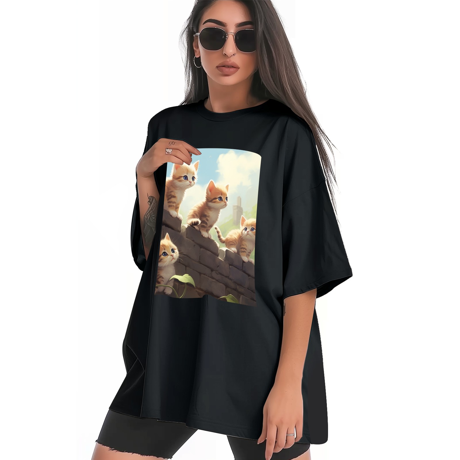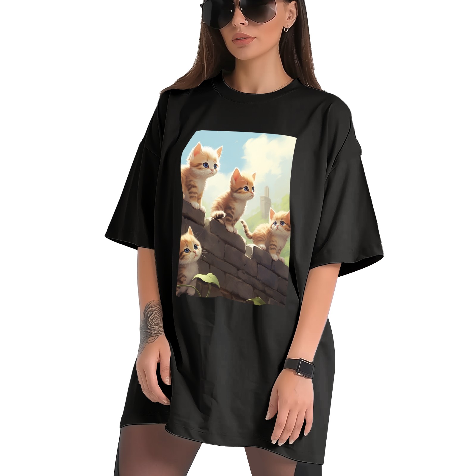 Plus Size Shirt for Women Black Tops for Women Short Sleeves Shirt for Women Cats 28 T Shirt Crewneck Shirt for Women XS