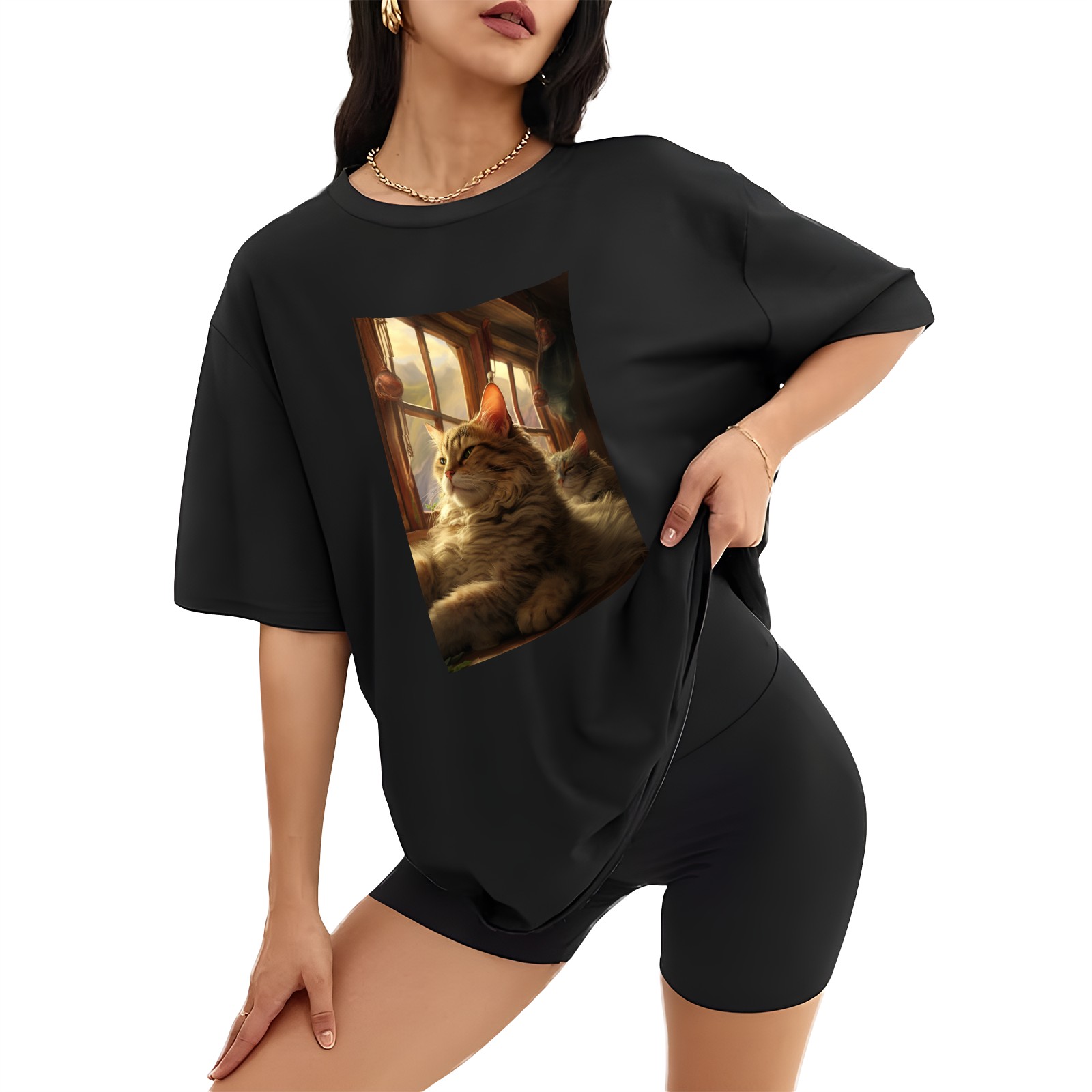 Plus Size Shirt for Women Black Tops for Women Short Sleeves Shirt for Women Cats 27 T Shirt Crewneck Shirt for Women XS