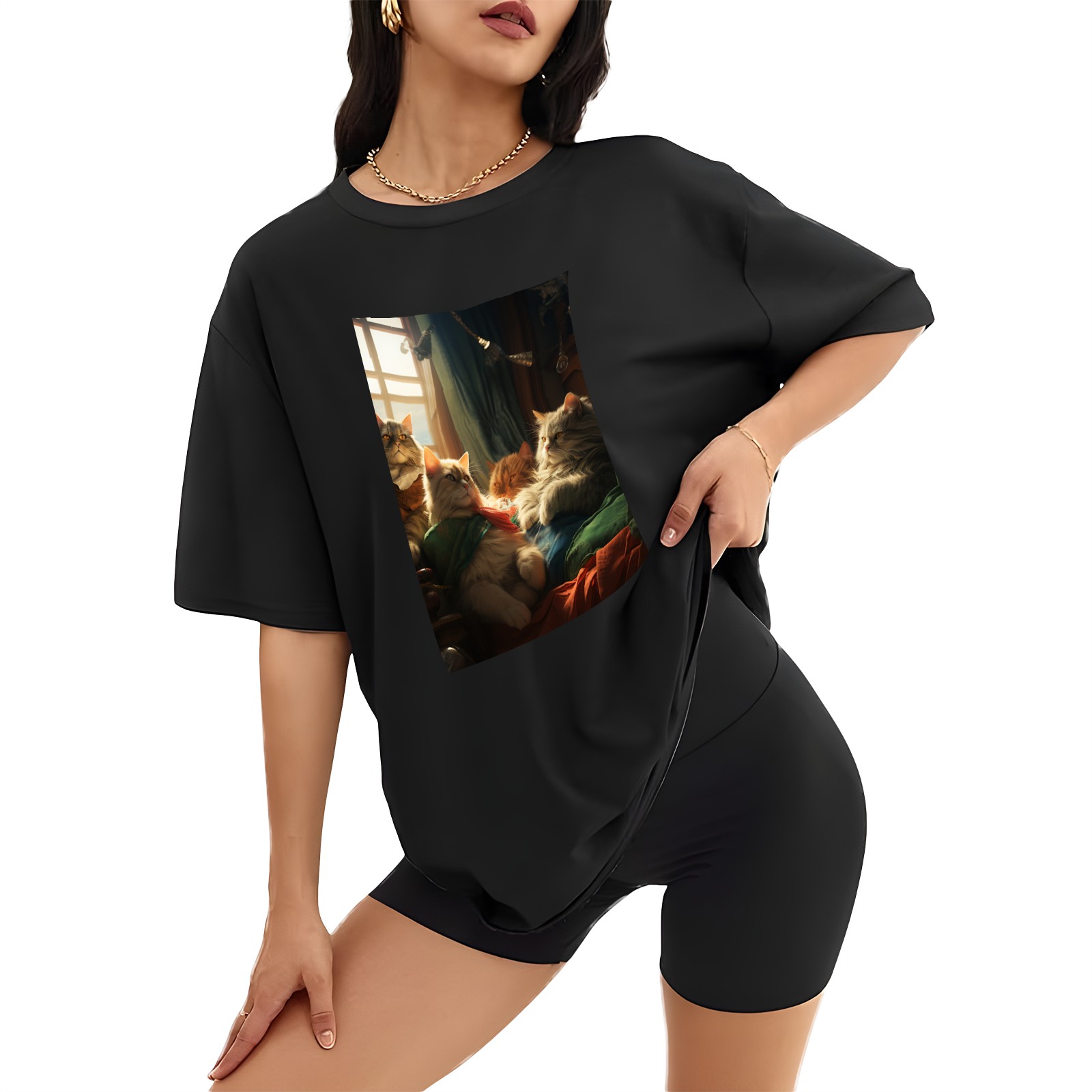 Plus Size Shirt for Women Black Tops for Women Short Sleeves Shirt for Women Cats 26 T Shirt Crewneck Shirt for Women XS