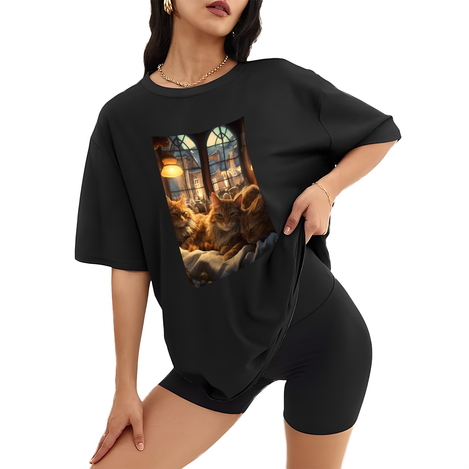 Plus Size Shirt for Women Black Tops for Women Short Sleeves Shirt for Women Cats 24 T Shirt Crewneck Shirt for Women XS