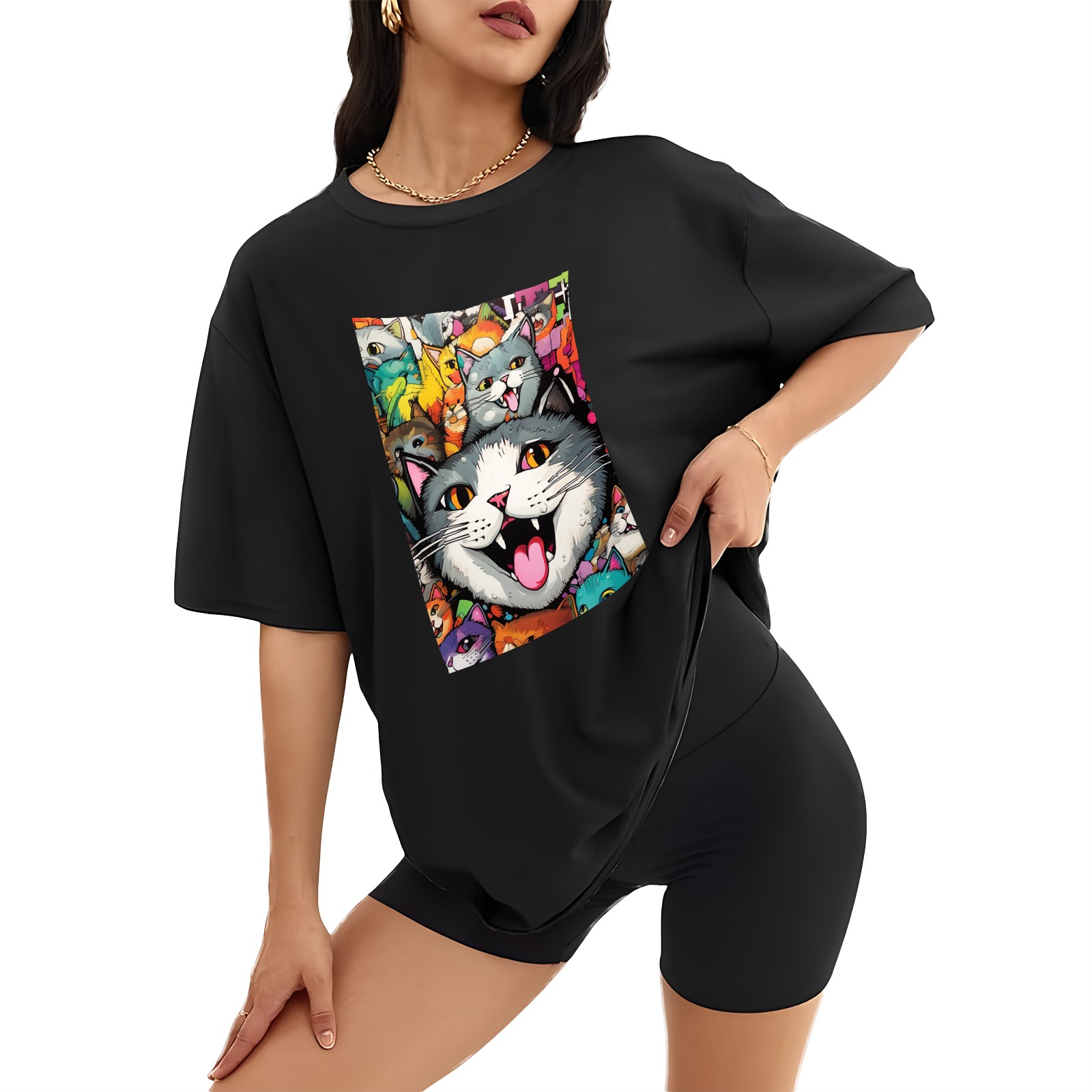 Plus Size Shirt for Women Black Tops for Women Short Sleeves Shirt for Women Cats 23 T Shirt Crewneck Shirt for Women XS