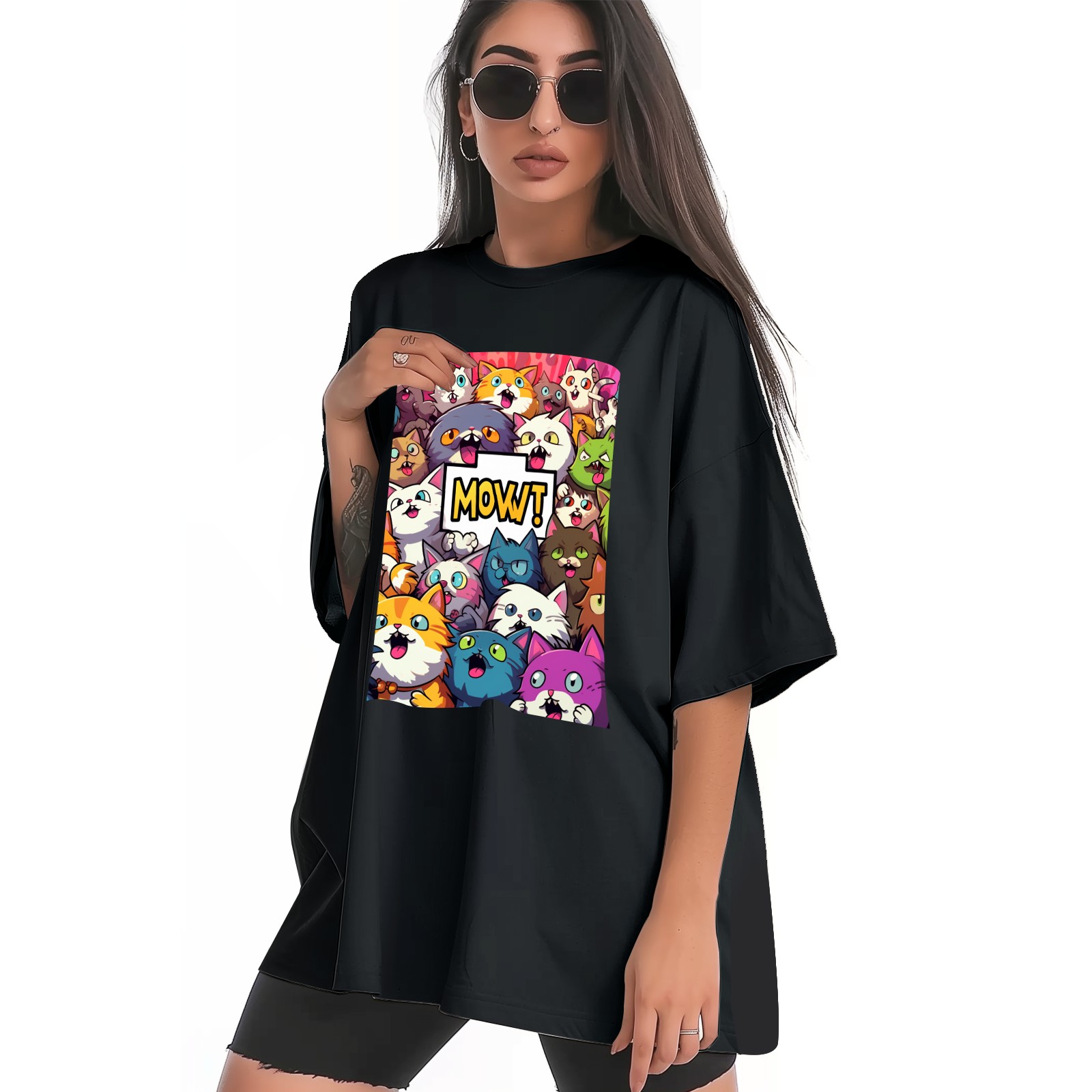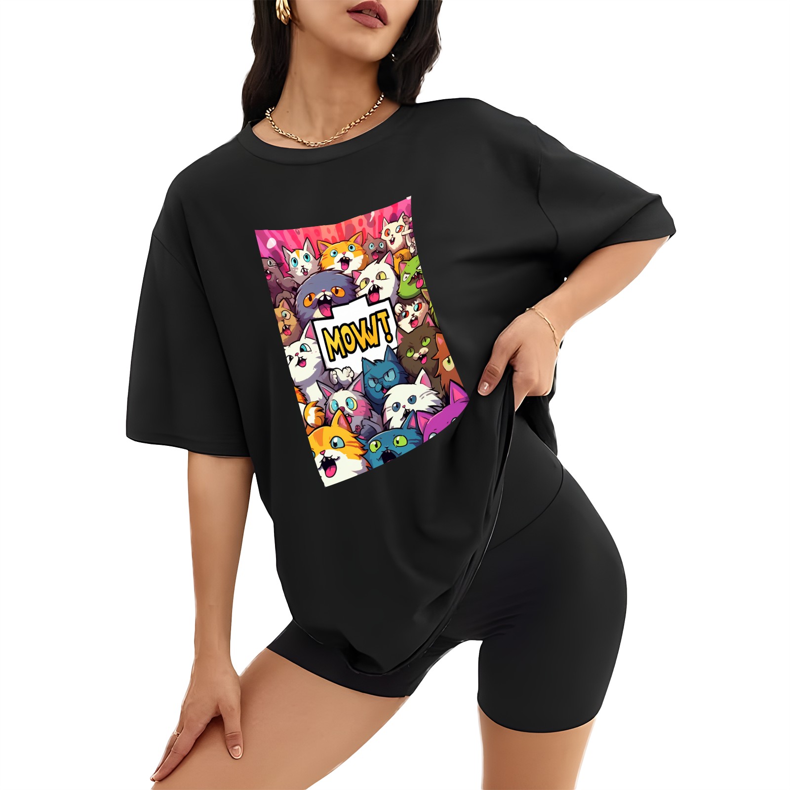 Plus Size Shirt for Women Black Tops for Women Short Sleeves Shirt for Women Cats 22 T Shirt Crewneck Shirt for Women XS