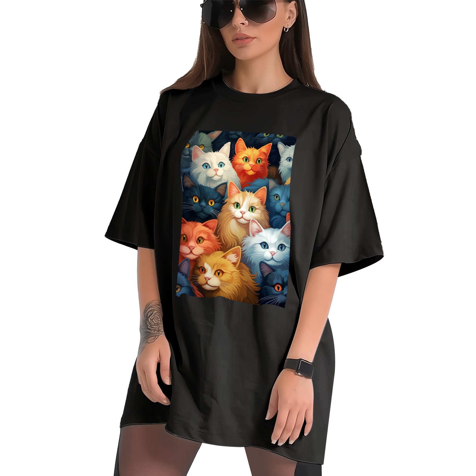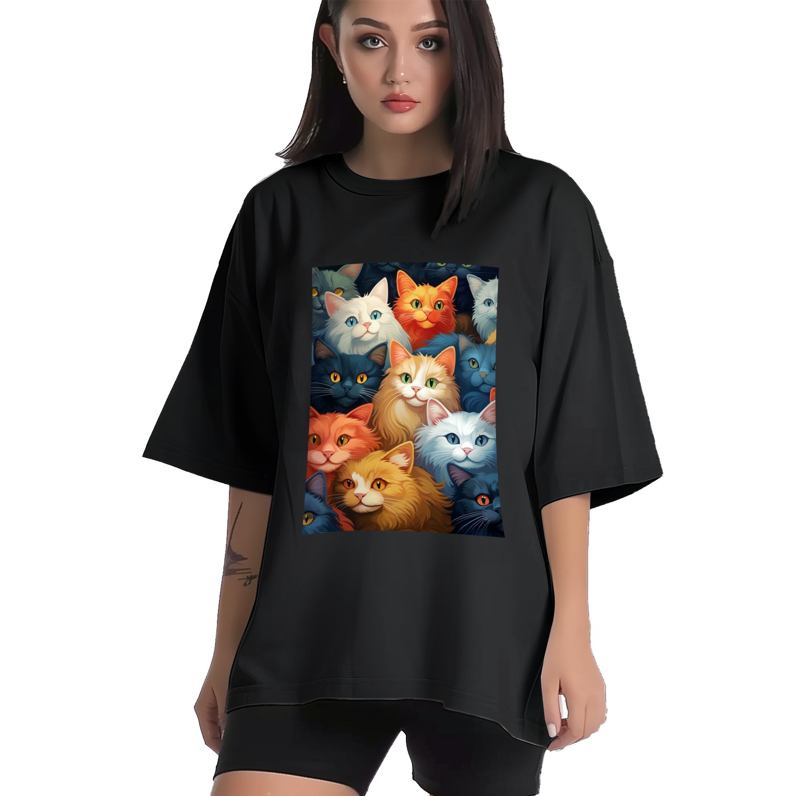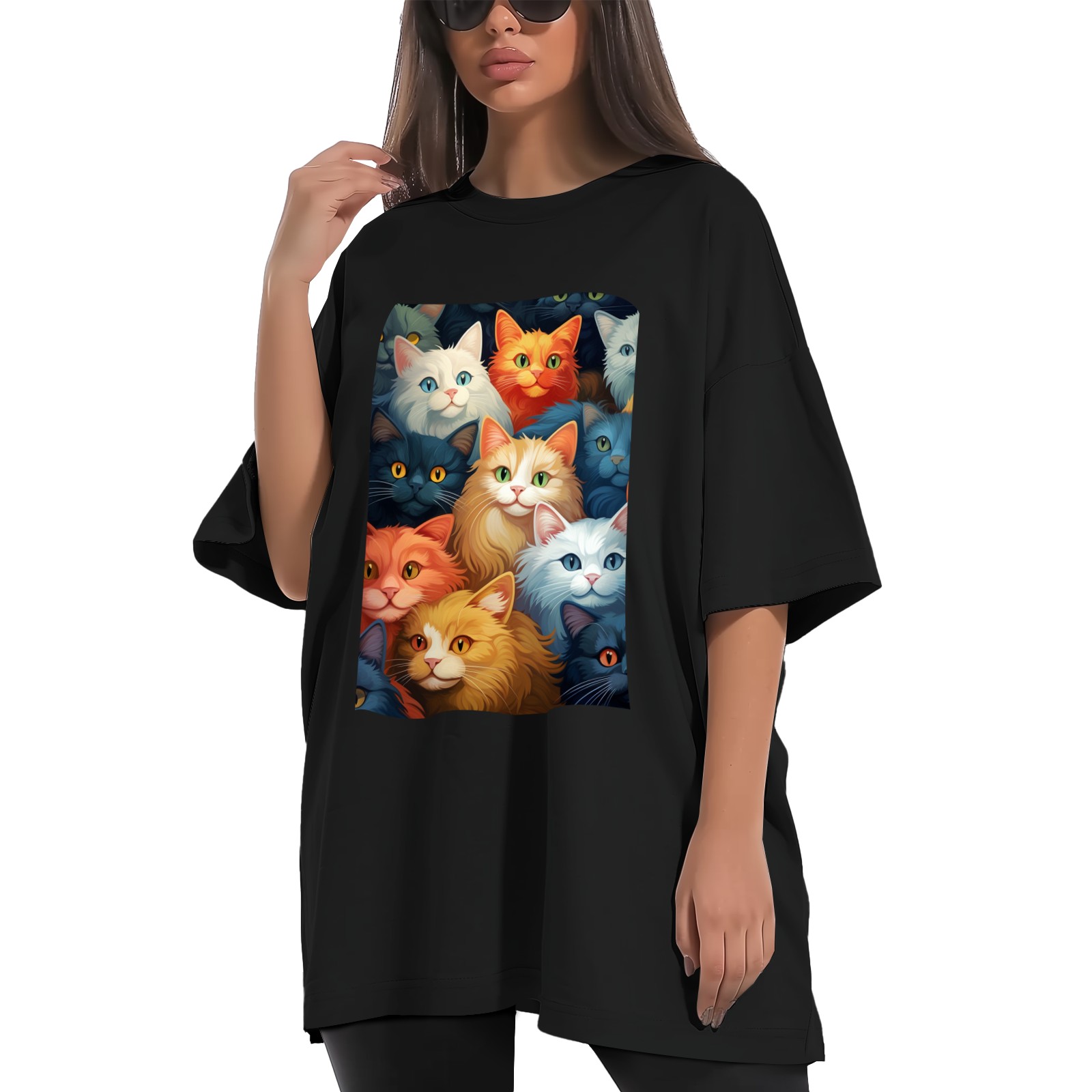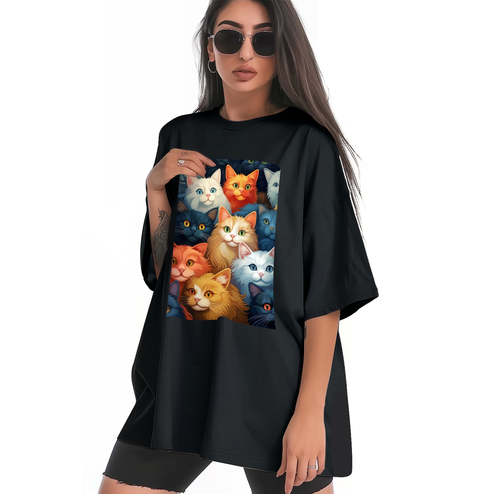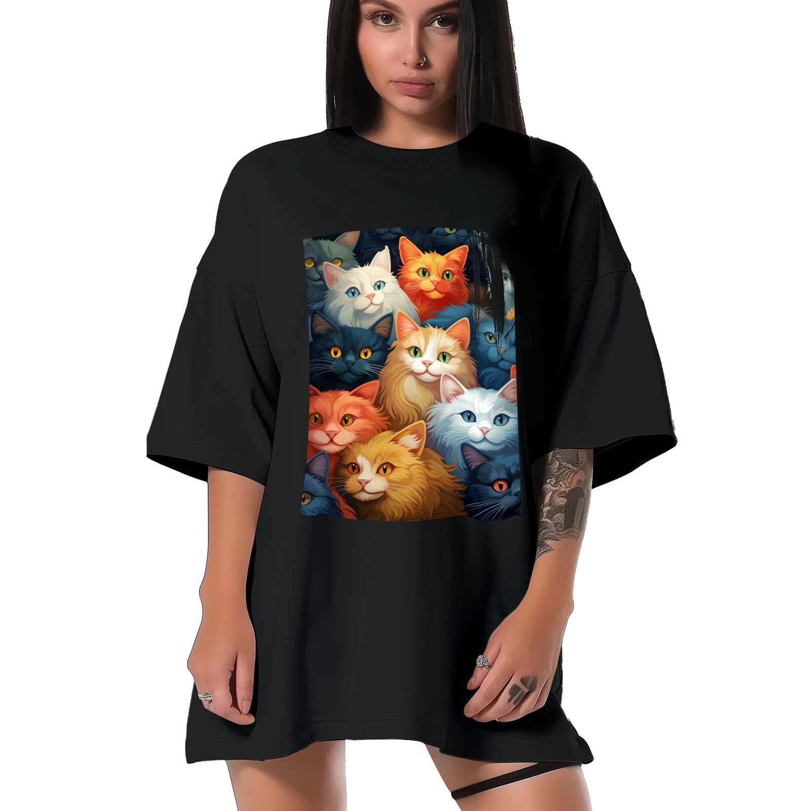 Plus Size Shirt for Women Black Tops for Women Short Sleeves Shirt for Women Cats 18 T Shirt Crewneck Shirt for Women XS