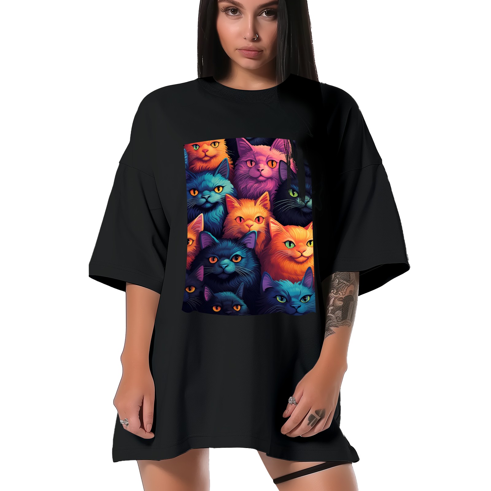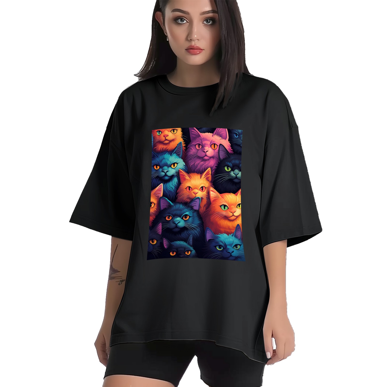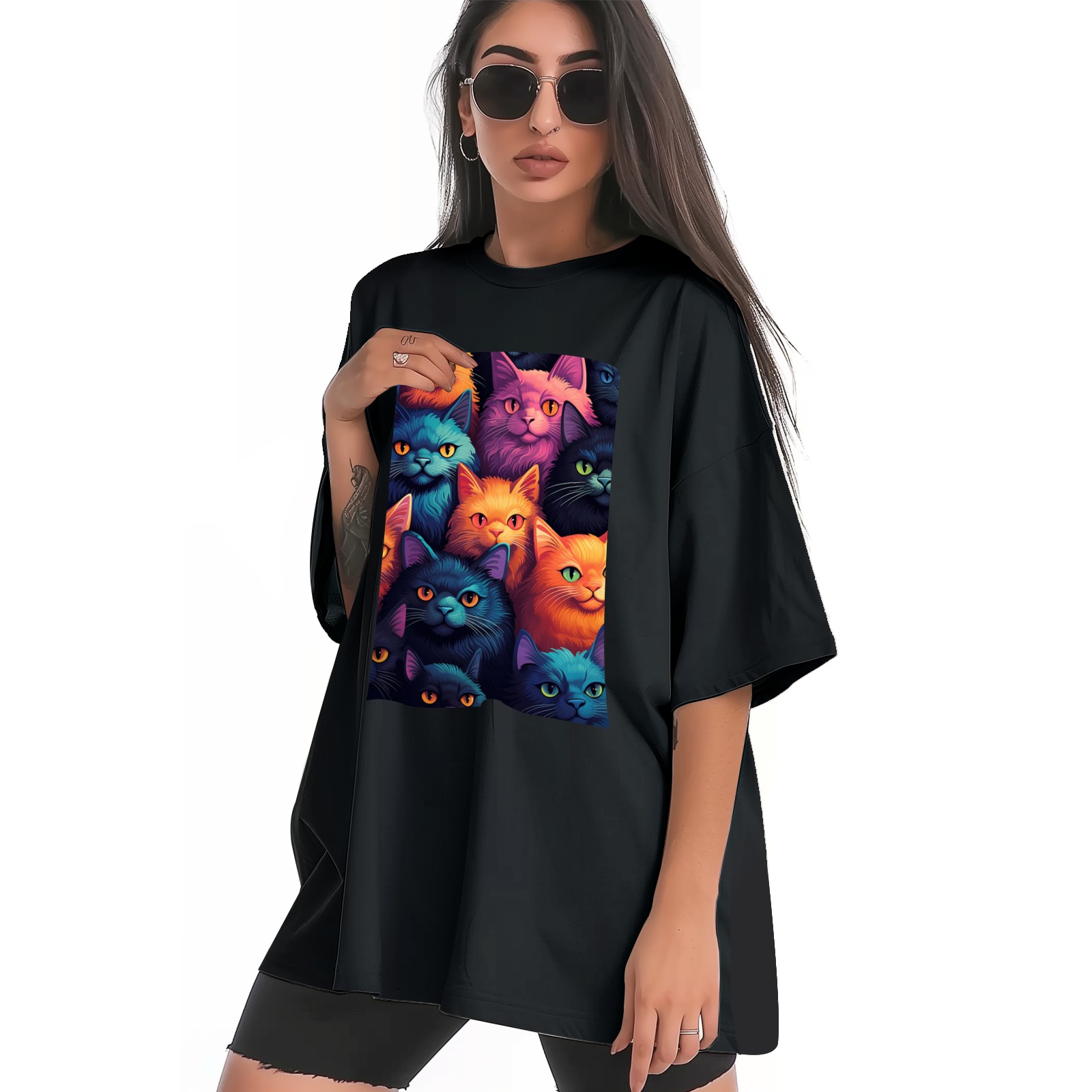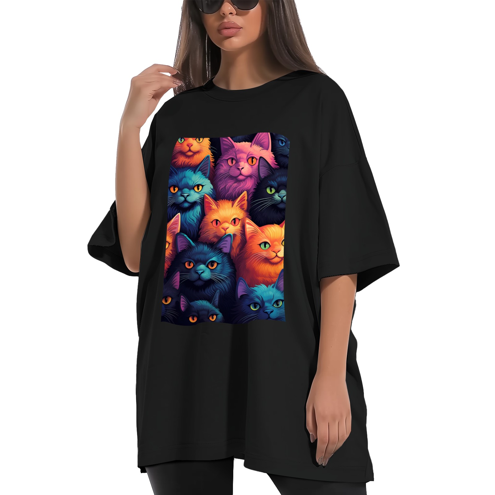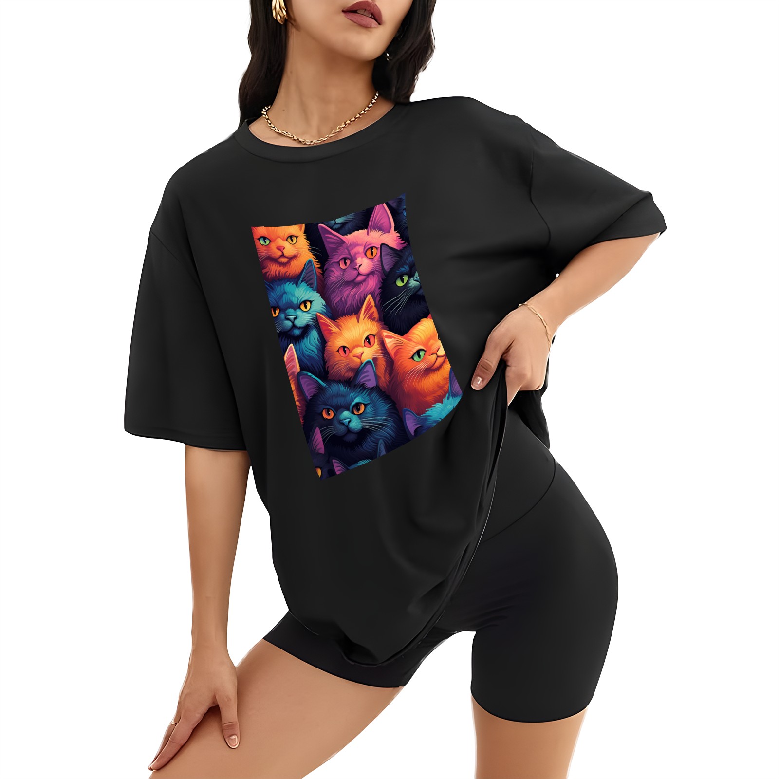 Plus Size Shirt for Women Black Tops for Women Short Sleeves Shirt for Women Cats 16 T Shirt Crewneck Shirt for Women XS