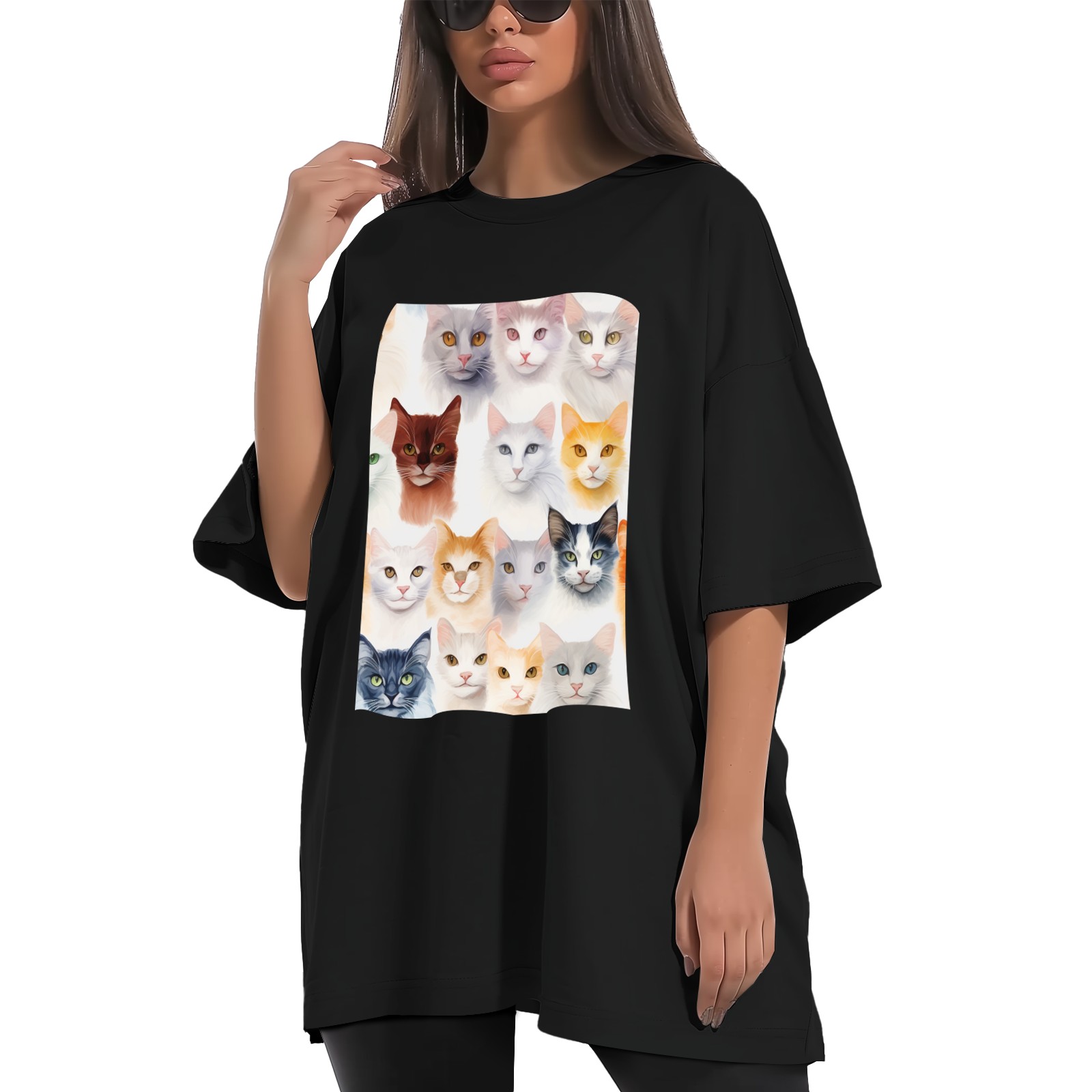 Plus Size Shirt for Women Black Tops for Women Short Sleeves Shirt for Women Cats 13 T Shirt Crewneck Shirt for Women XS