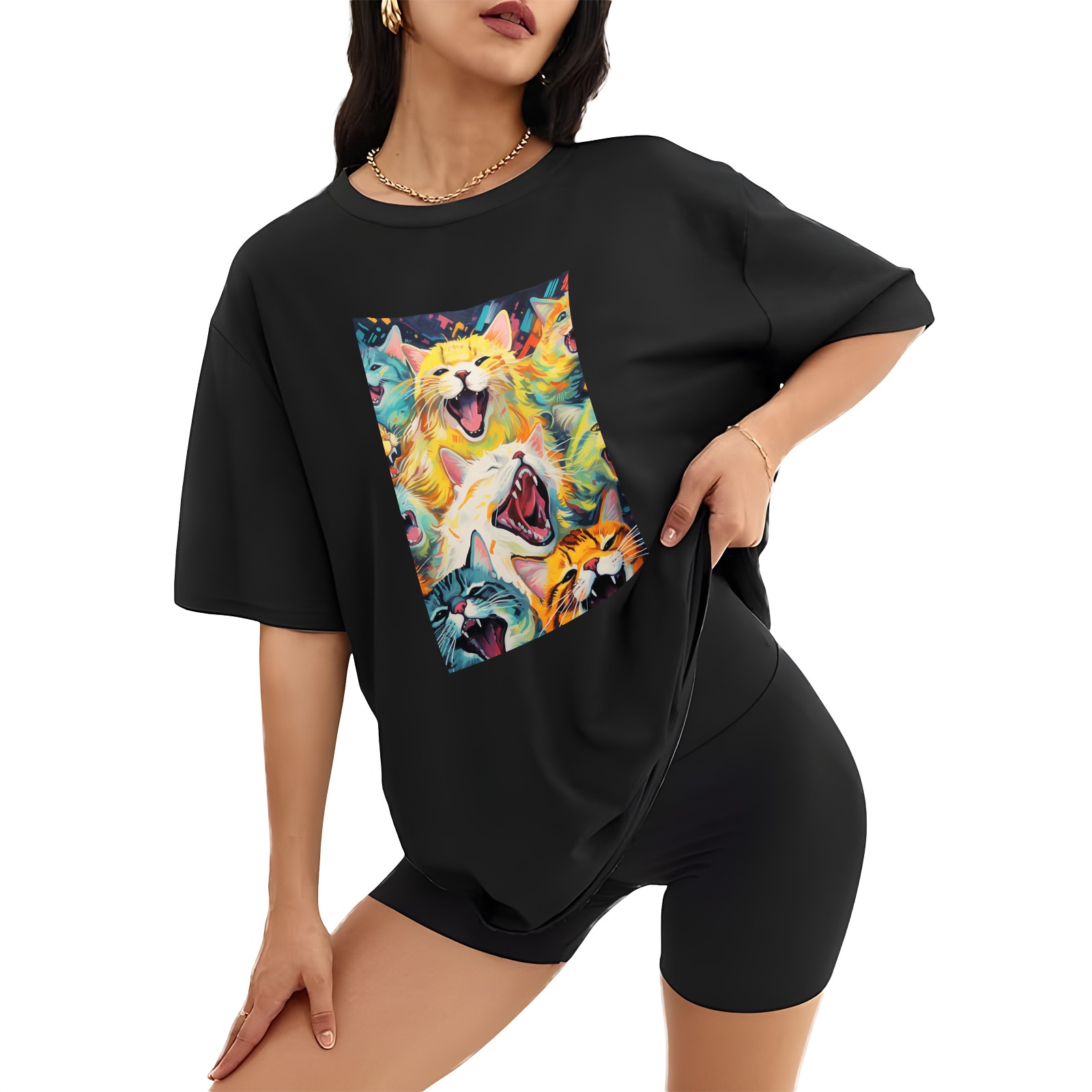 Plus Size Shirt for Women Black Tops for Women Short Sleeves Shirt for Women Cats 10 T Shirt Crewneck Shirt for Women XS