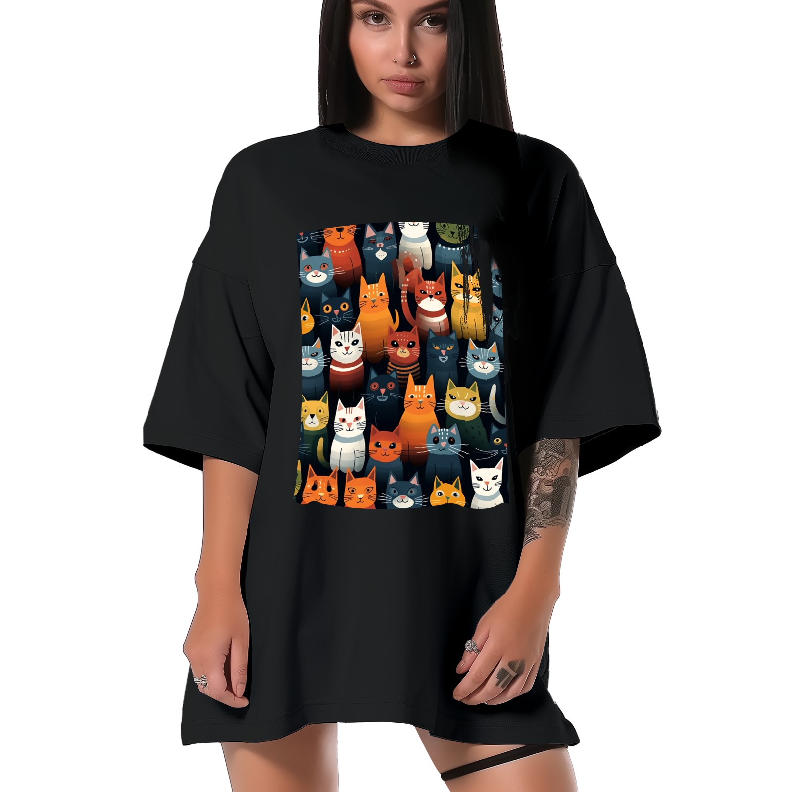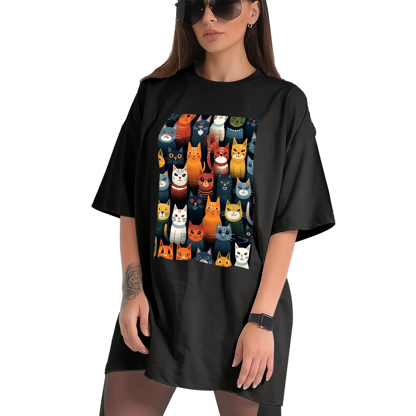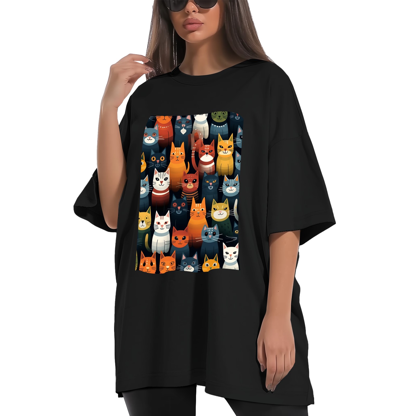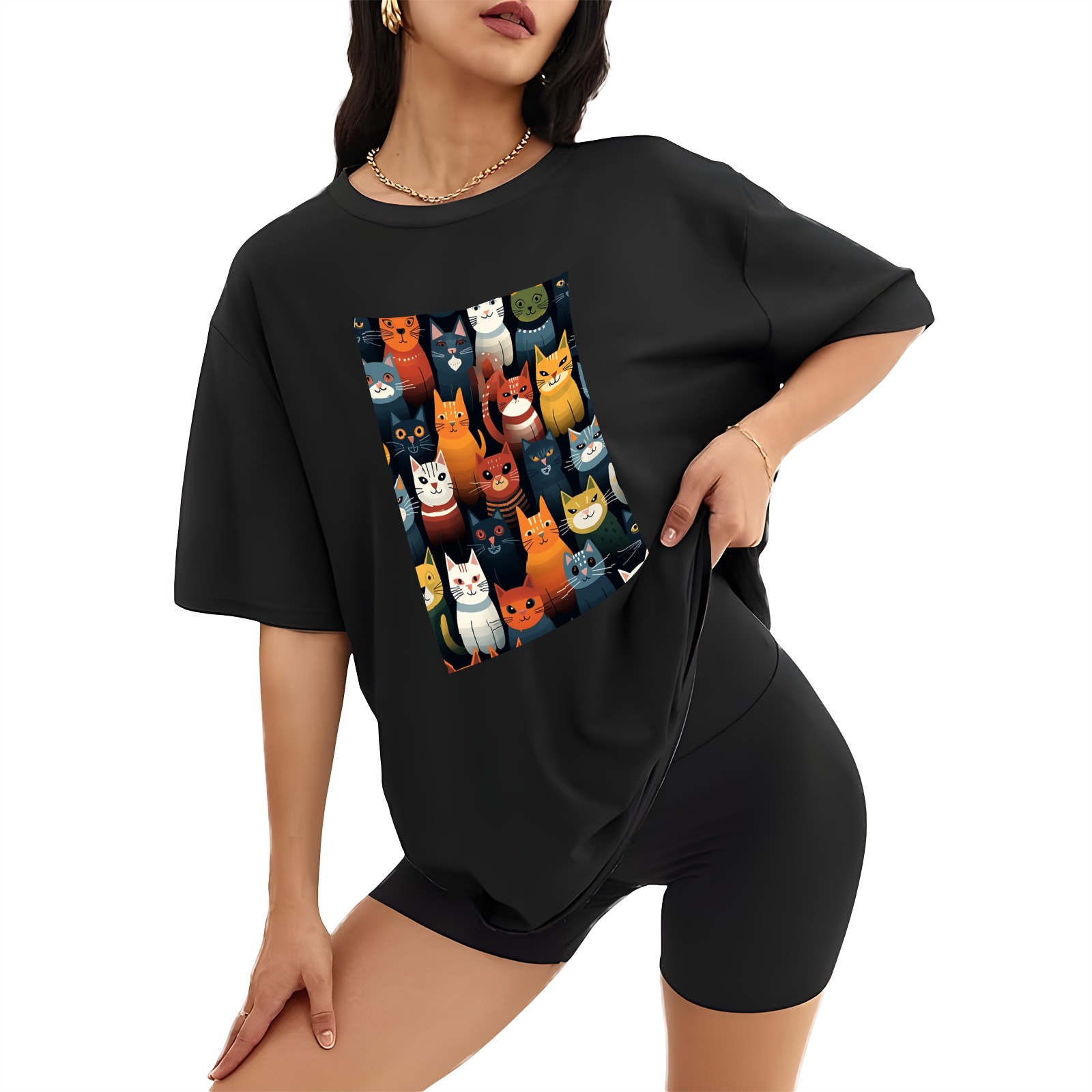 Plus Size Shirt for Women Black Tops for Women Short Sleeves Shirt for Women Cats 8 T Shirt Crewneck Shirt for Women XS