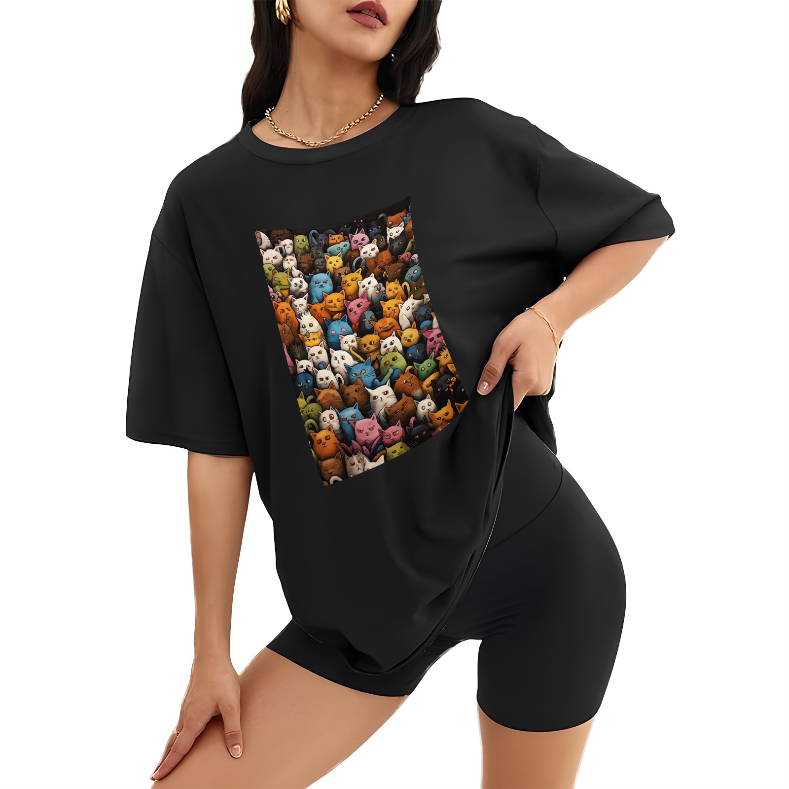 Plus Size Shirt for Women Black Tops for Women Short Sleeves Shirt for Women Cats 4 T Shirt Crewneck Shirt for Women XS