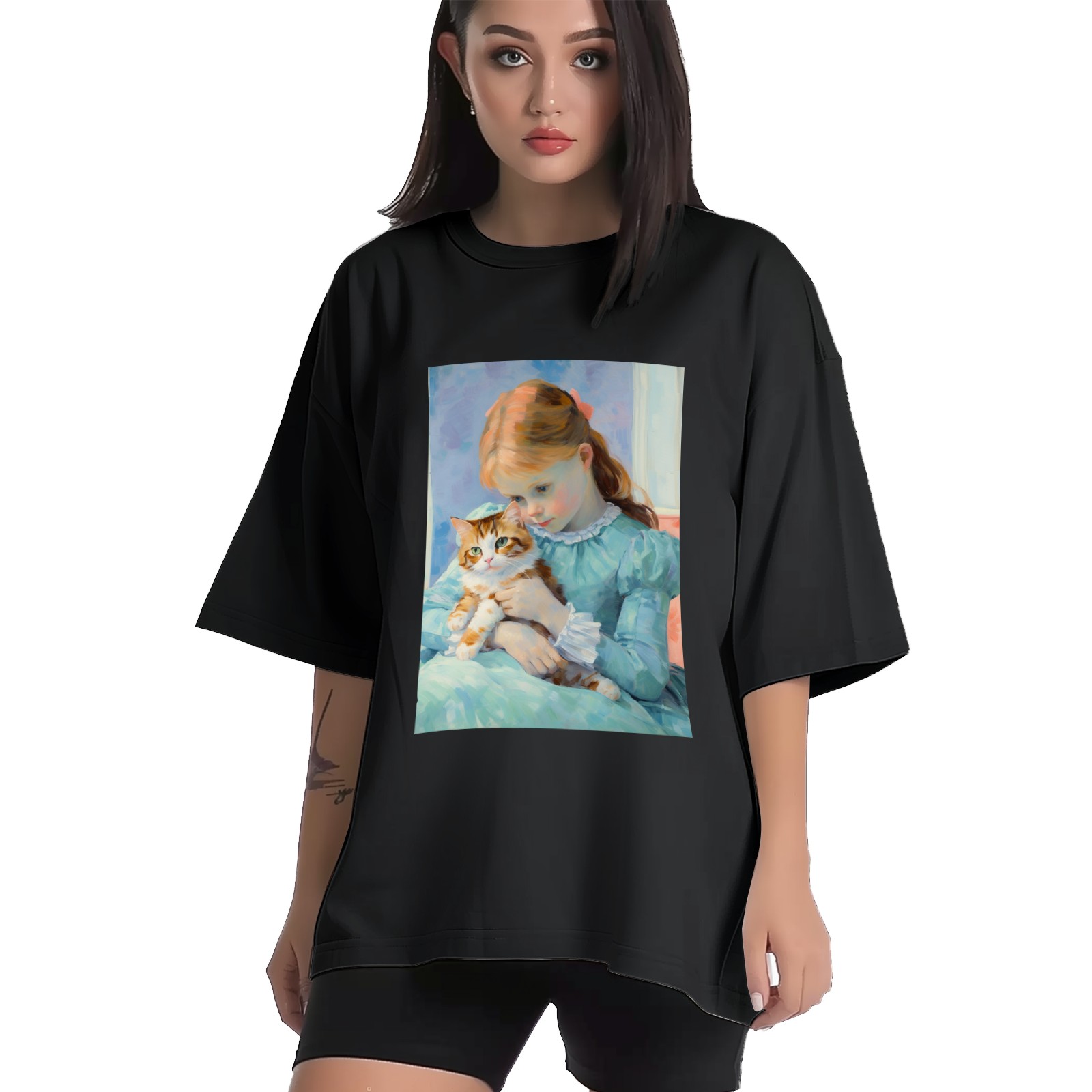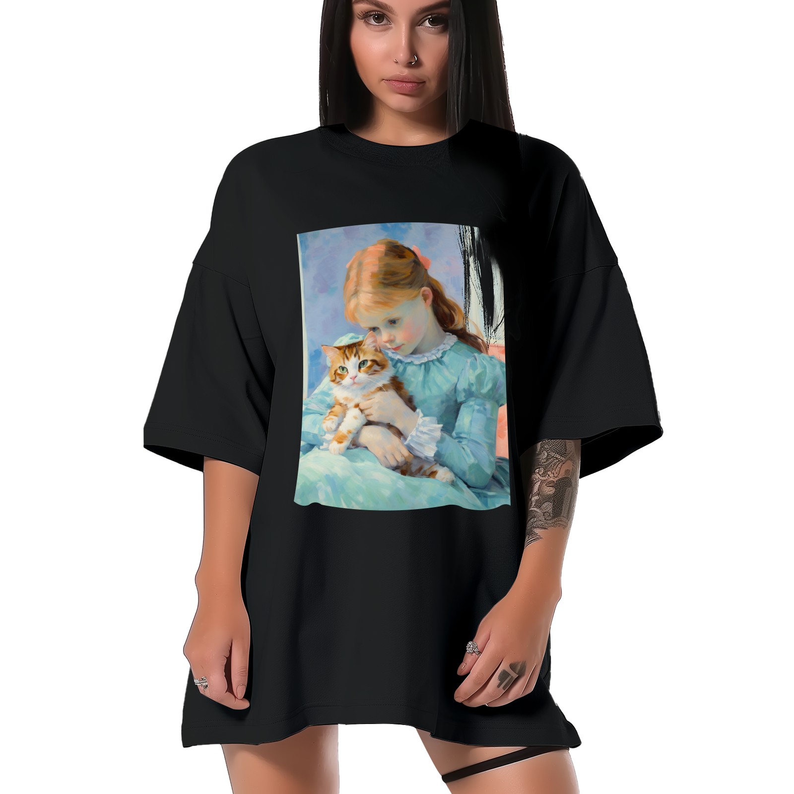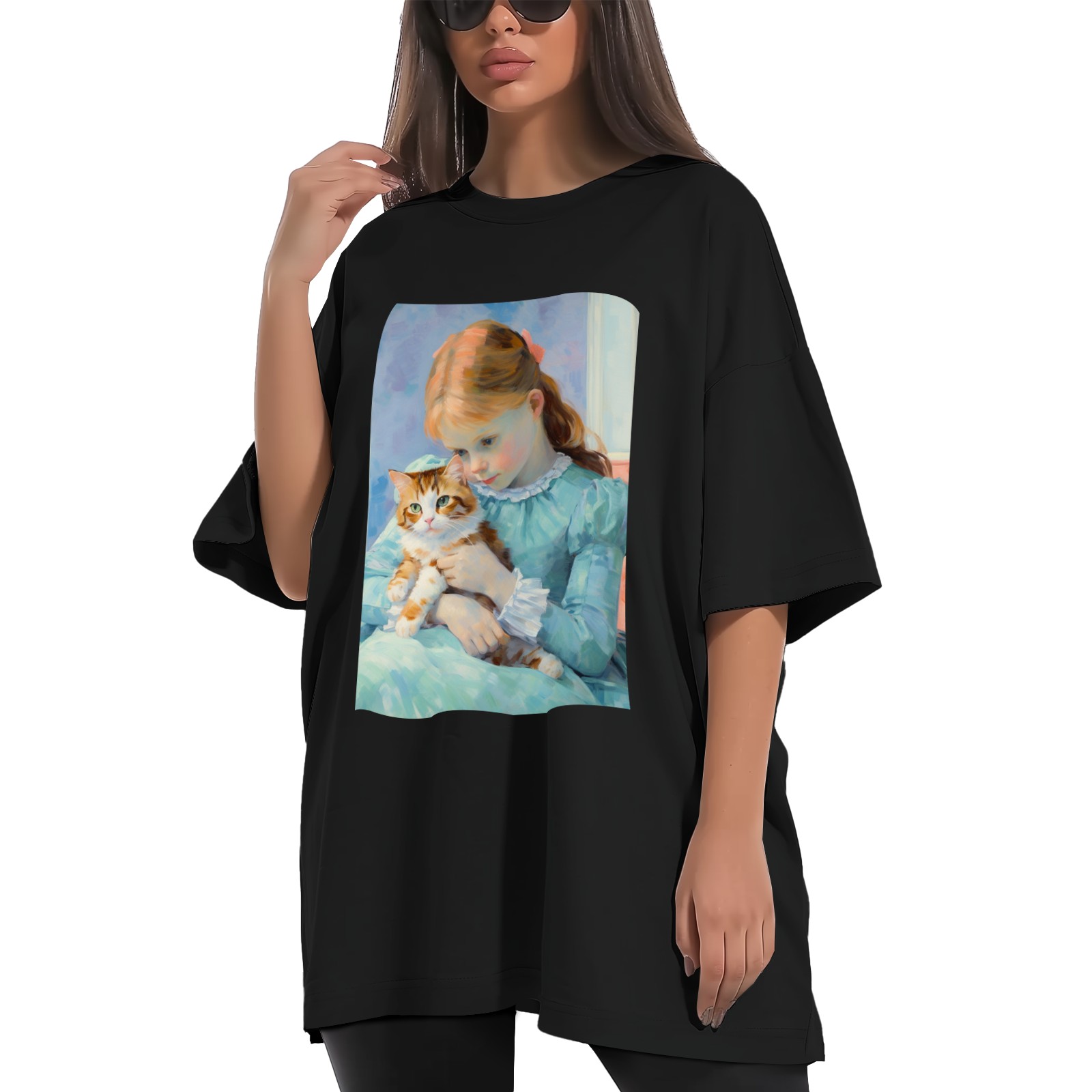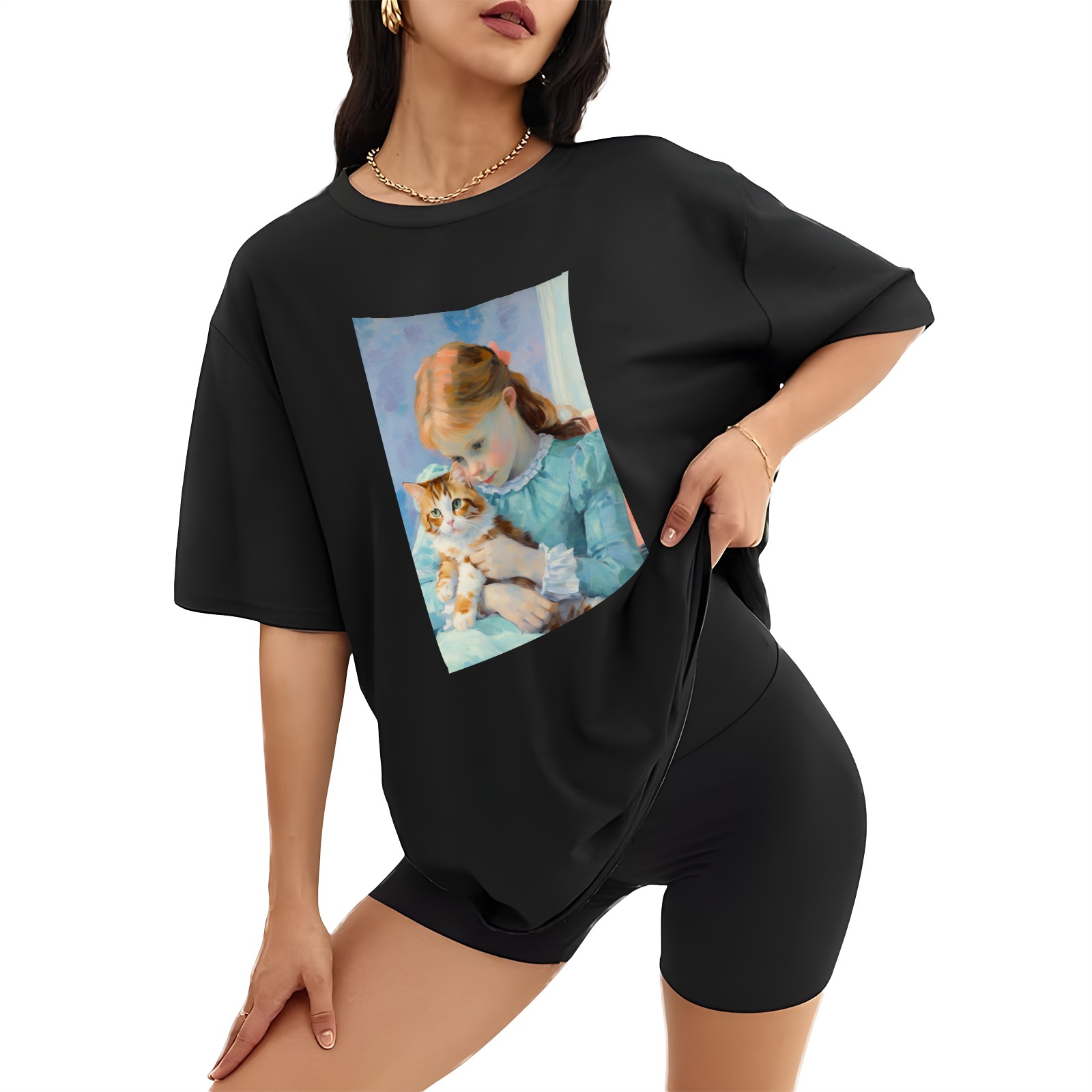 Plus Size Shirt for Women Black Tops for Women Short Sleeves Shirt for Women Cat (96) T Shirt Crewneck Shirt for Women XS