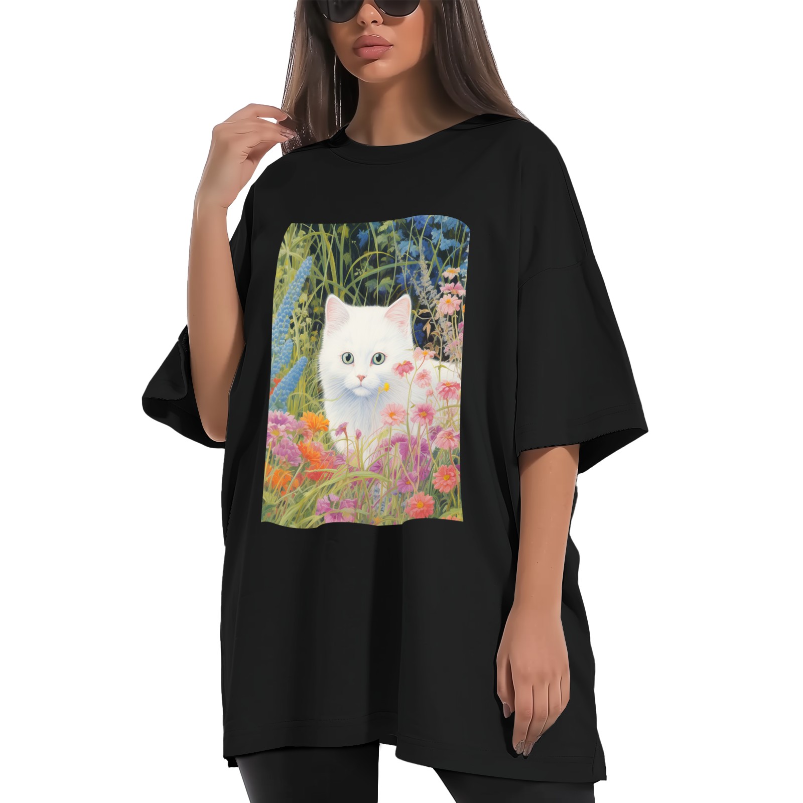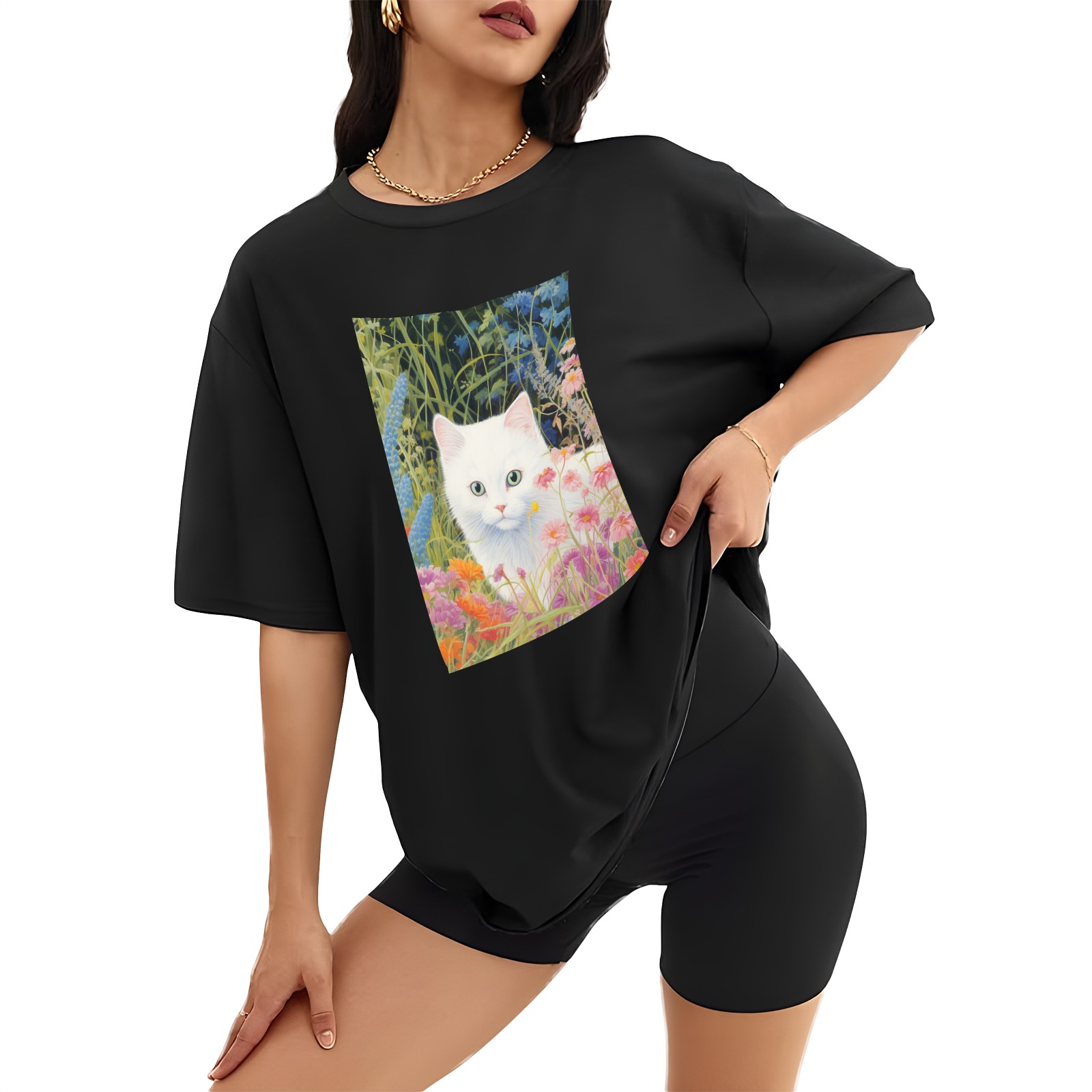 Plus Size Shirt for Women Black Tops for Women Short Sleeves Shirt for Women Cat (92) T Shirt Crewneck Shirt for Women XS