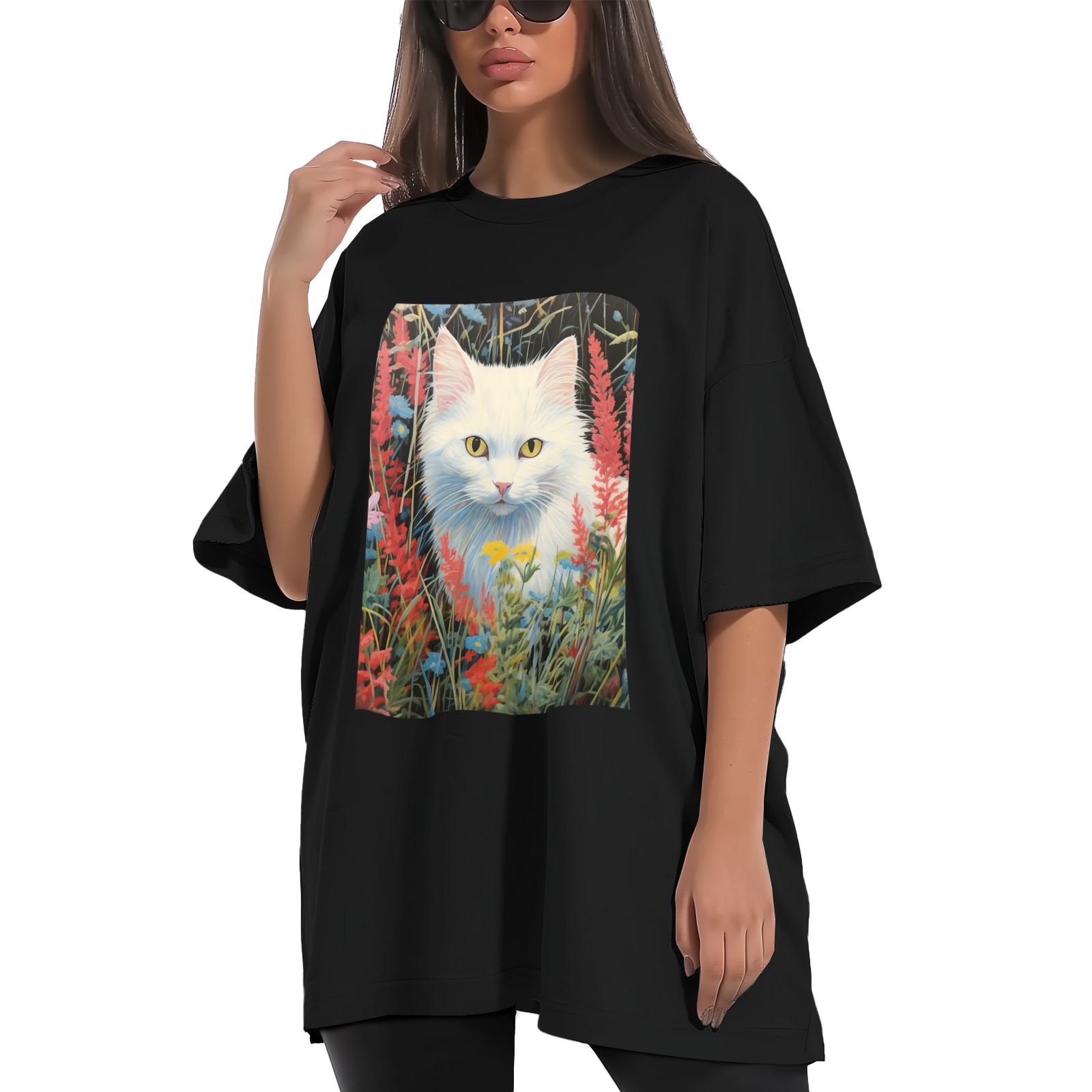 Plus Size Shirt for Women Black Tops for Women Short Sleeves Shirt for Women Cat (88) T Shirt Crewneck Shirt for Women XS