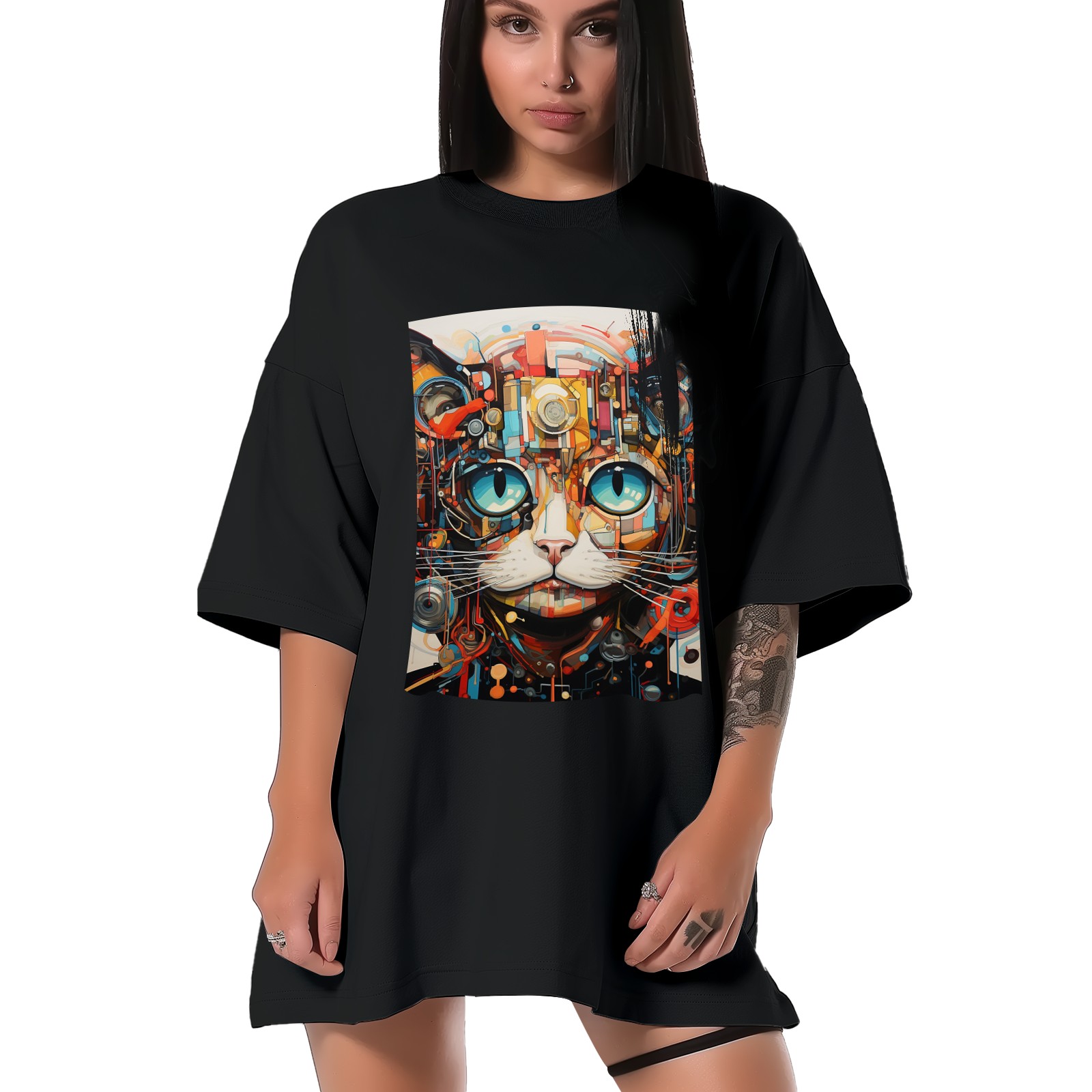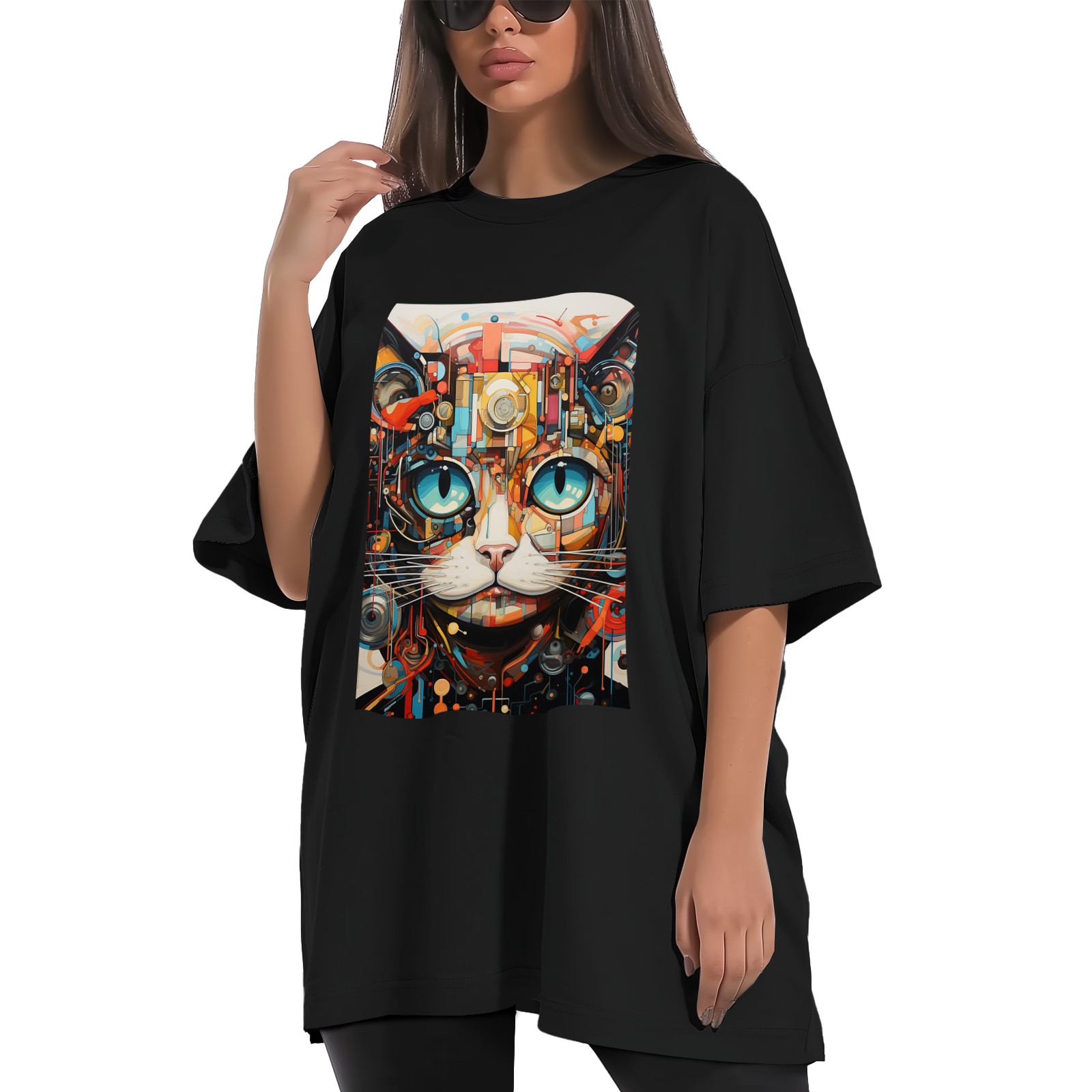 Plus Size Shirt for Women Black Tops for Women Short Sleeves Shirt for Women Cat (84) T Shirt Crewneck Shirt for Women XS