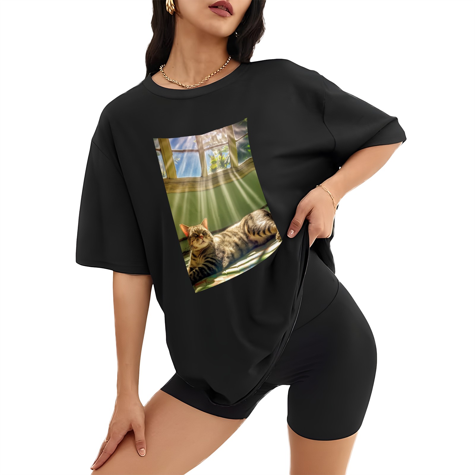 Plus Size Shirt for Women Black Tops for Women Short Sleeves Shirt for Women Cat (70) T Shirt Crewneck Shirt for Women XS