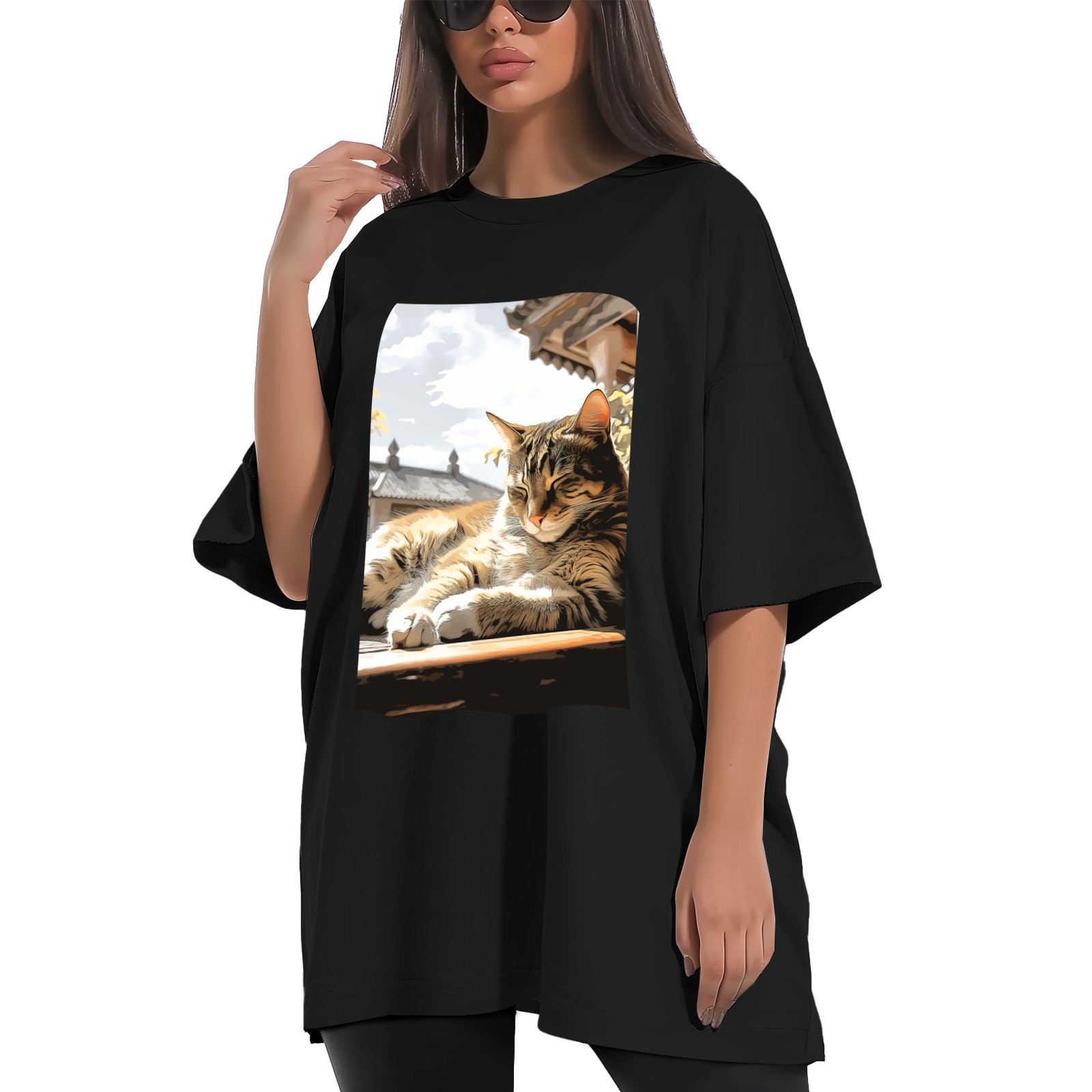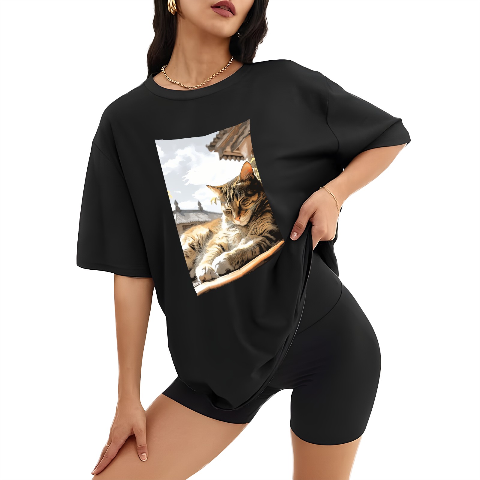 Plus Size Shirt for Women Black Tops for Women Short Sleeves Shirt for Women Cat (78) T Shirt Crewneck Shirt for Women XS