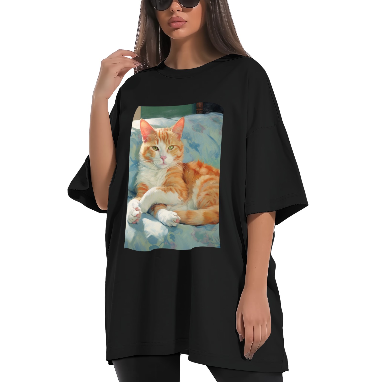Plus Size Shirt for Women Black Tops for Women Short Sleeves Shirt for Women Cat (64) T Shirt Crewneck Shirt for Women XS
