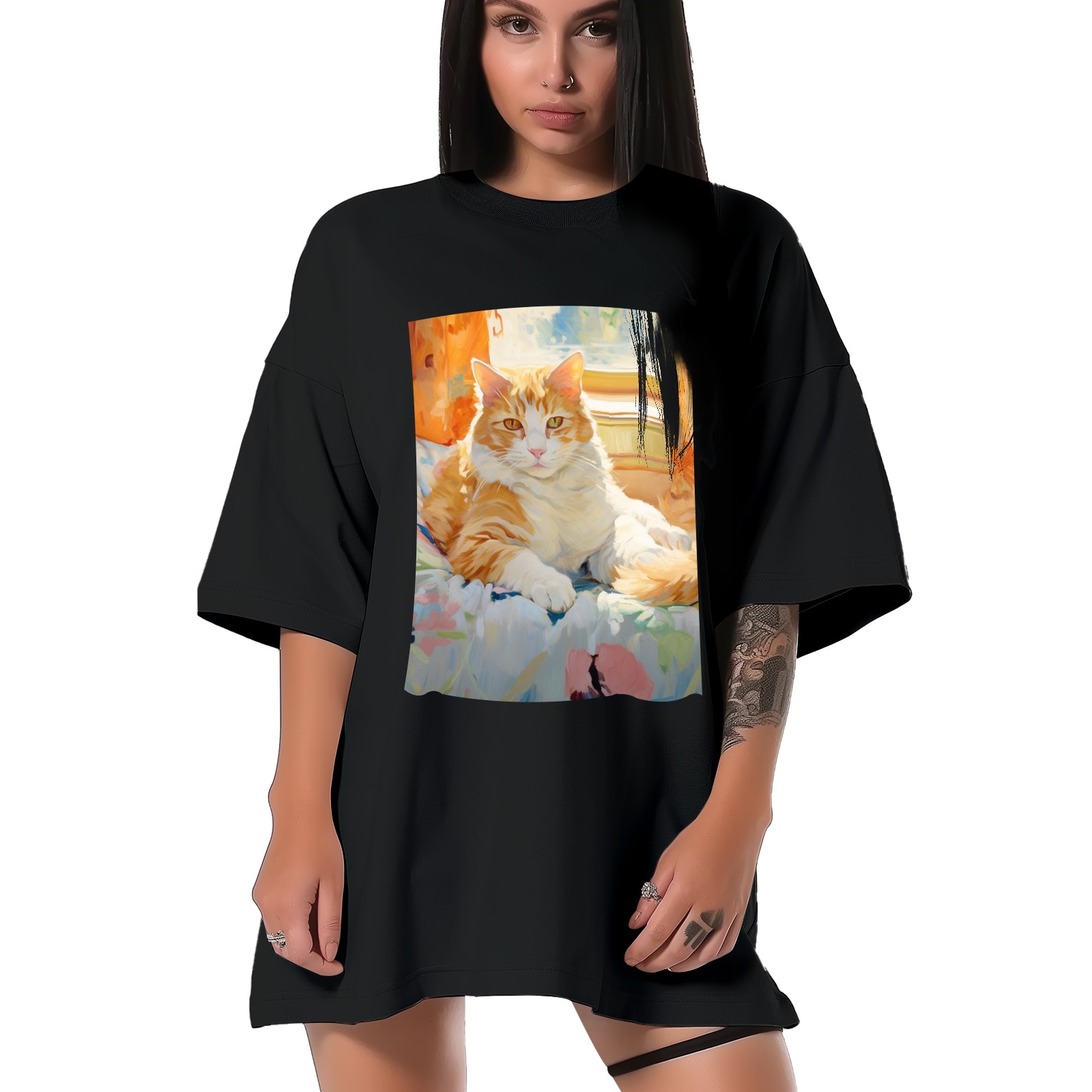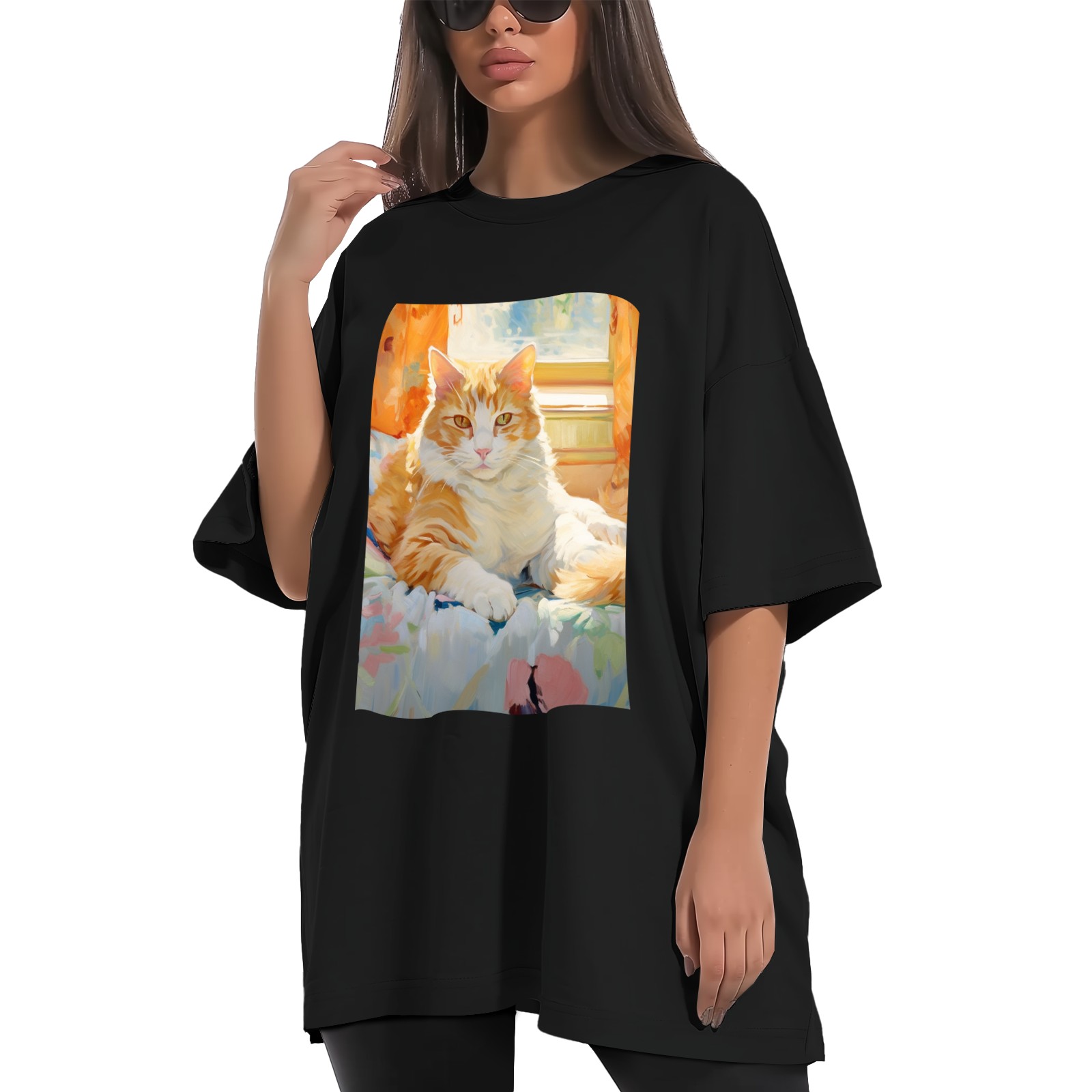 Plus Size Shirt for Women Black Tops for Women Short Sleeves Shirt for Women Cat (63) T Shirt Crewneck Shirt for Women XS