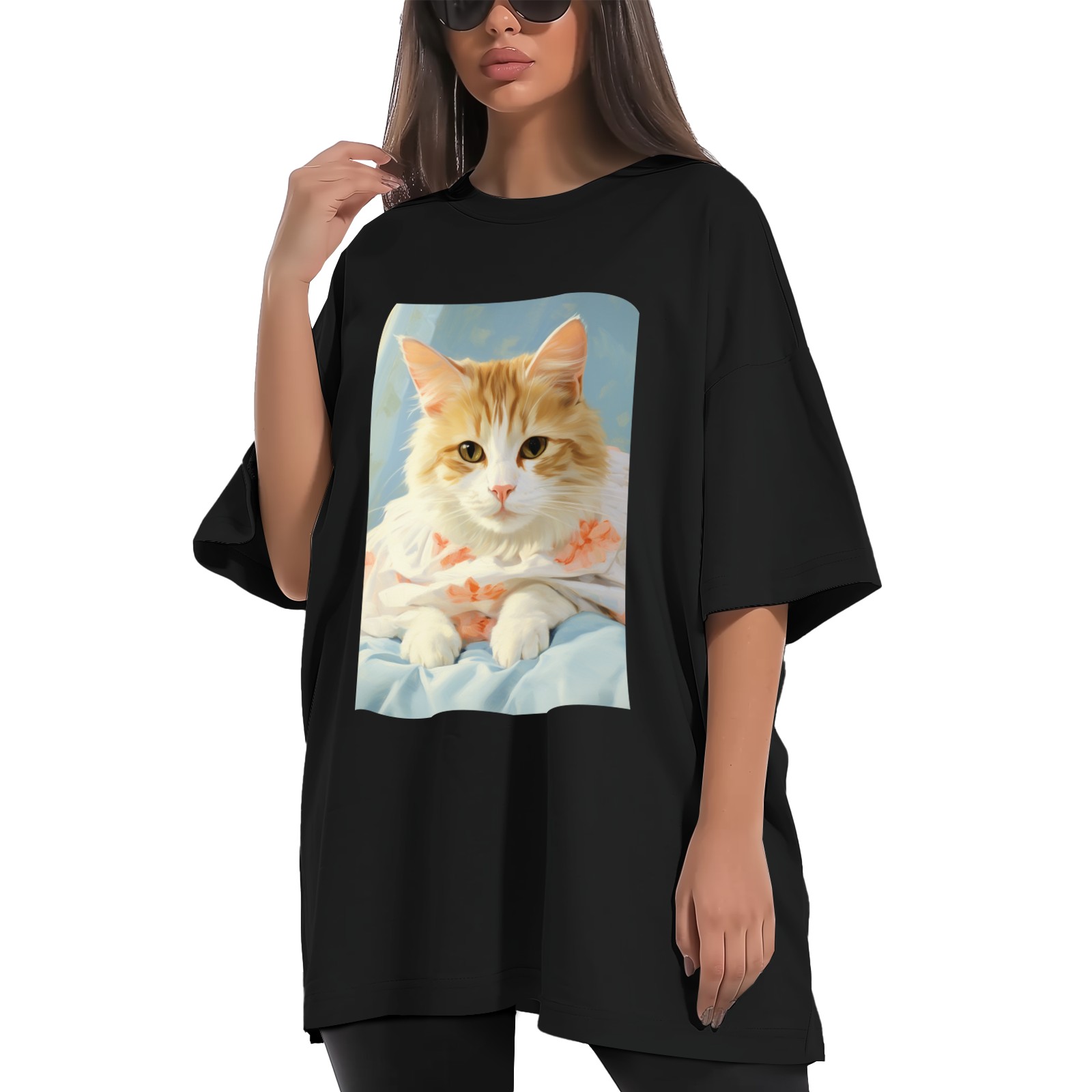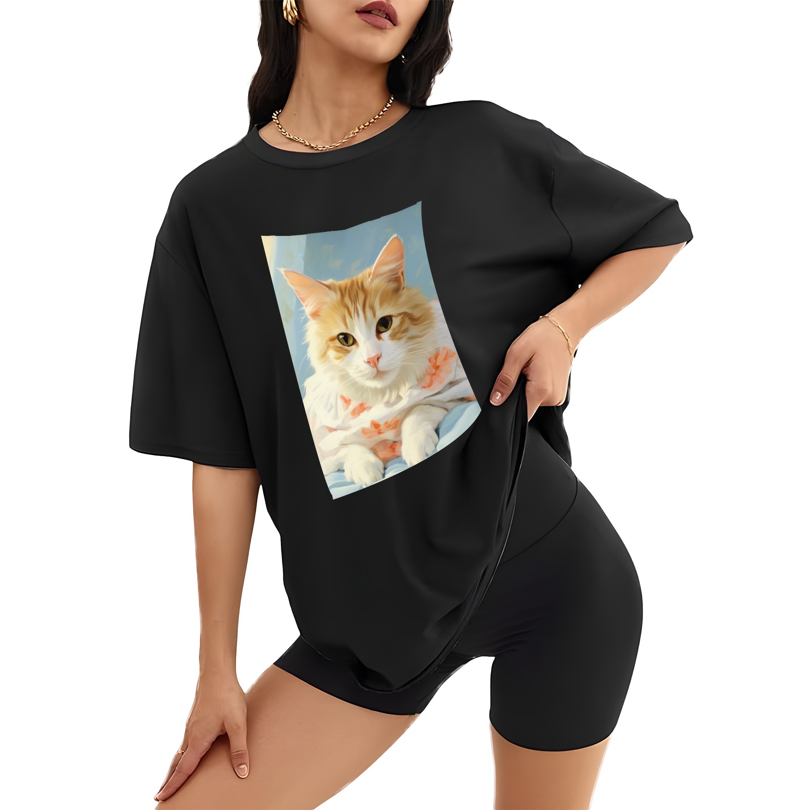 Plus Size Shirt for Women Black Tops for Women Short Sleeves Shirt for Women Cat (61) T Shirt Crewneck Shirt for Women XS