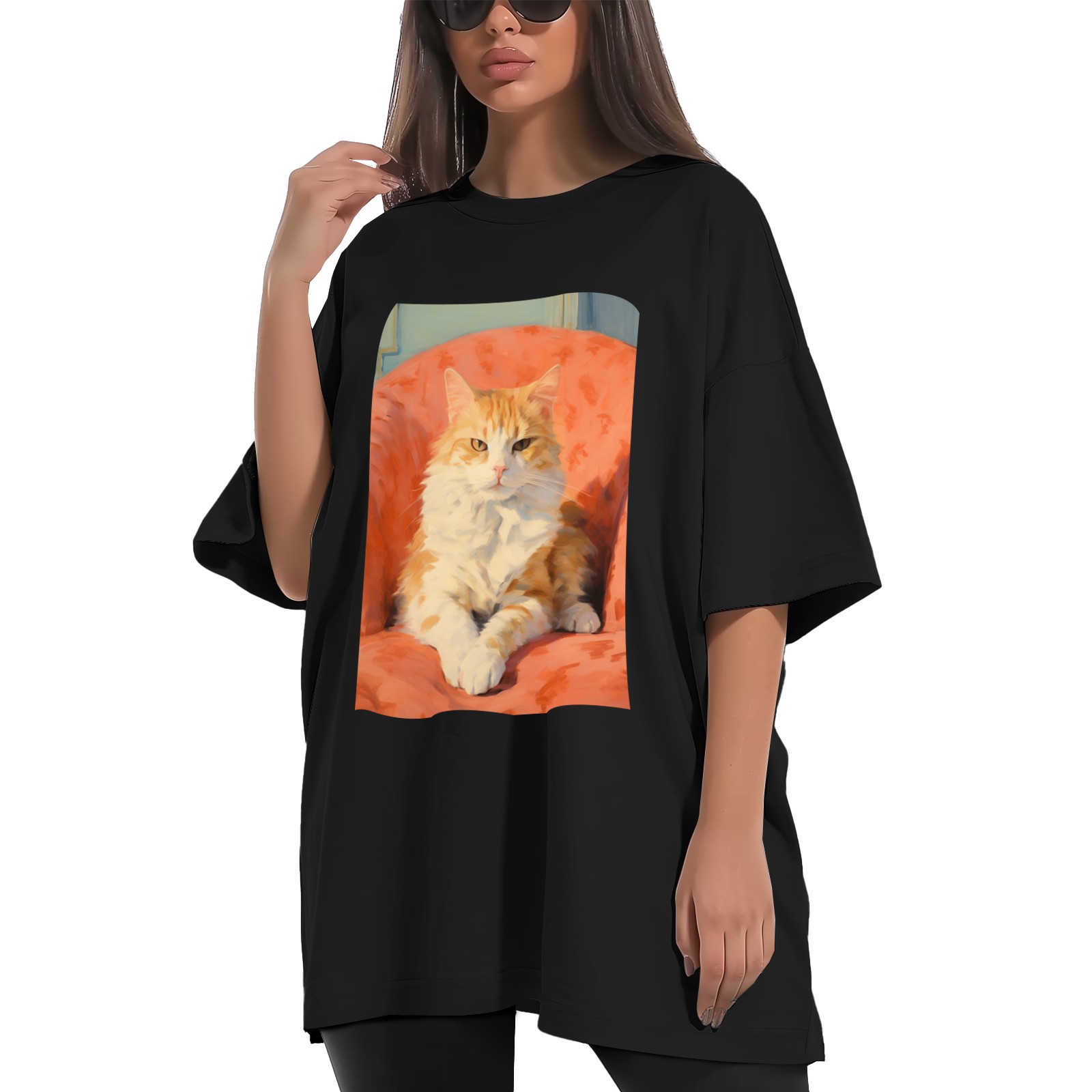 Plus Size Shirt for Women Black Tops for Women Short Sleeves Shirt for Women Cat (62) T Shirt Crewneck Shirt for Women XS